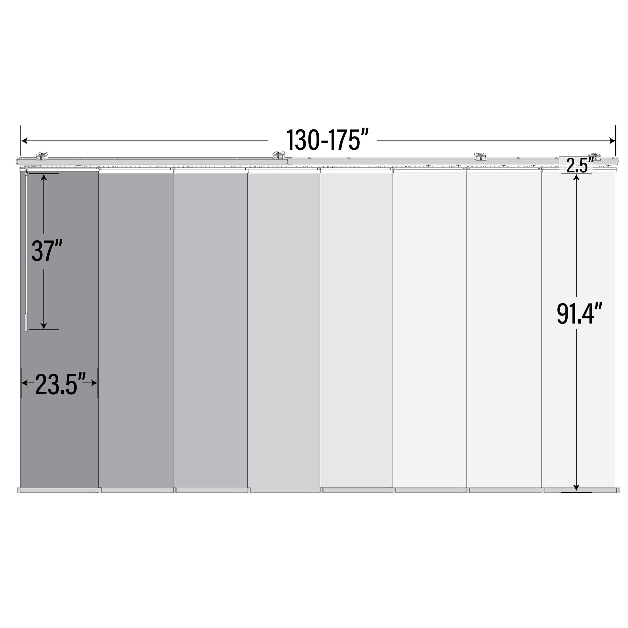 Patented Sliders Design: Durable and smooth operation, the patented sliders are made with aluminum and fitted with bearings that allow the sliders to glide across the rail. The sliders are also stacked closer together than conventional panel tracks, which reduces light bleed coming from the gaps between panels.