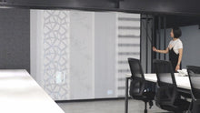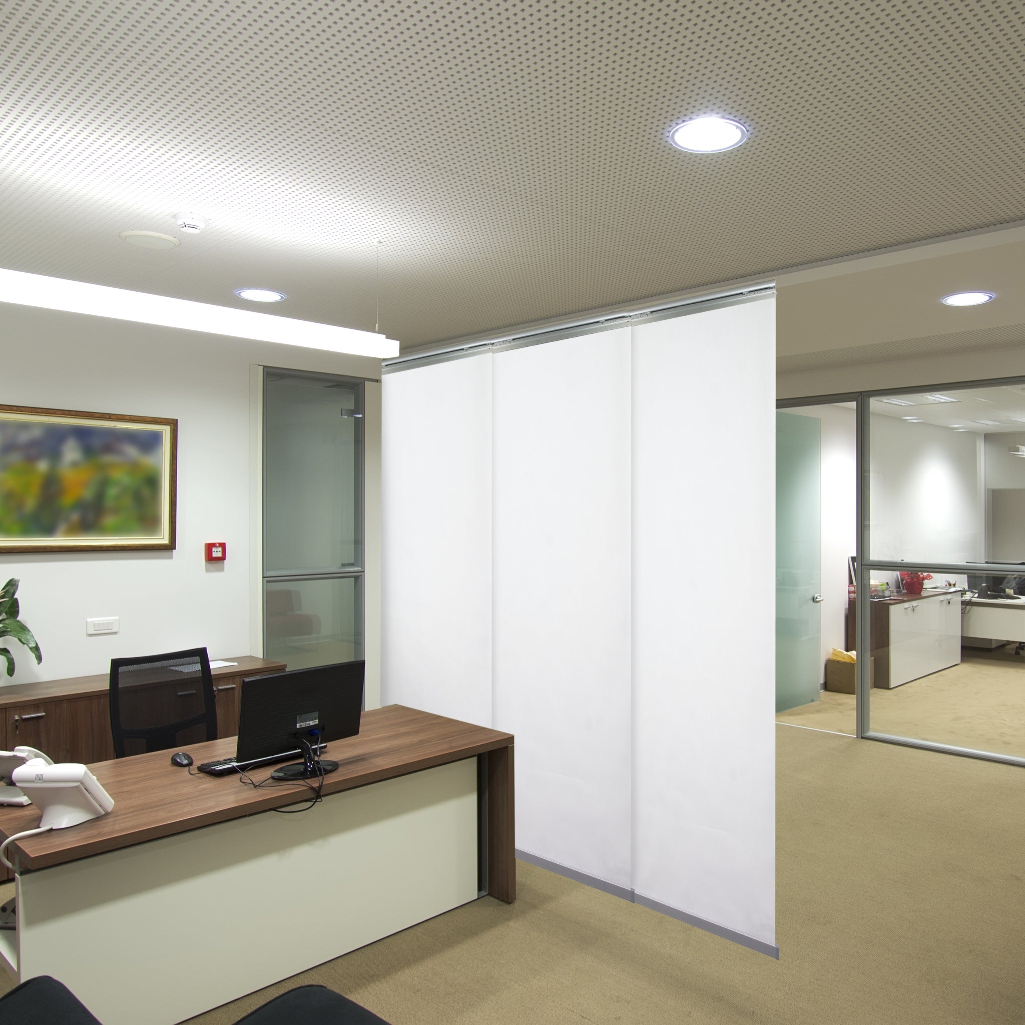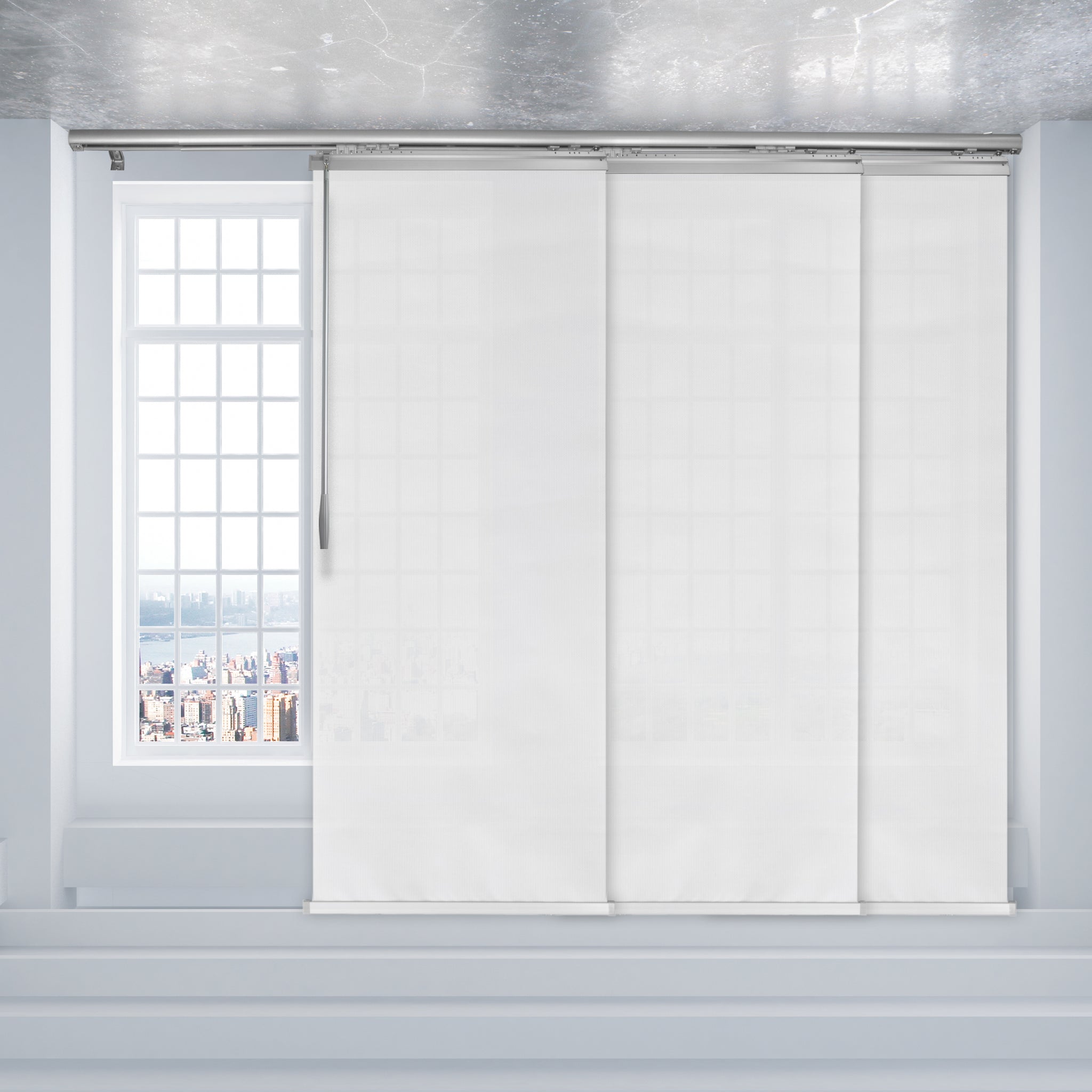 Patented Sliders Design: Durable and smooth operation, the patented sliders are made with aluminum and fitted with bearings that allow the sliders to glide across the rail. The sliders are also stacked closer together than conventional panel tracks, which reduces light bleed coming from the gaps between panels.