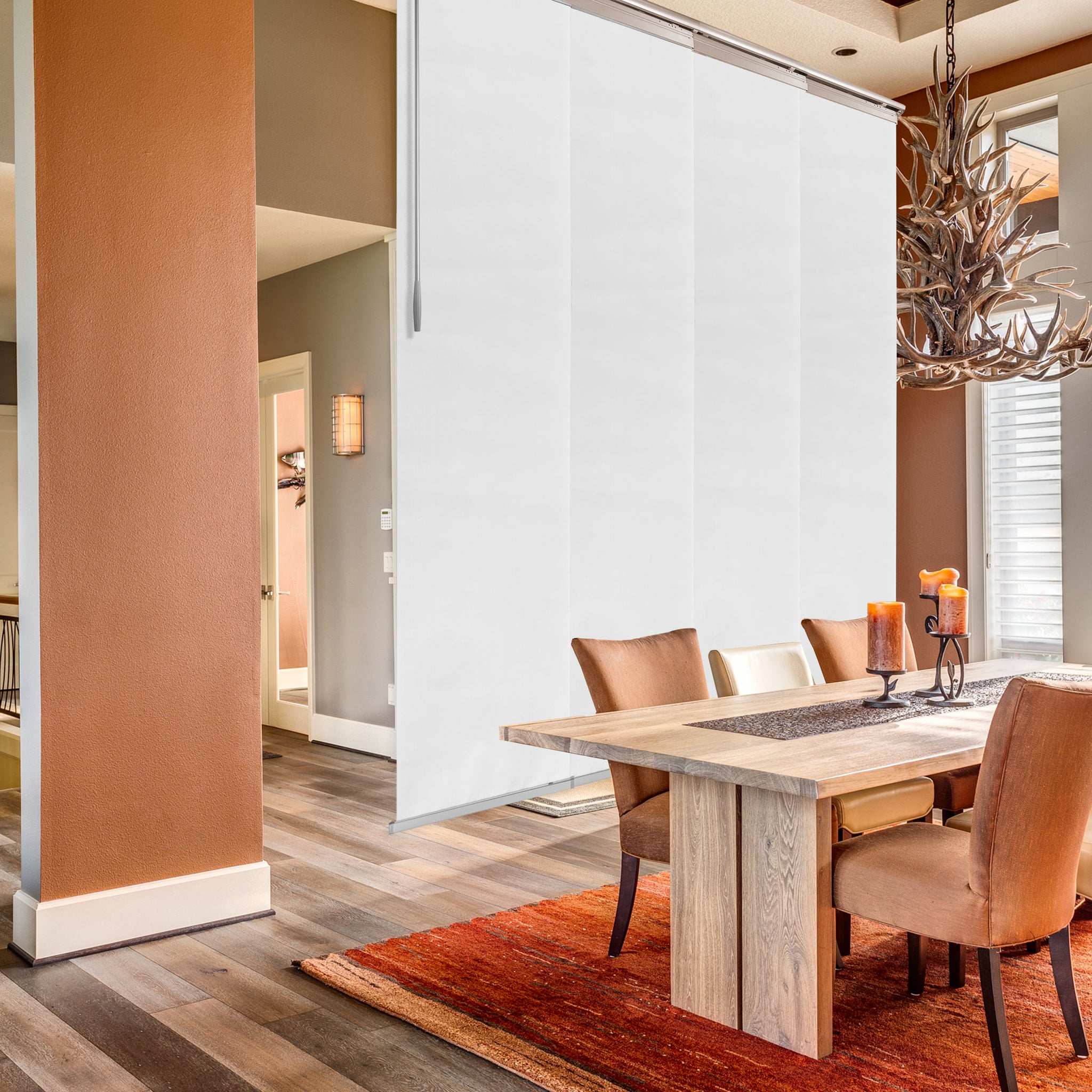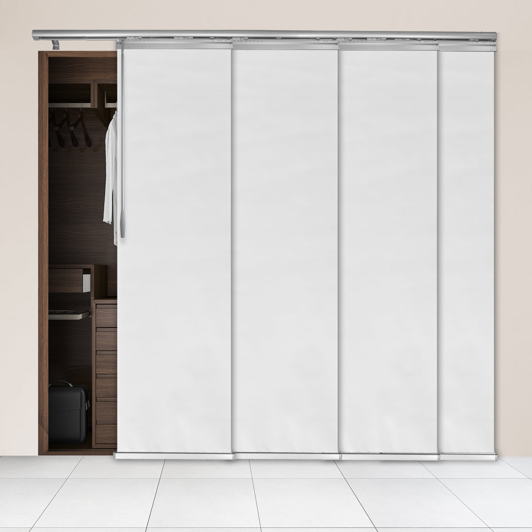 Patented Sliders Design: Durable and smooth operation, the patented sliders are made with aluminum and fitted with bearings that allow the sliders to glide across the rail. The sliders are also stacked closer together than conventional panel tracks, which reduces light bleed coming from the gaps between panels.