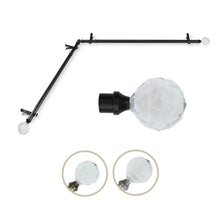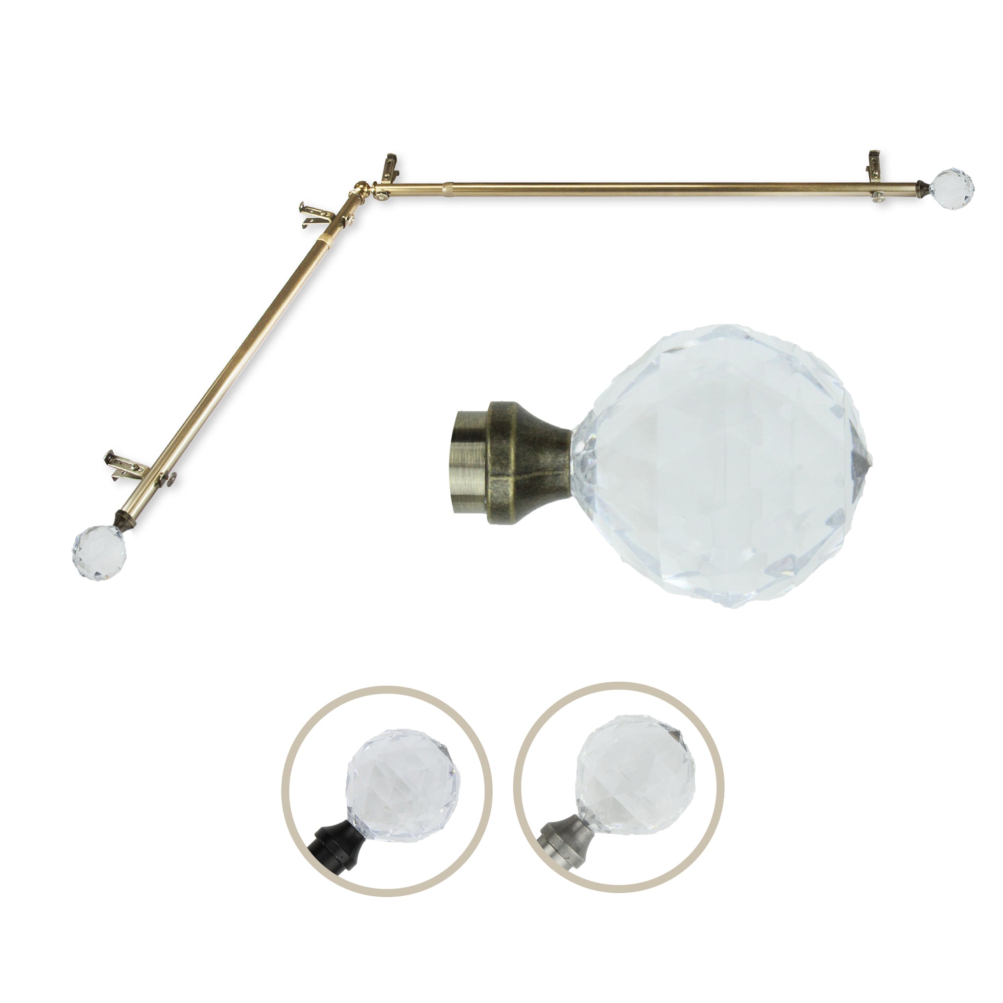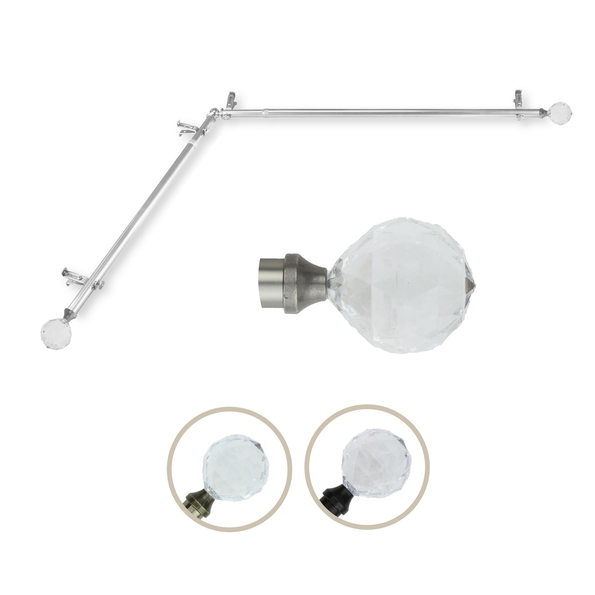 Includes two 13/16" diameter adjustable poles, one pair of decorative finials, one corner connector, brackets and mounting hardware