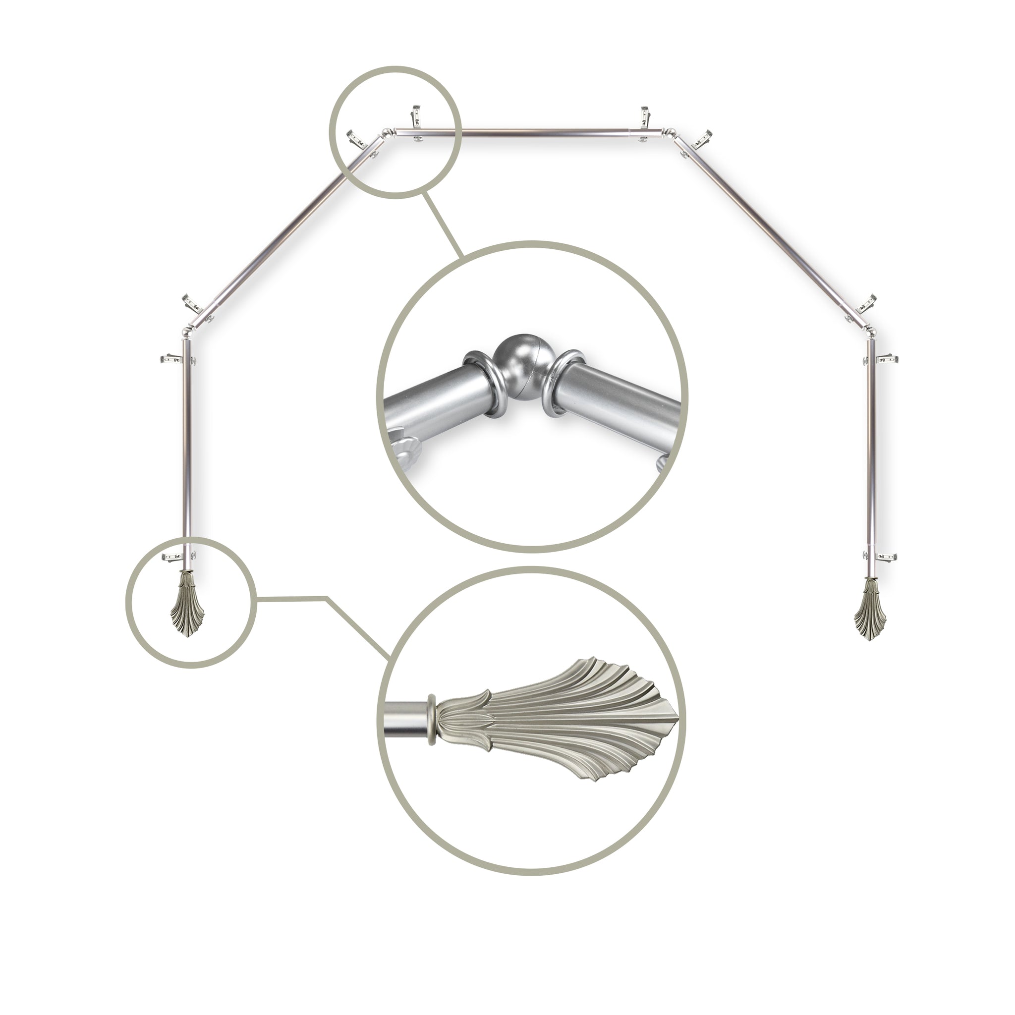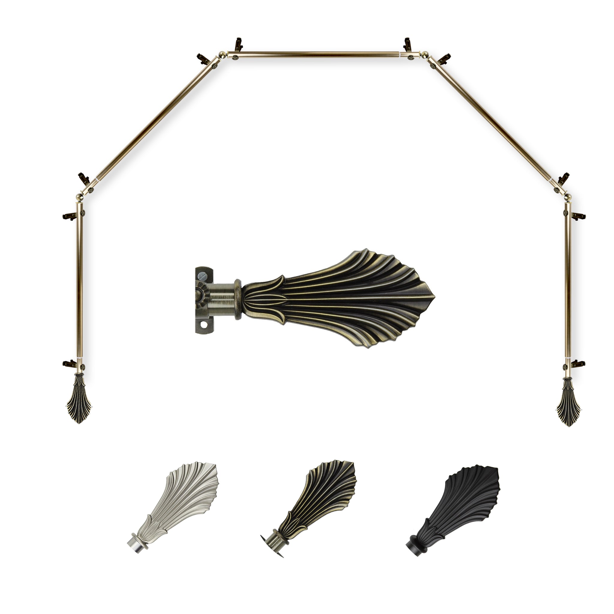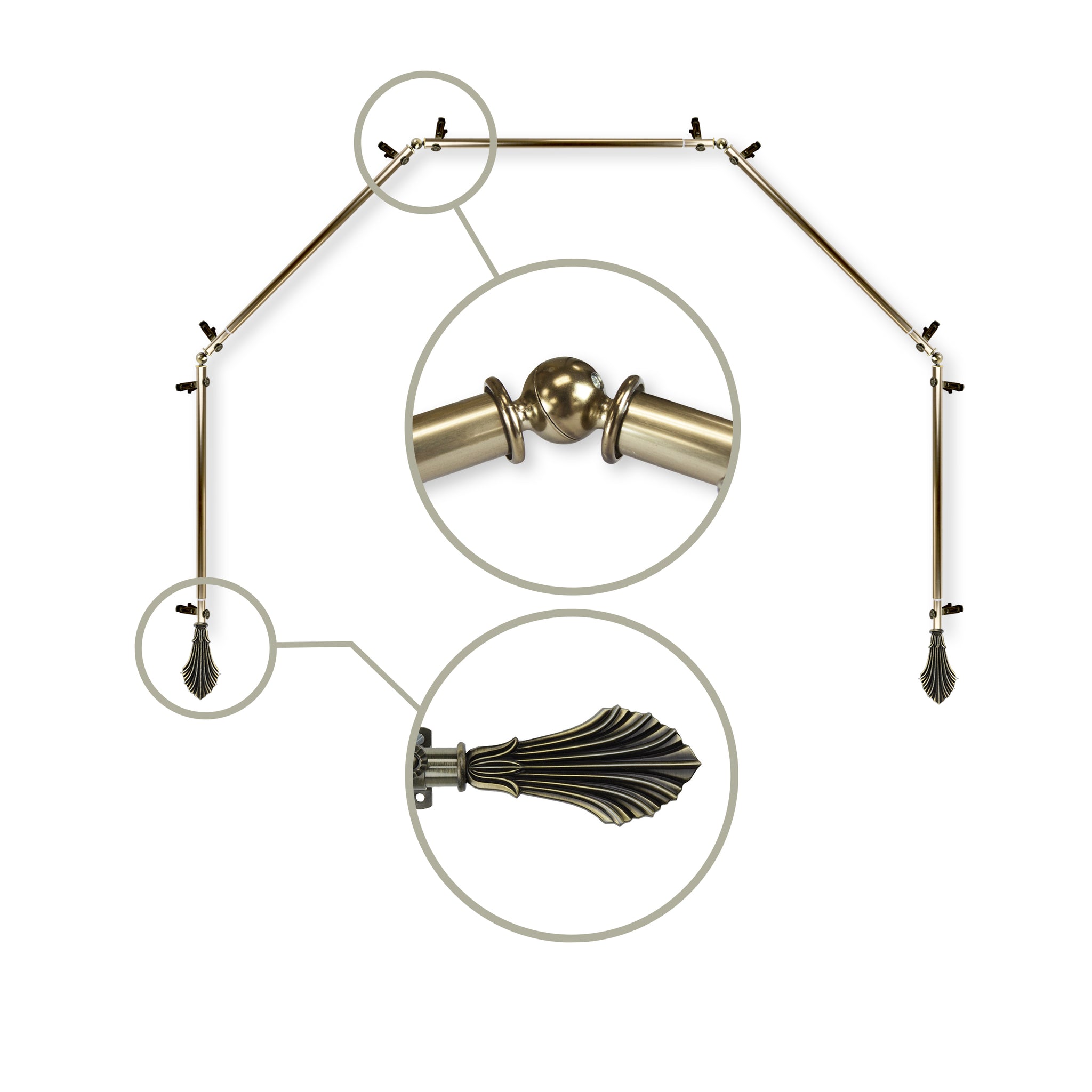 Includes five 13/16" diameter adjustable poles, one pair of decorative finials, 10 single brackets, 4 corner connectors, and mounting hardware