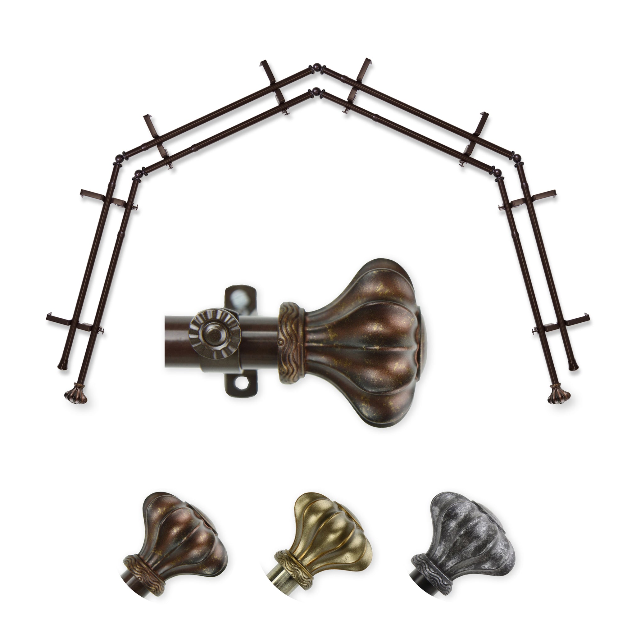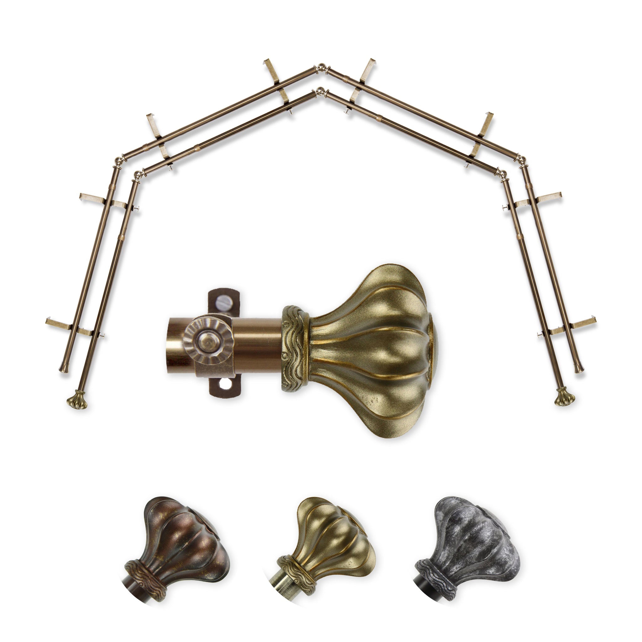 Includes eight 13/16" diameter adjustable poles, one pair of decorative finials, 8 double brackets, 6 corner connectors, and mounting hardware