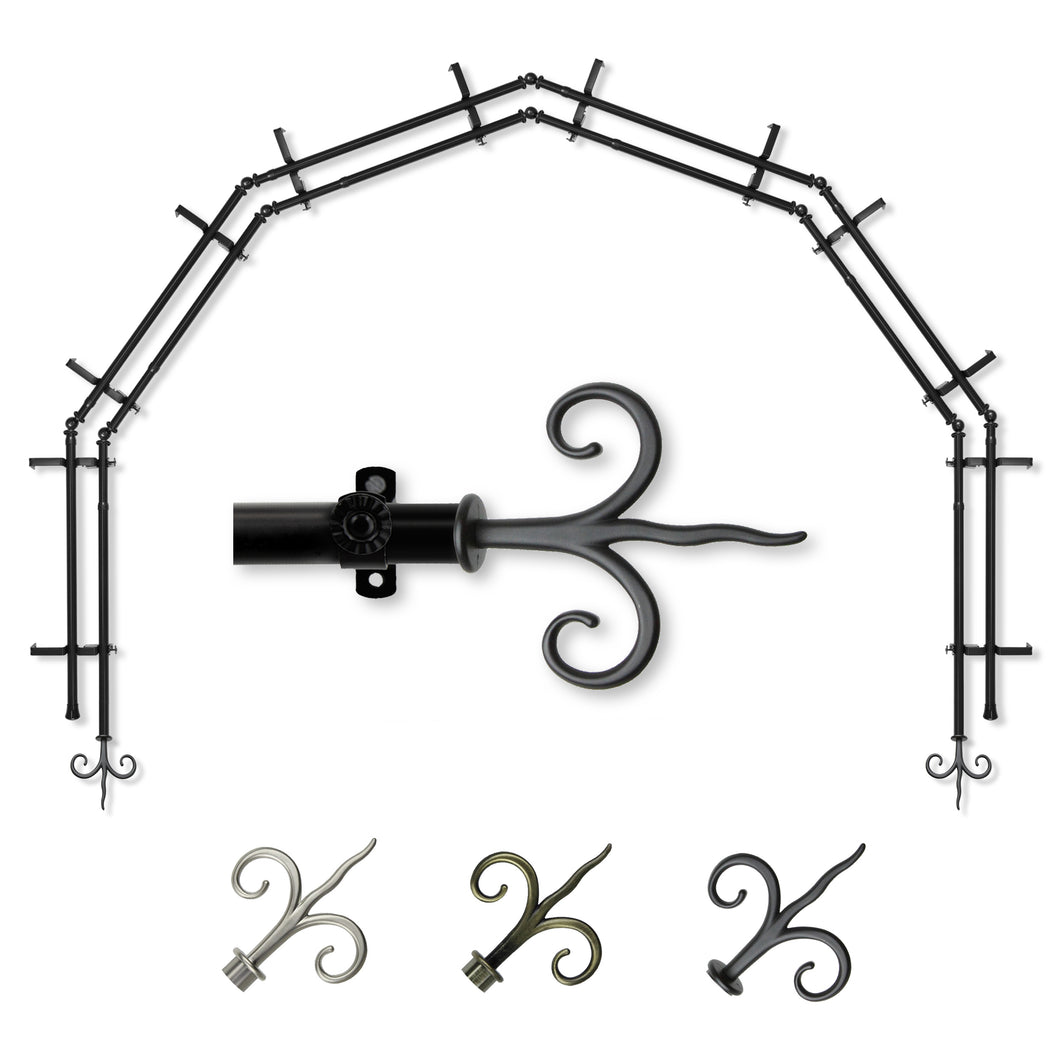 Includes twelve 13/16" diameter adjustable poles, one pair of decorative finials, 12 double brackets, 10 corner connectors, and mounting hardware