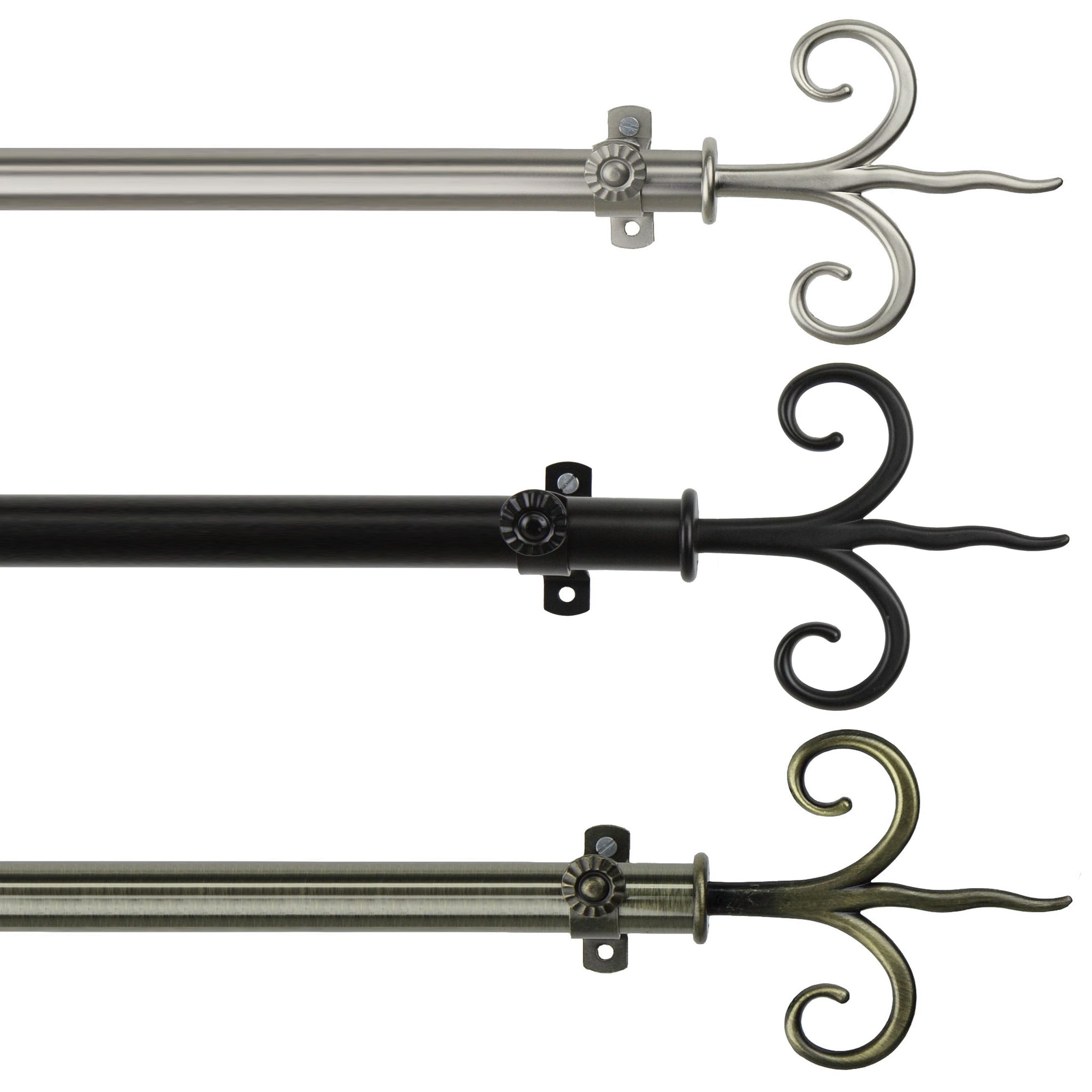 Includes one 13/16" adjustable high-quality steel telescoping pole, two finials, brackets, and mounting hardware