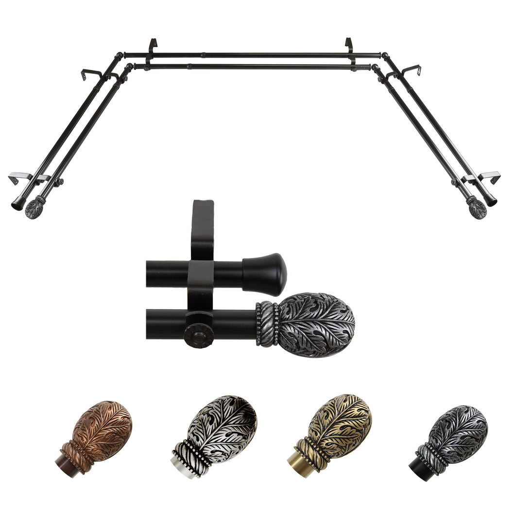 Includes four 13/16" diameter adjustable 20-36 inch poles, two adjustable 38-72 inch poles, one pair of finials, 6 brackets, 4 corner connectors, and mounting hardware
