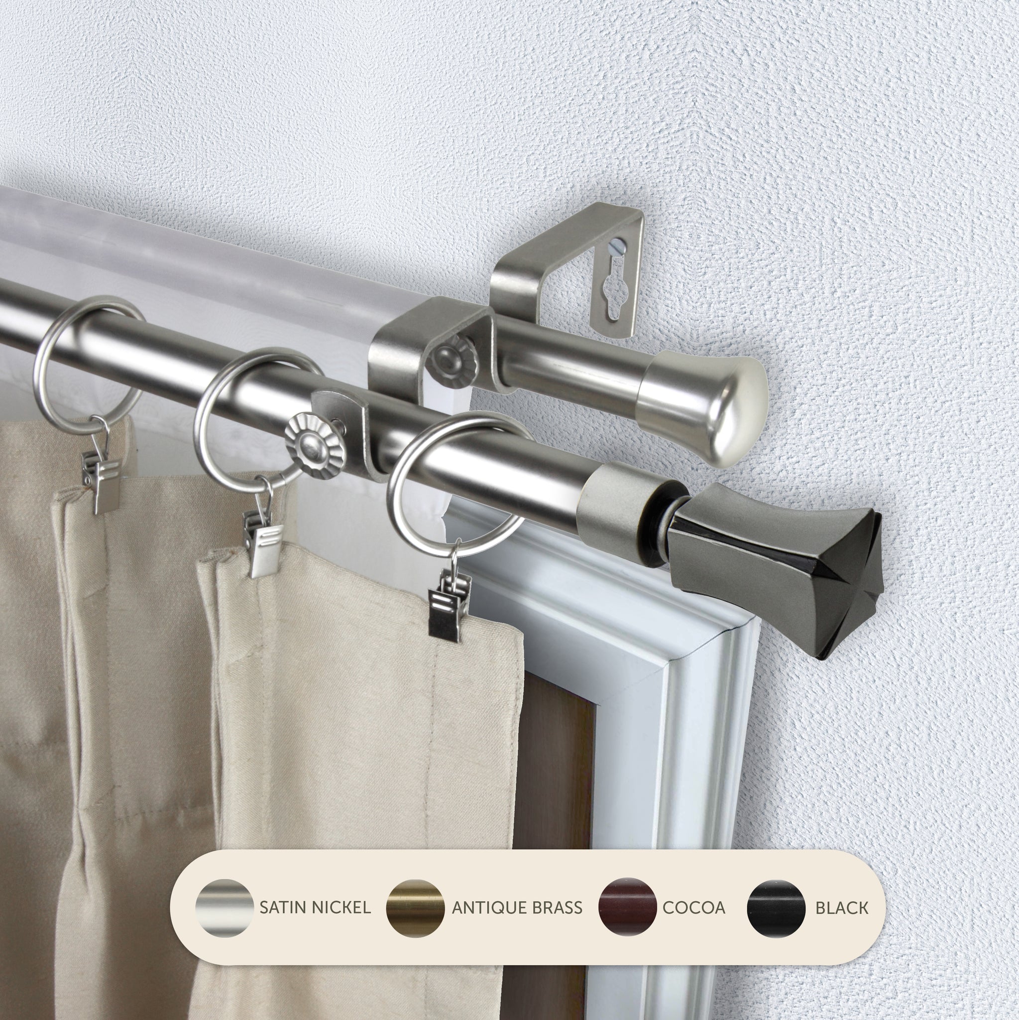 Includes two 13/16" adjustable high-quality steel telescoping poles, two finials, double brackets, and mounting hardware