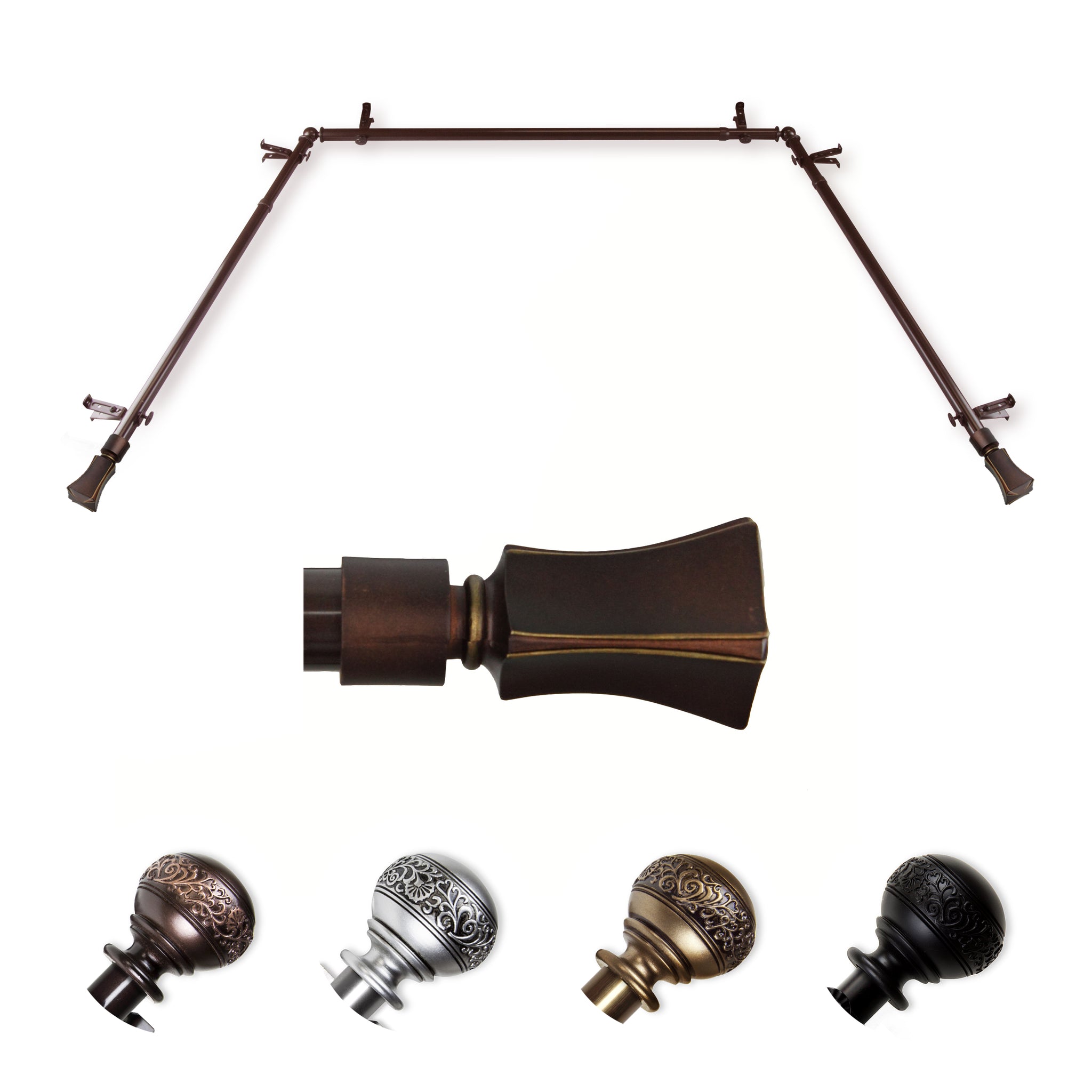 Includes two 13/16" diameter adjustable 20-36 inch poles, one adjustable 38-72 inch pole, one pair of finials, 6 brackets, 2 corner connectors, and mounting hardware