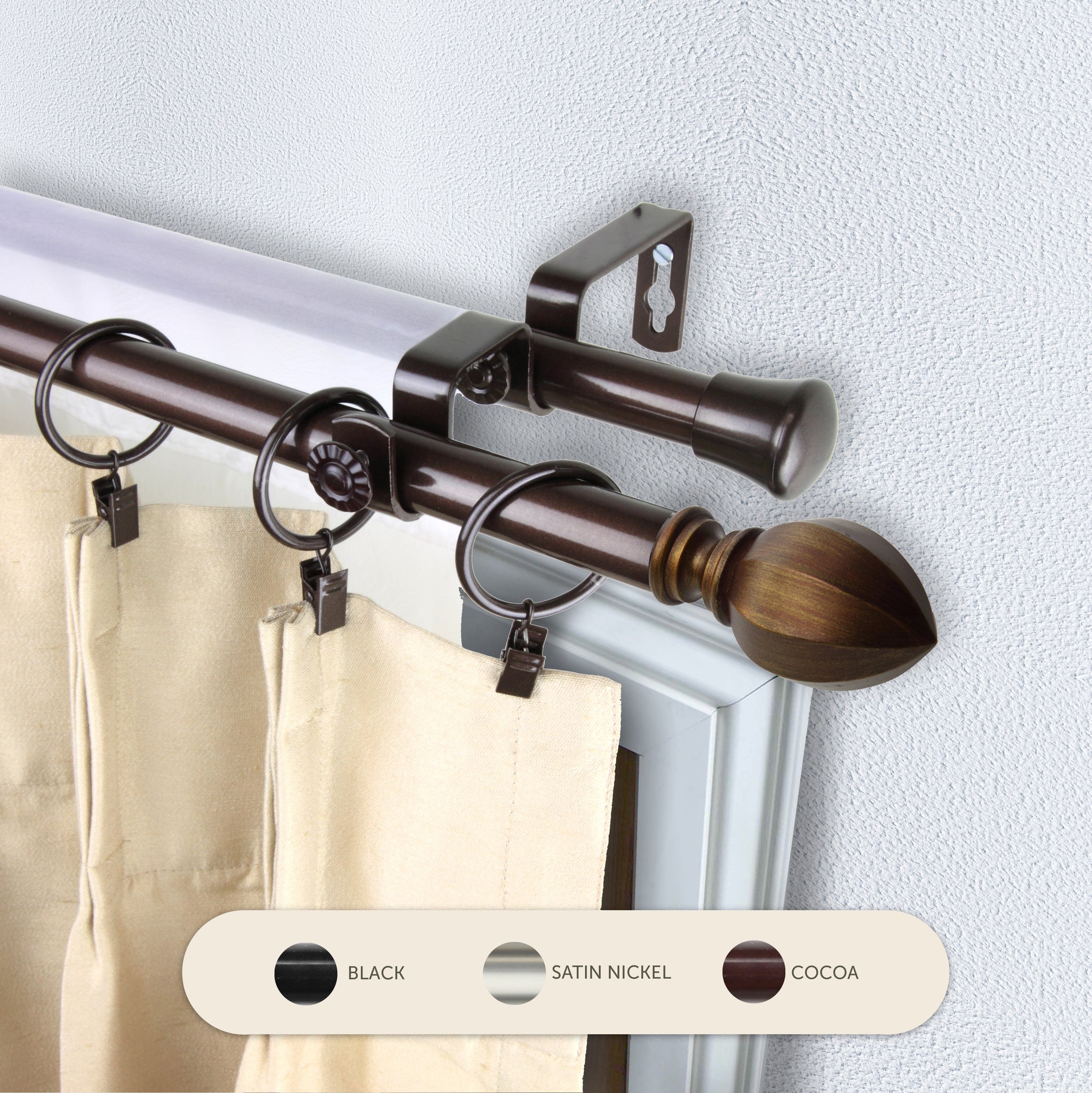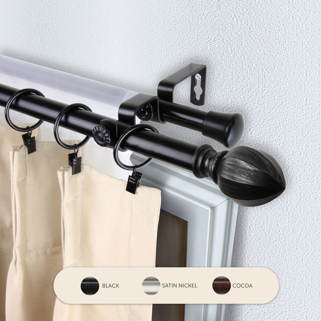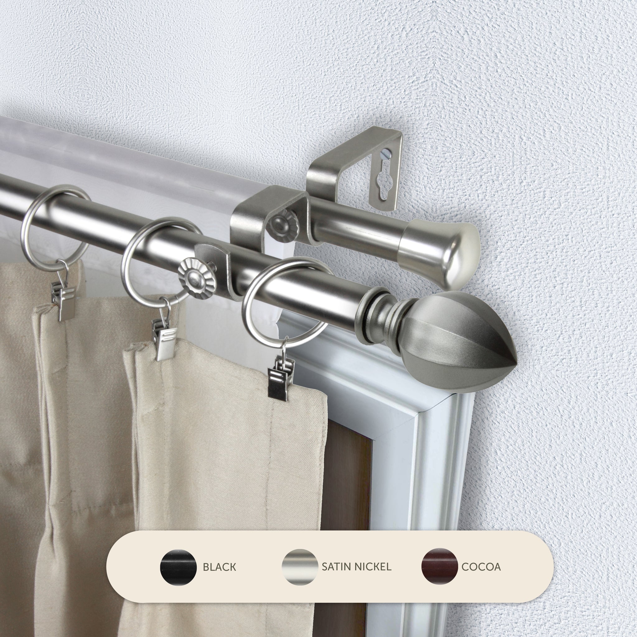 Includes two 13/16" adjustable high-quality steel telescoping poles, two finials, double brackets, and mounting hardware