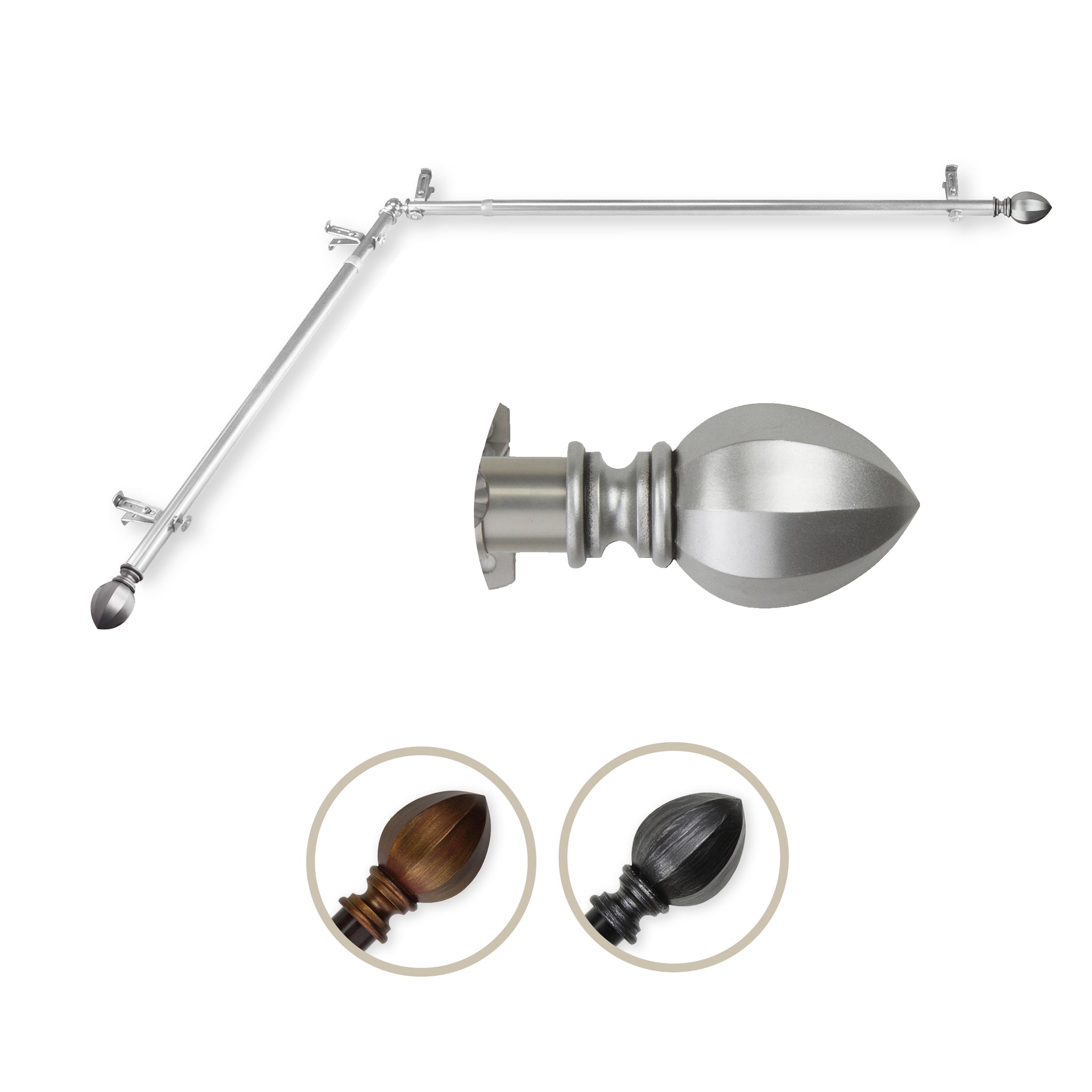 Includes two 13/16" diameter adjustable poles, one pair of decorative finials, one corner connector, brackets and mounting hardware