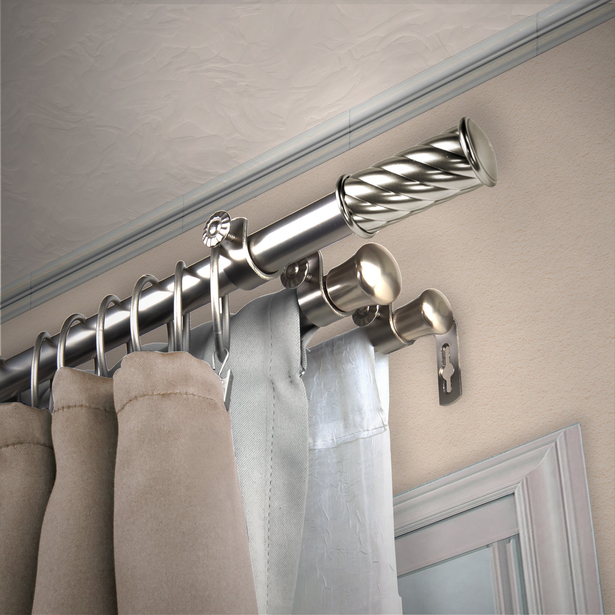 Desyne Store is pleased to introduce our new designer-looking Triple Curtain Rod. This triple curtain rod is designed to support three different layers of drapery of your style.