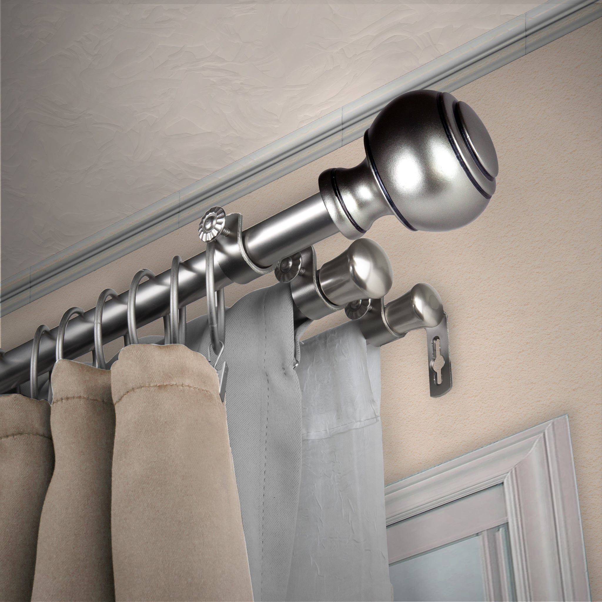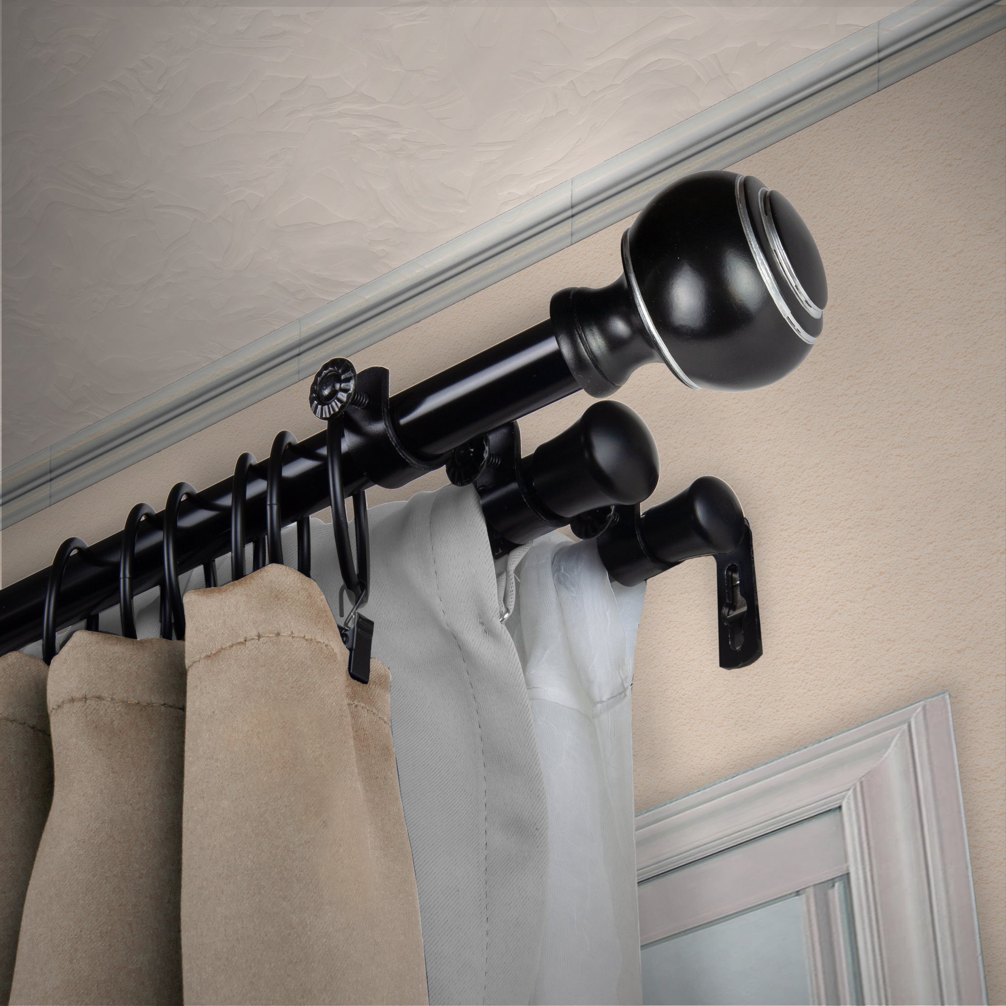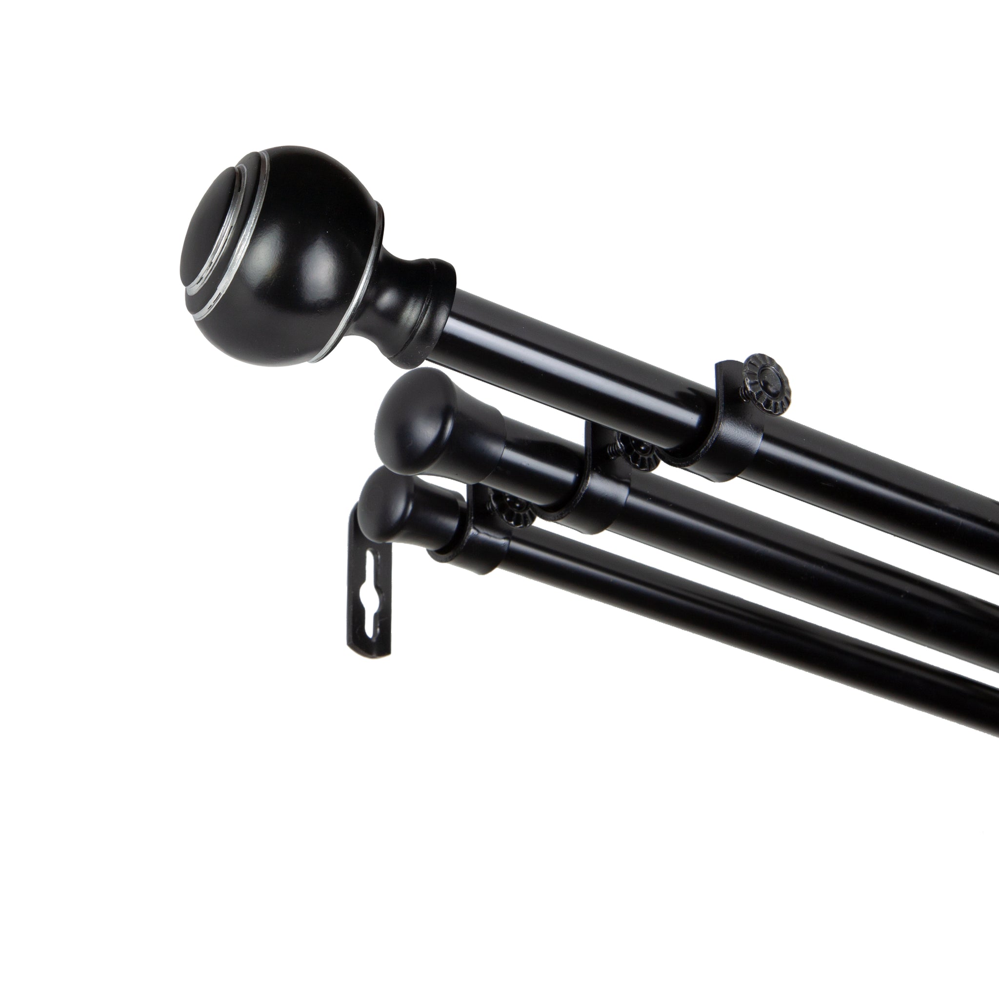 Includes two 13/16" adjustable curtain rods, one 5/8" adjustable back rod, two finials, brackets, and mounting hardware