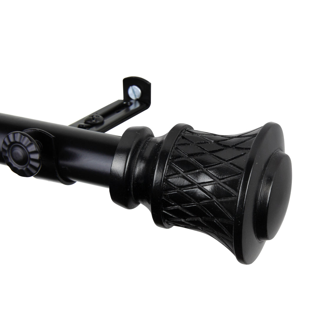 Includes one 13/16" adjustable high-quality steel telescoping pole, two finials, brackets, and mounting hardware