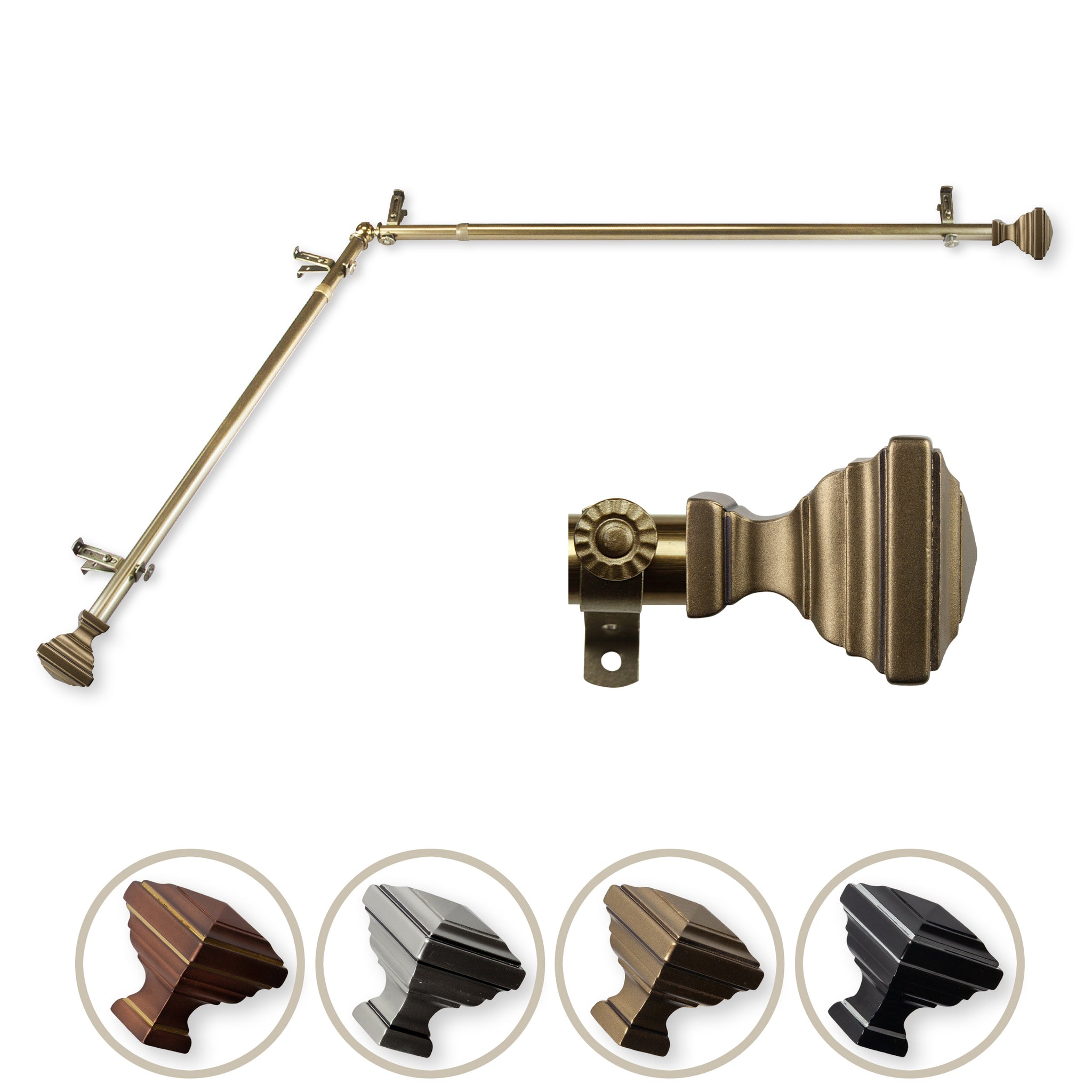 Includes two 13/16" diameter adjustable poles, one pair of decorative finials, one corner connector, brackets and mounting hardware
