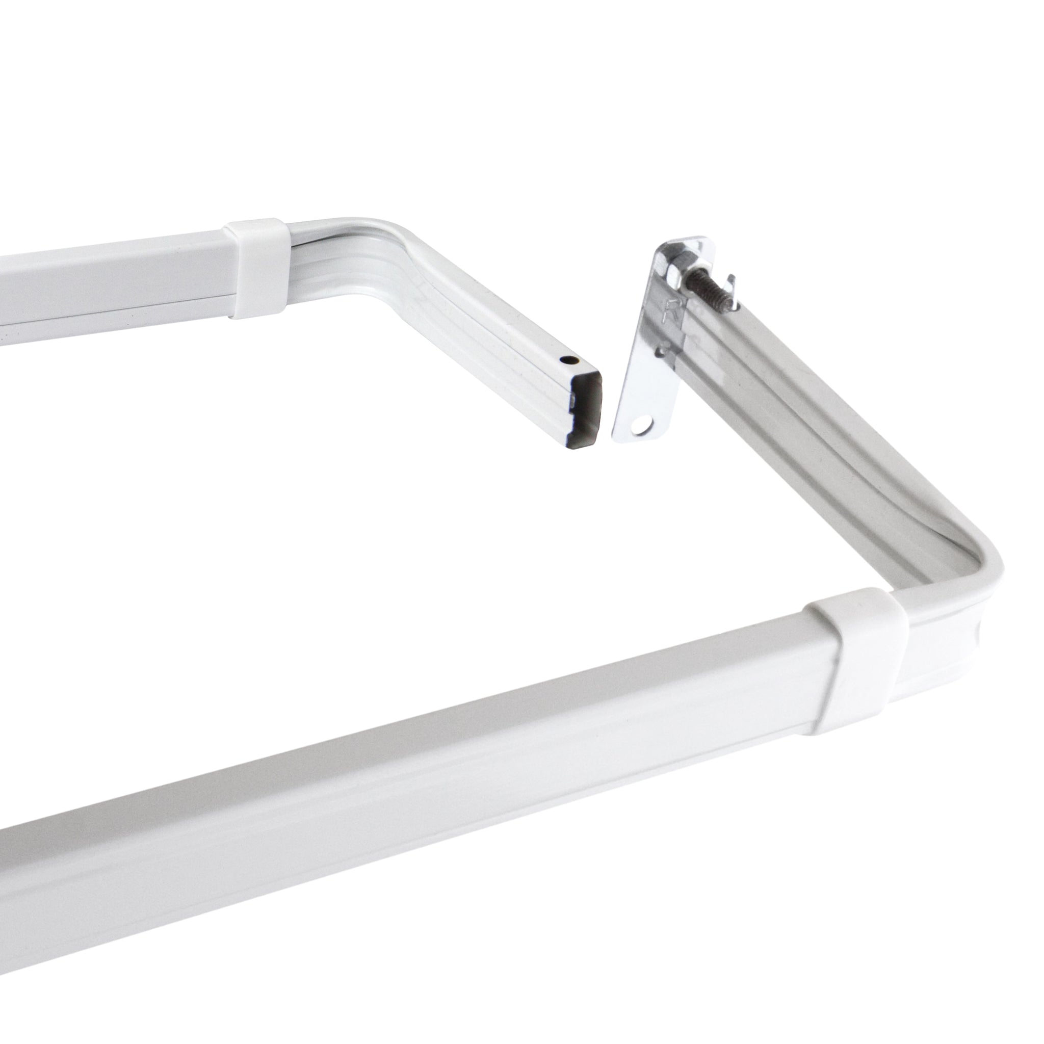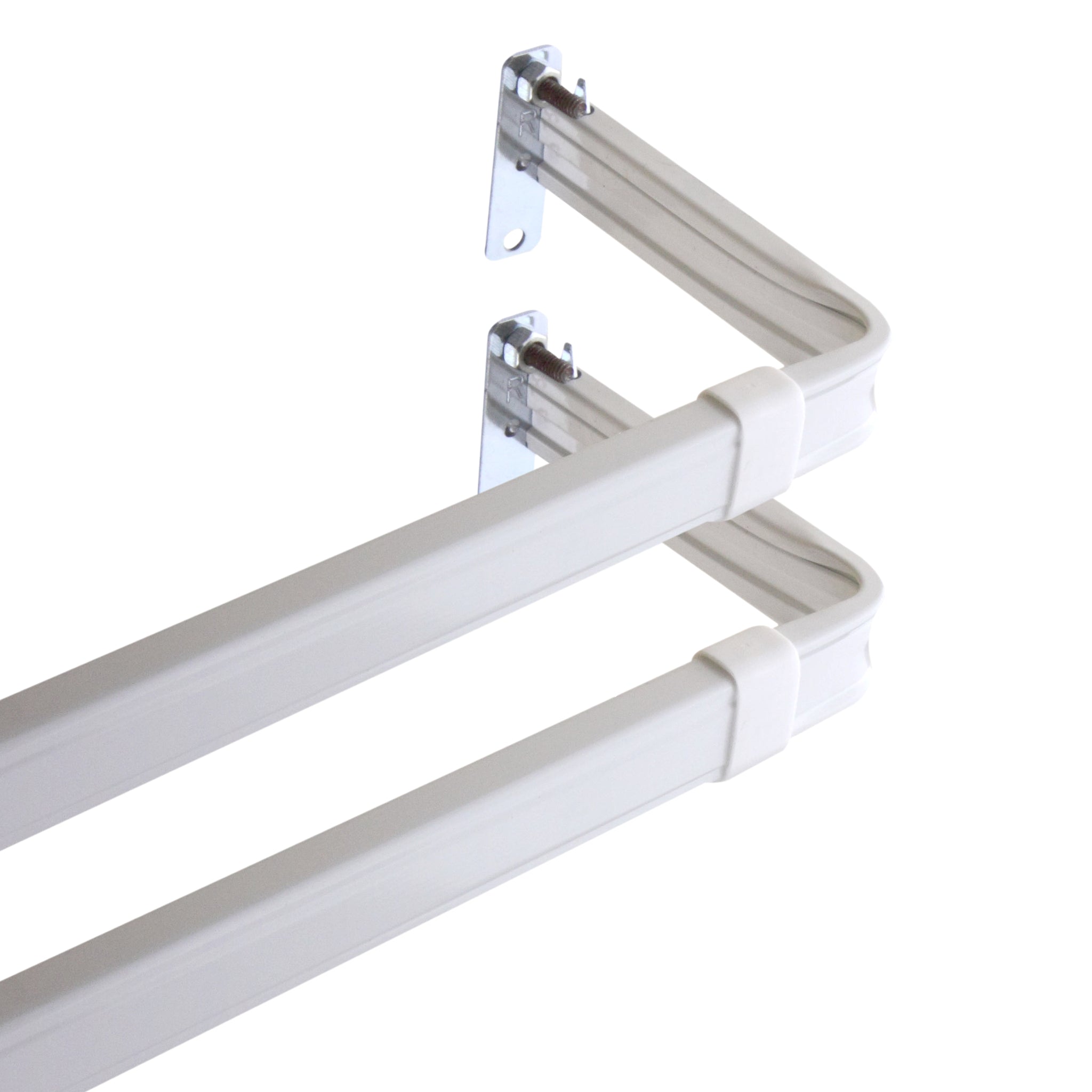 Includes two heavy duty lockseam curtain rods 3/4 inch tall, projects 3 inches out from the wall, brackets, and mounting hardware