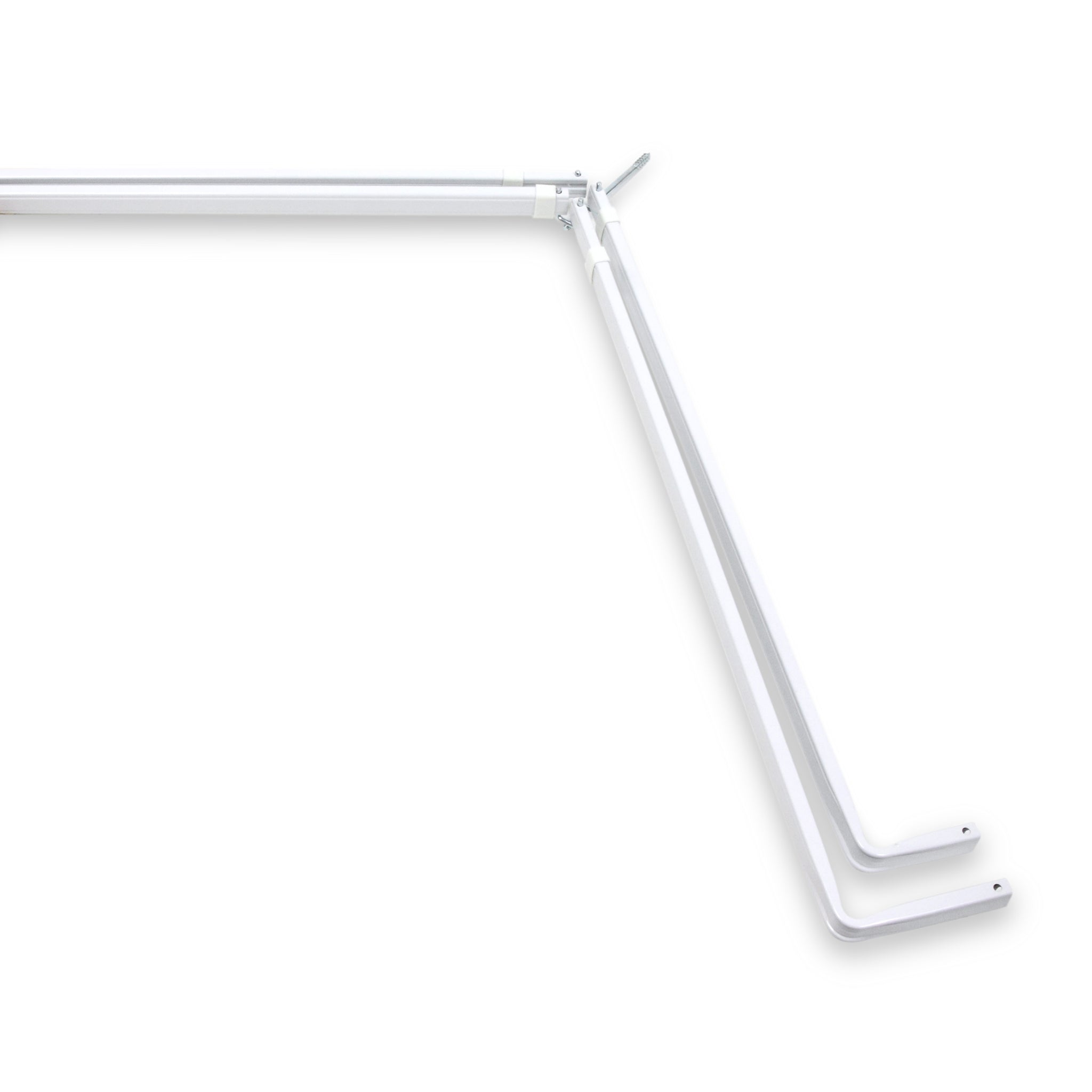 Includes one lockseam double corner rod 3/4 inch tall, projects 2.5 inch out from the wall, brackets, and mounting hardware