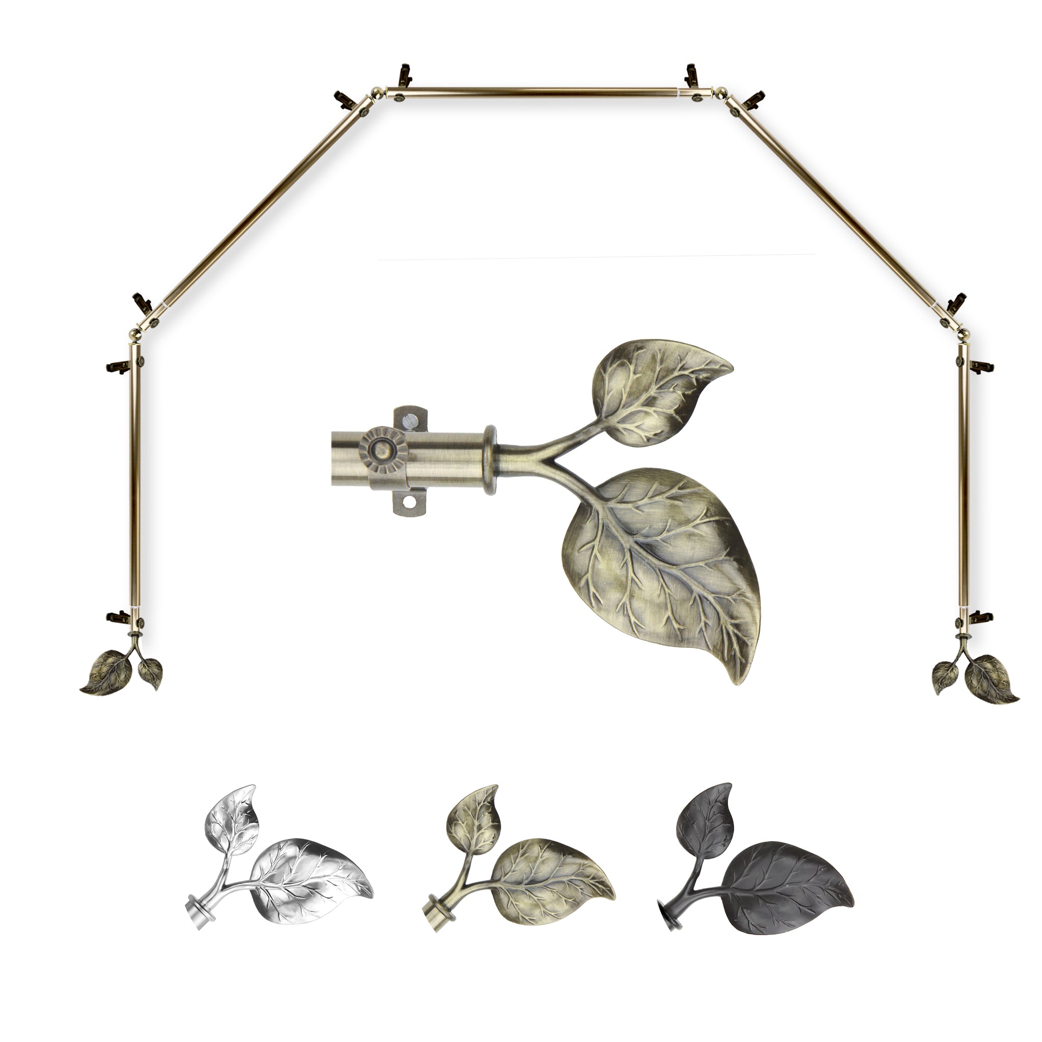 Includes five 13/16" diameter adjustable poles, one pair of decorative finials, 10 single brackets, 4 corner connectors, and mounting hardware