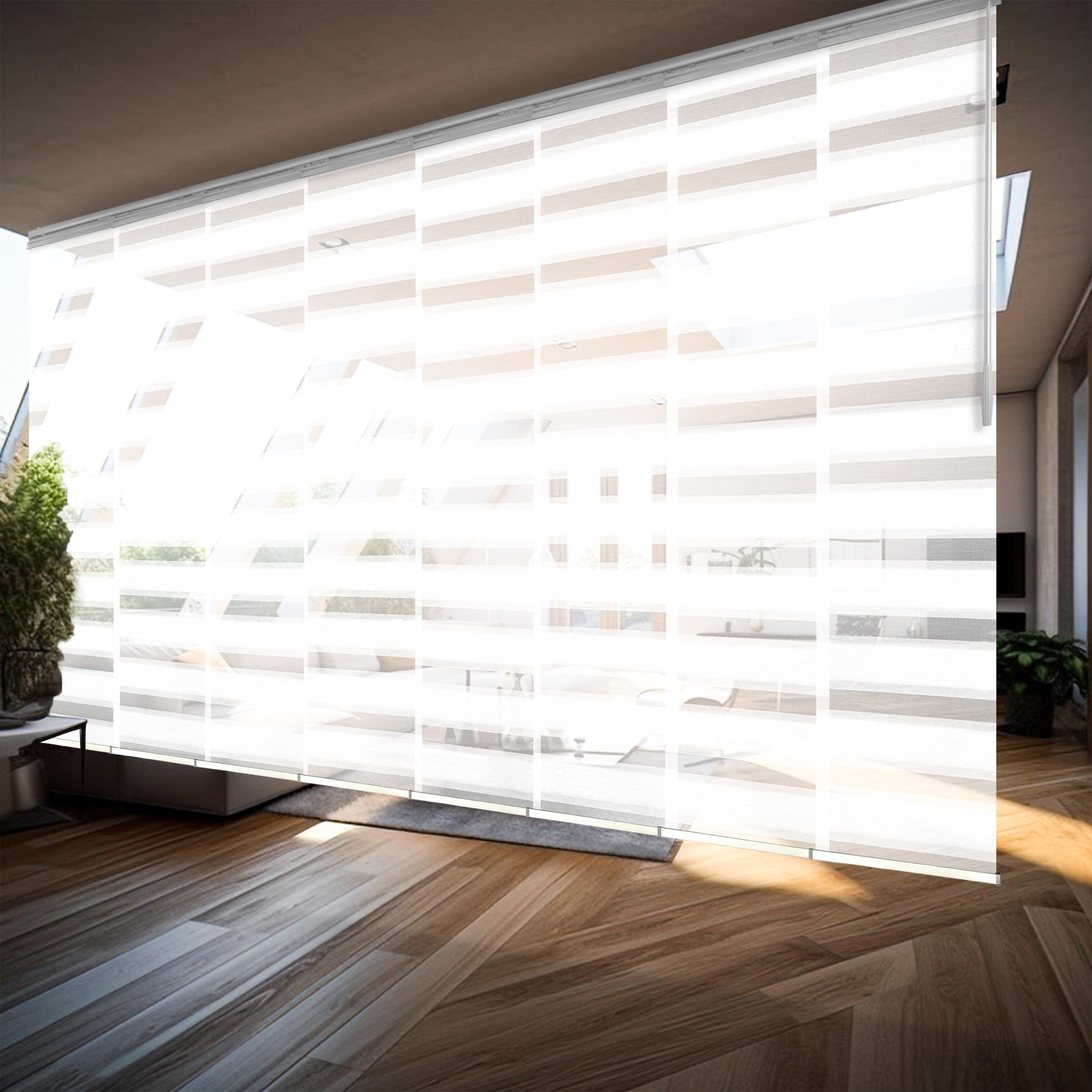 Patented Sliders Design: Durable and smooth operation, the patented sliders are made with aluminum and fitted with bearings that allow the sliders to glide across the rail. The sliders are also stacked closer together than conventional panel tracks, which reduces light bleed coming from the gaps between panels.