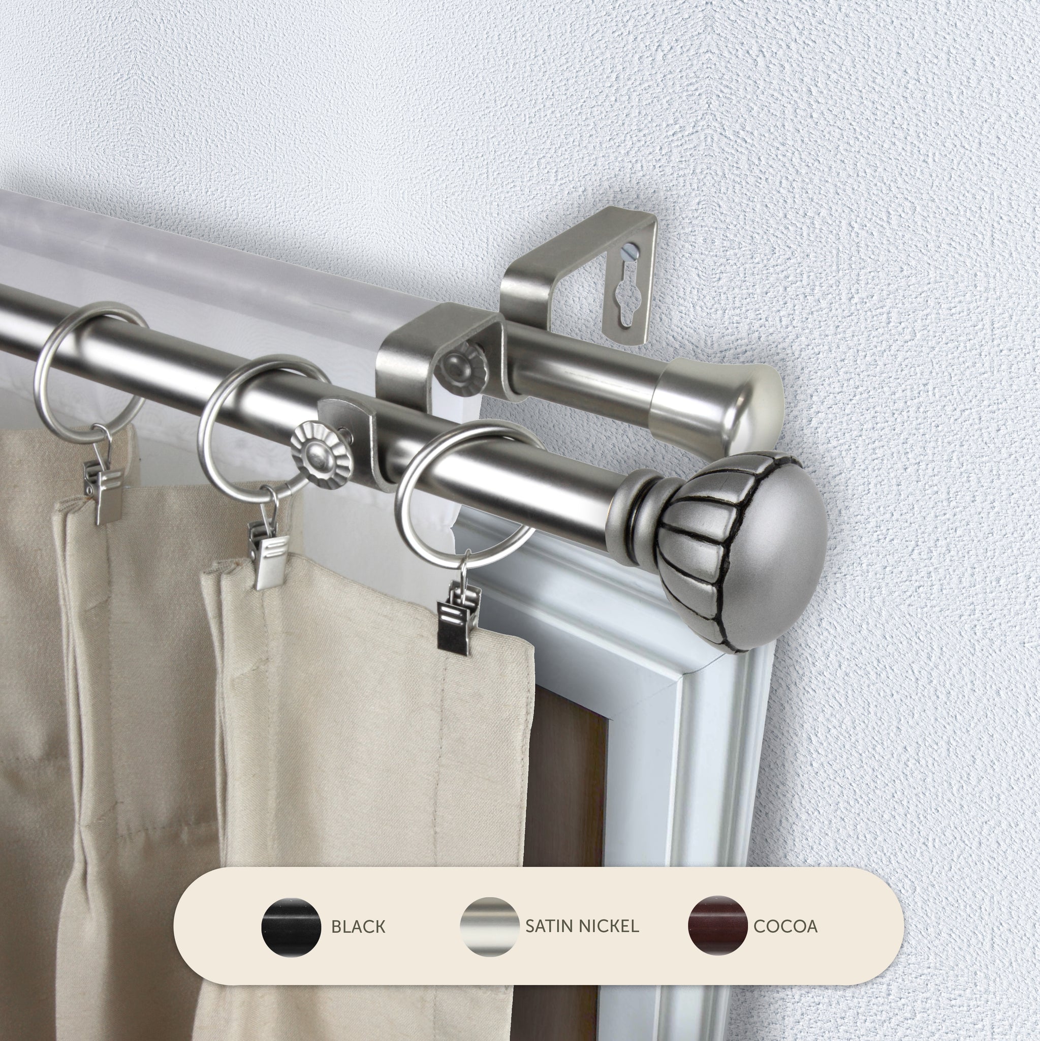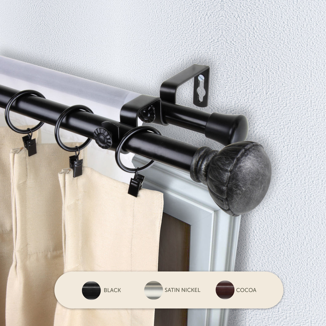 Includes two 13/16" adjustable high-quality steel telescoping poles, two finials, double brackets, and mounting hardware