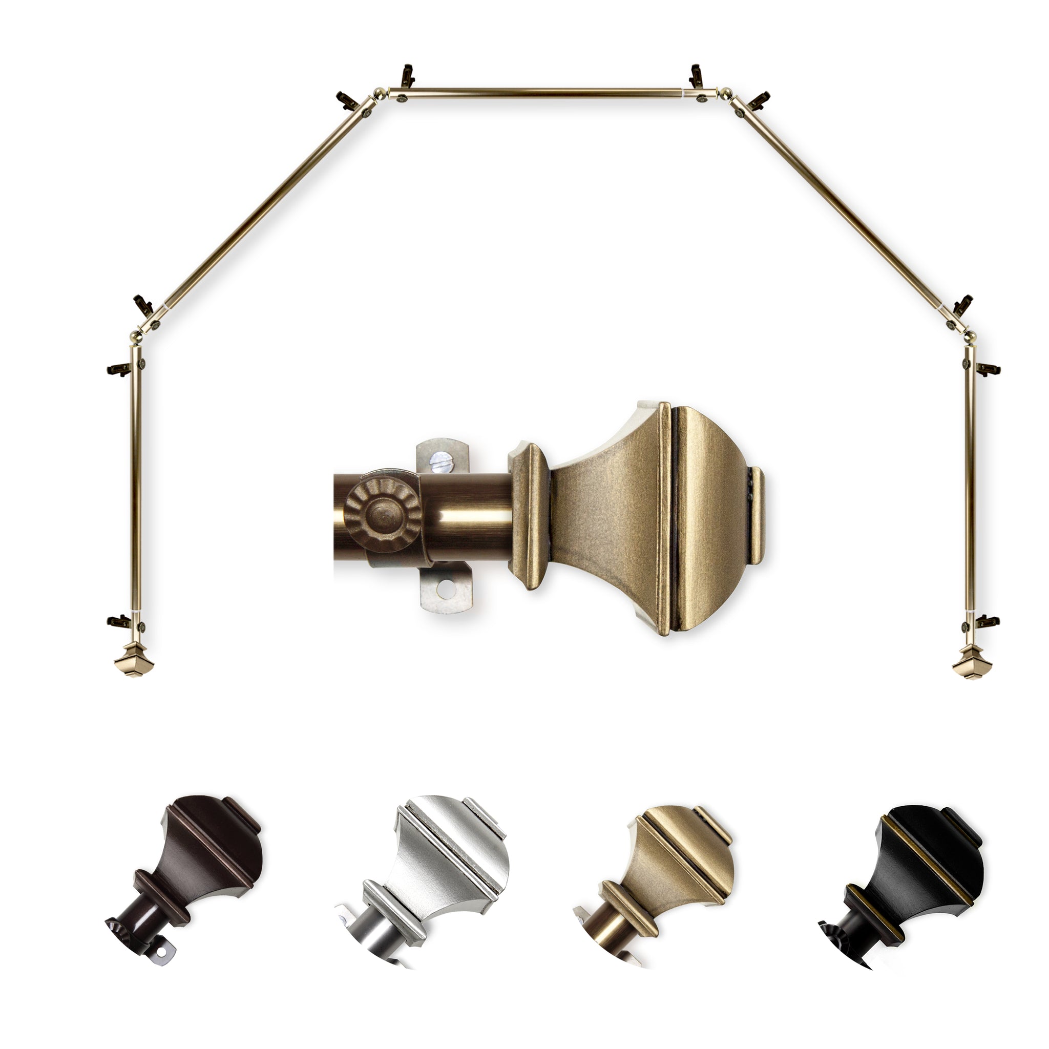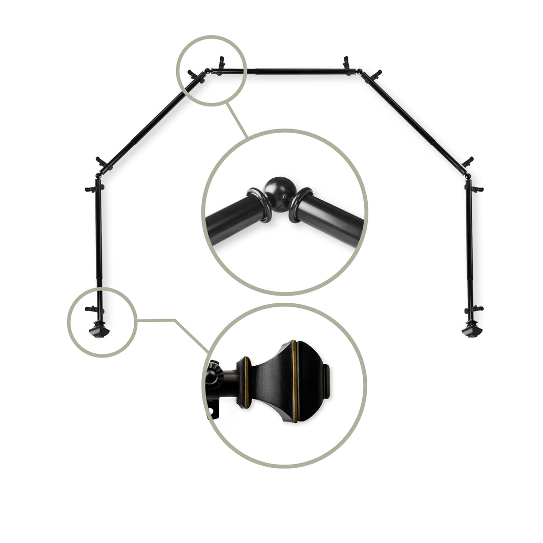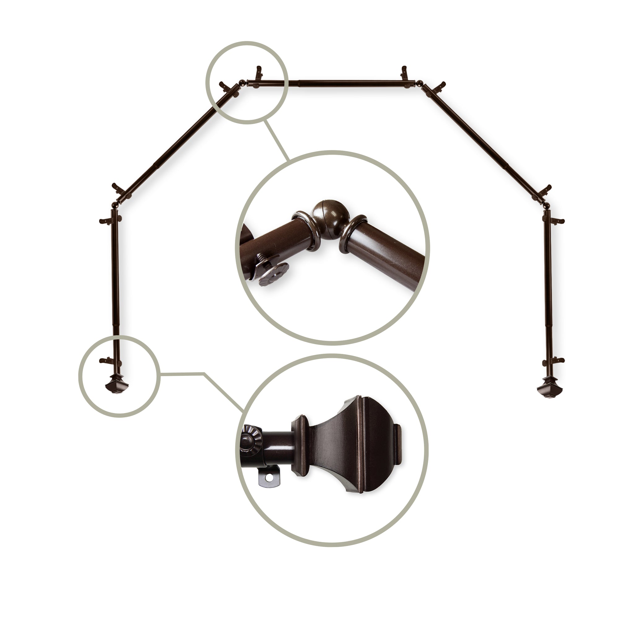 Includes five 13/16" diameter adjustable poles, one pair of decorative finials, 10 single brackets, 4 corner connectors, and mounting hardware