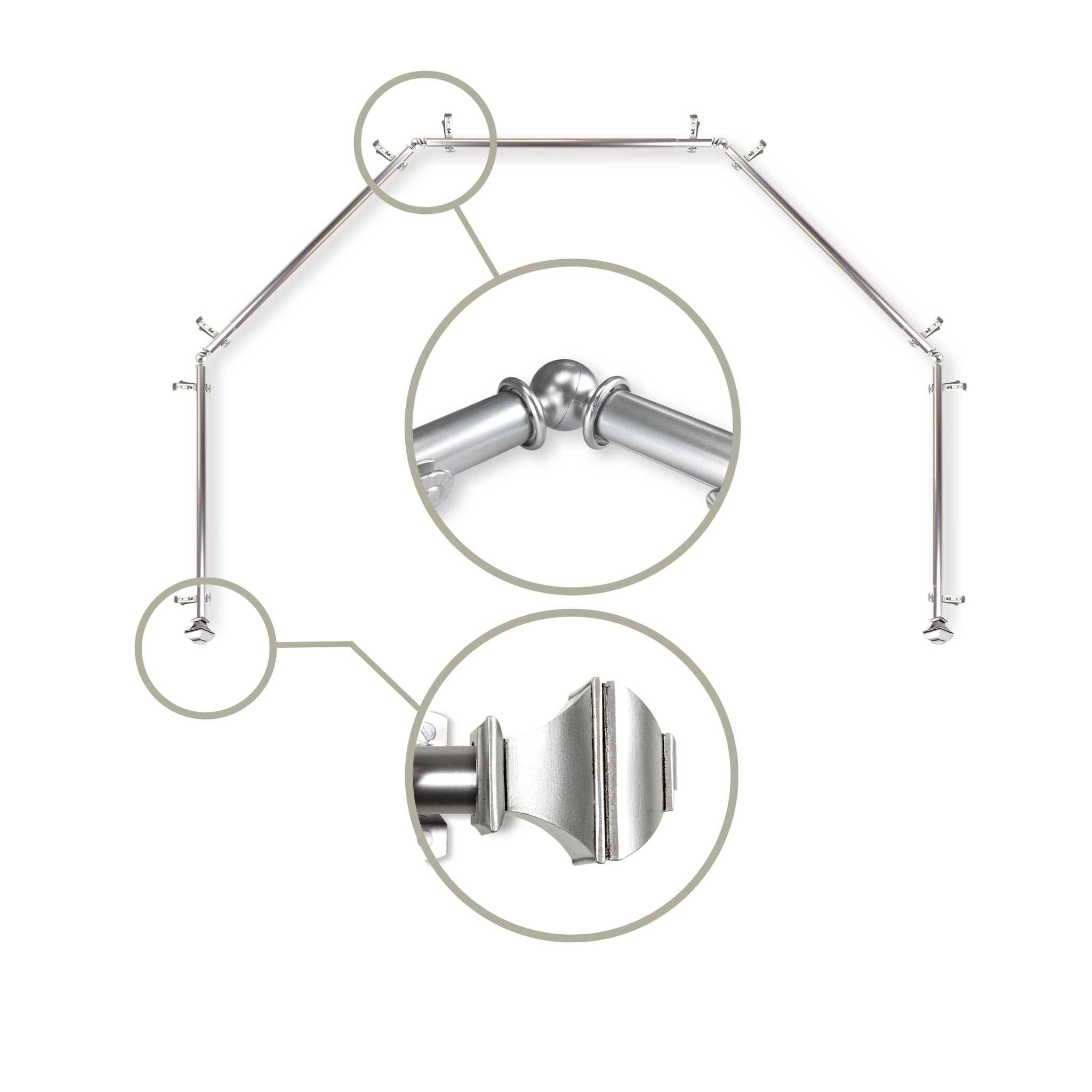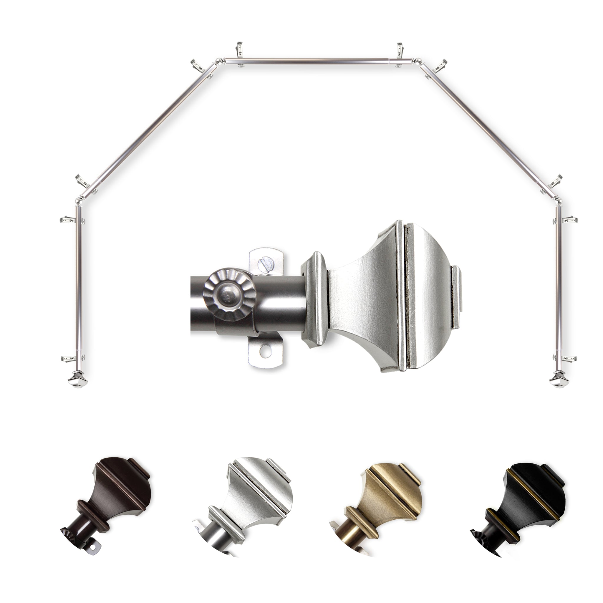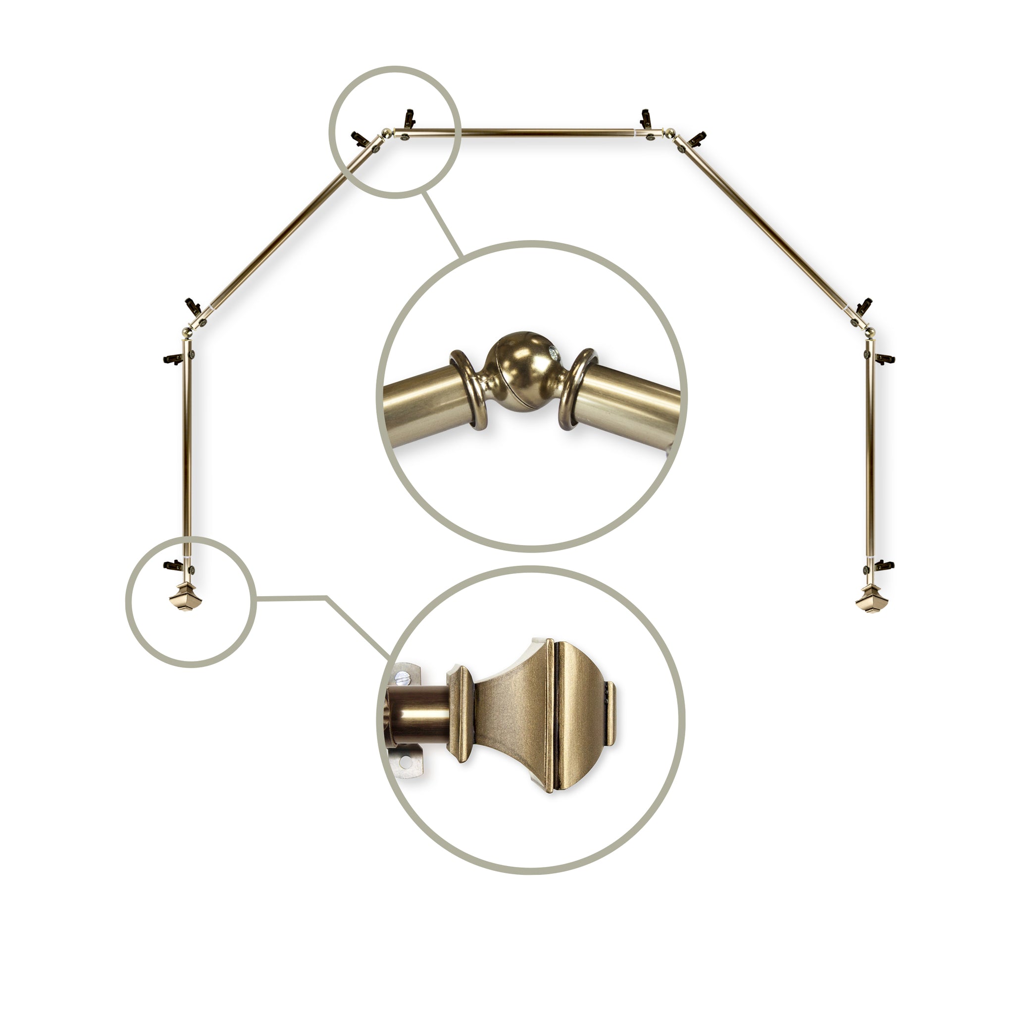 Includes five 13/16" diameter adjustable poles, one pair of decorative finials, 10 single brackets, 4 corner connectors, and mounting hardware
