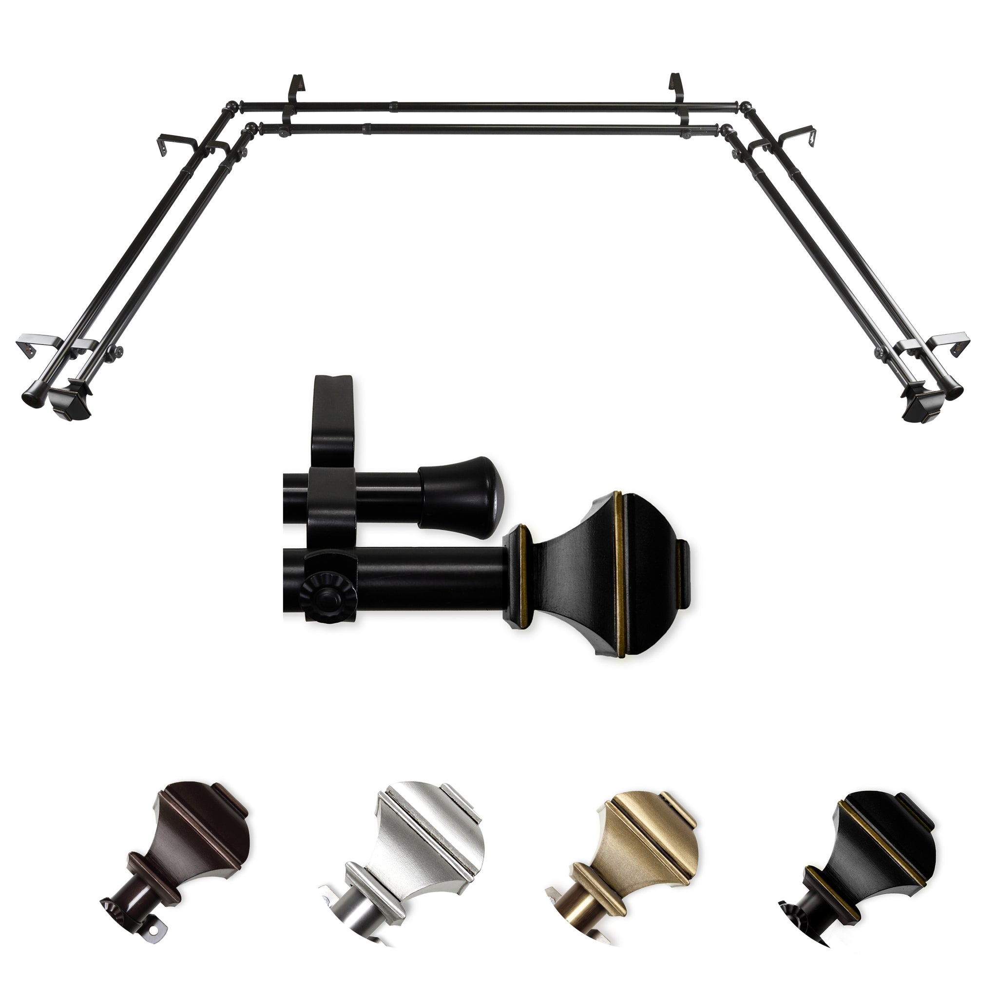 Includes four 13/16" diameter adjustable 20-36 inch poles, two adjustable 38-72 inch poles, one pair of finials, 6 brackets, 4 corner connectors, and mounting hardware