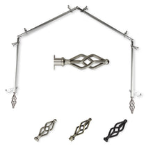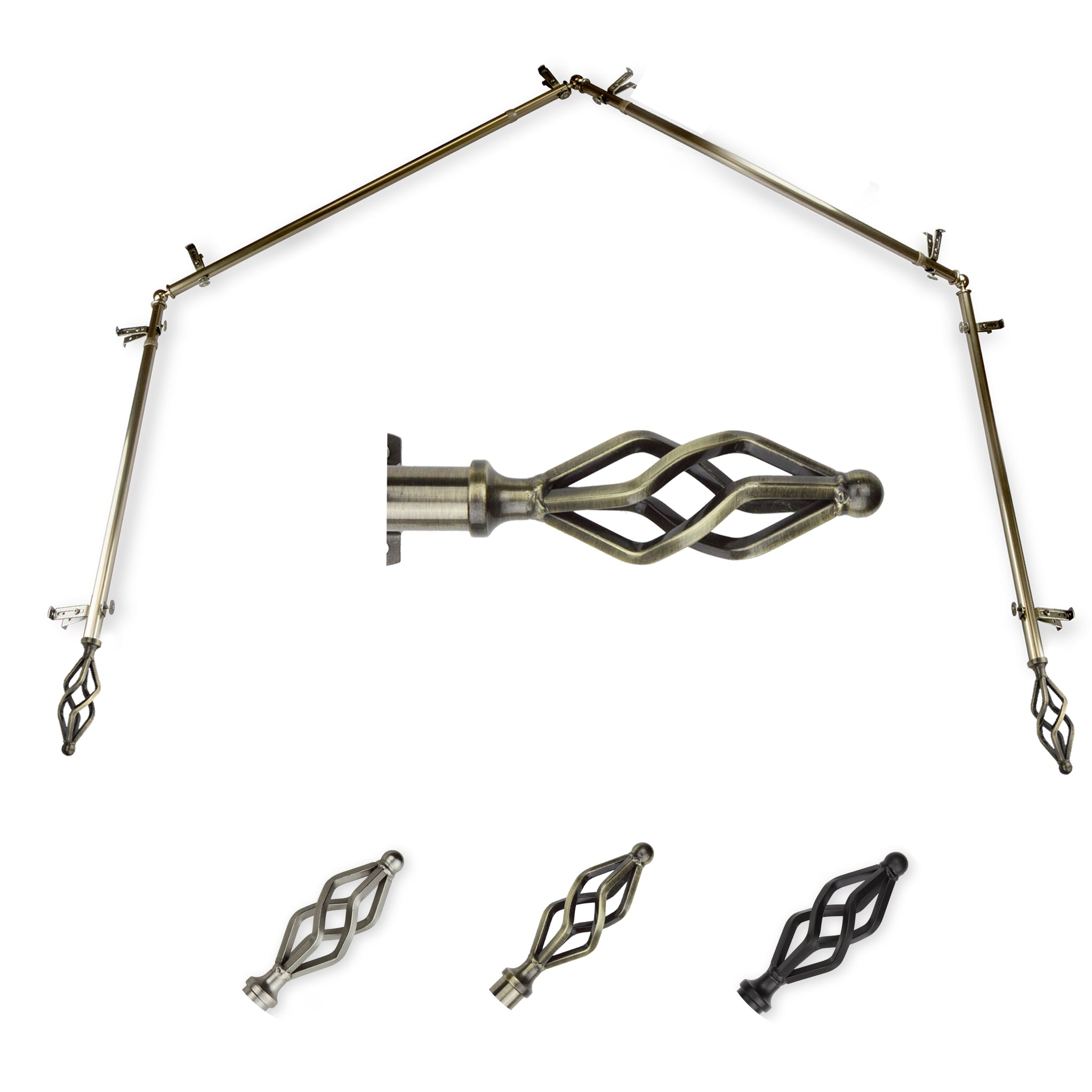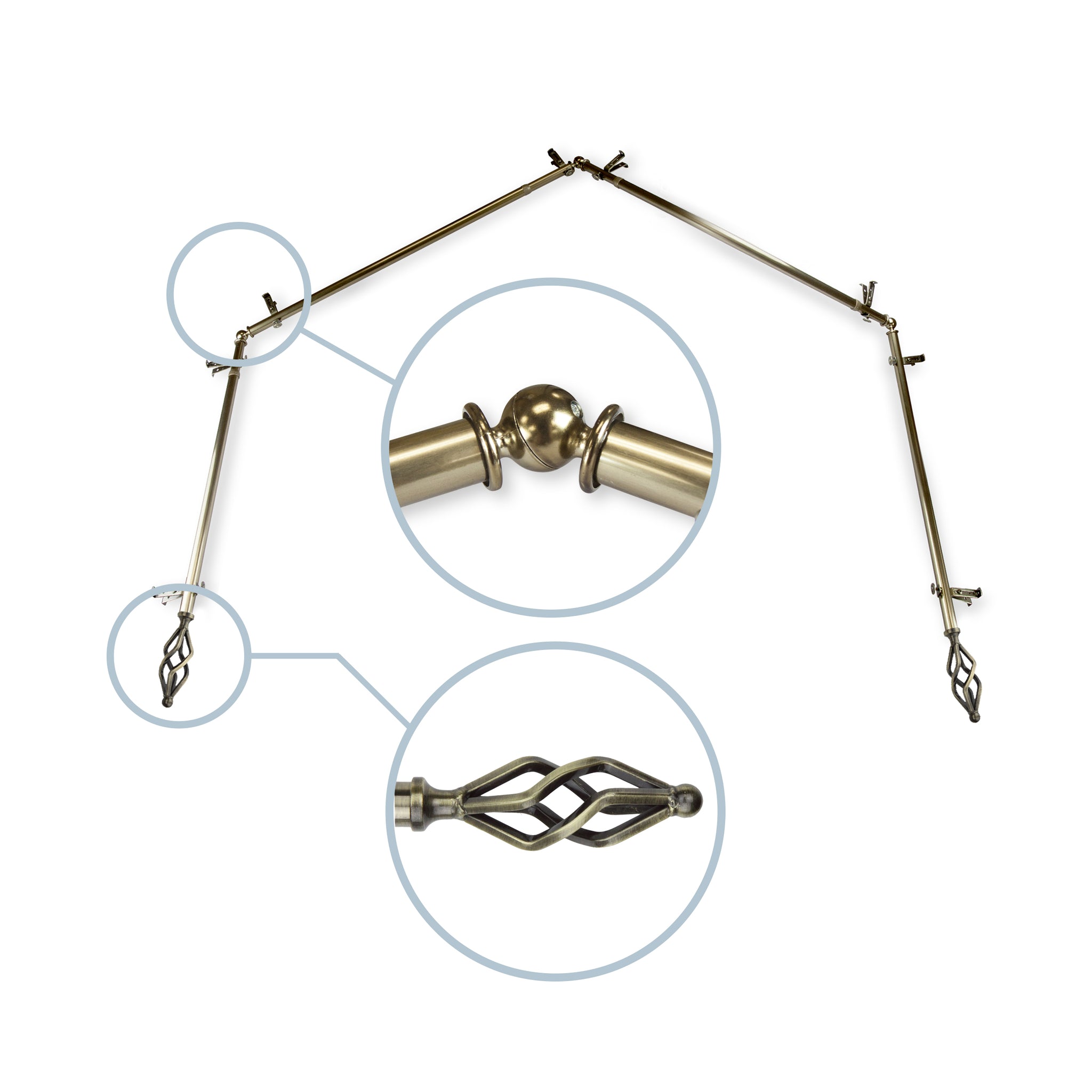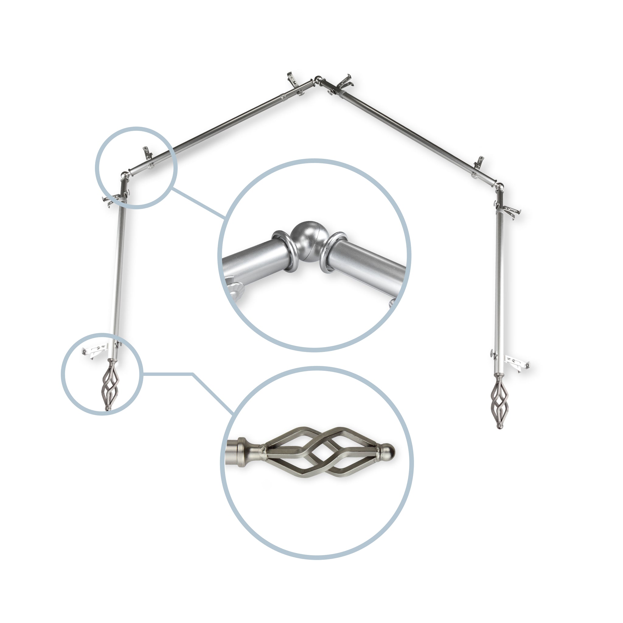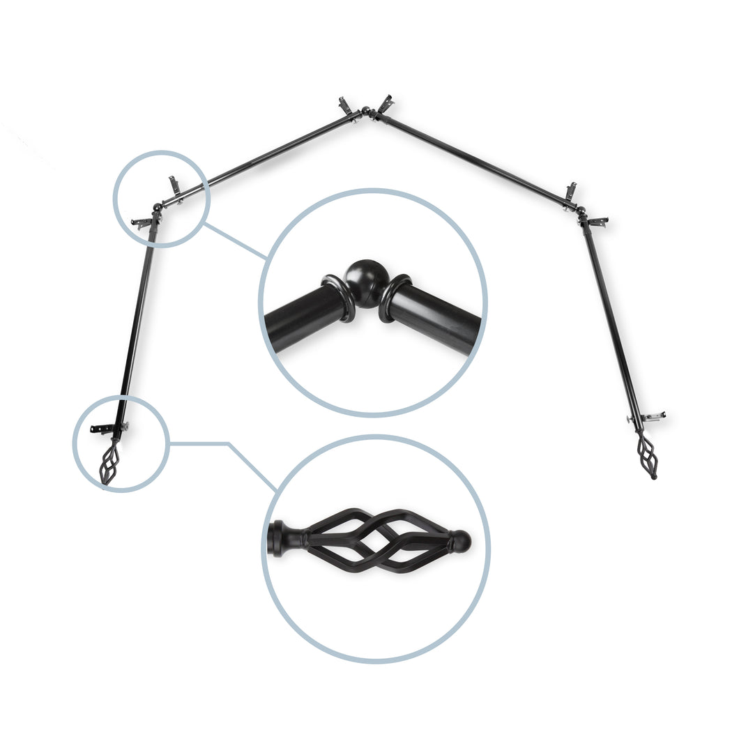 Includes four 13/16" diameter adjustable poles, one pair of decorative finials, 8 single brackets, 3 corner connectors, and mounting hardware