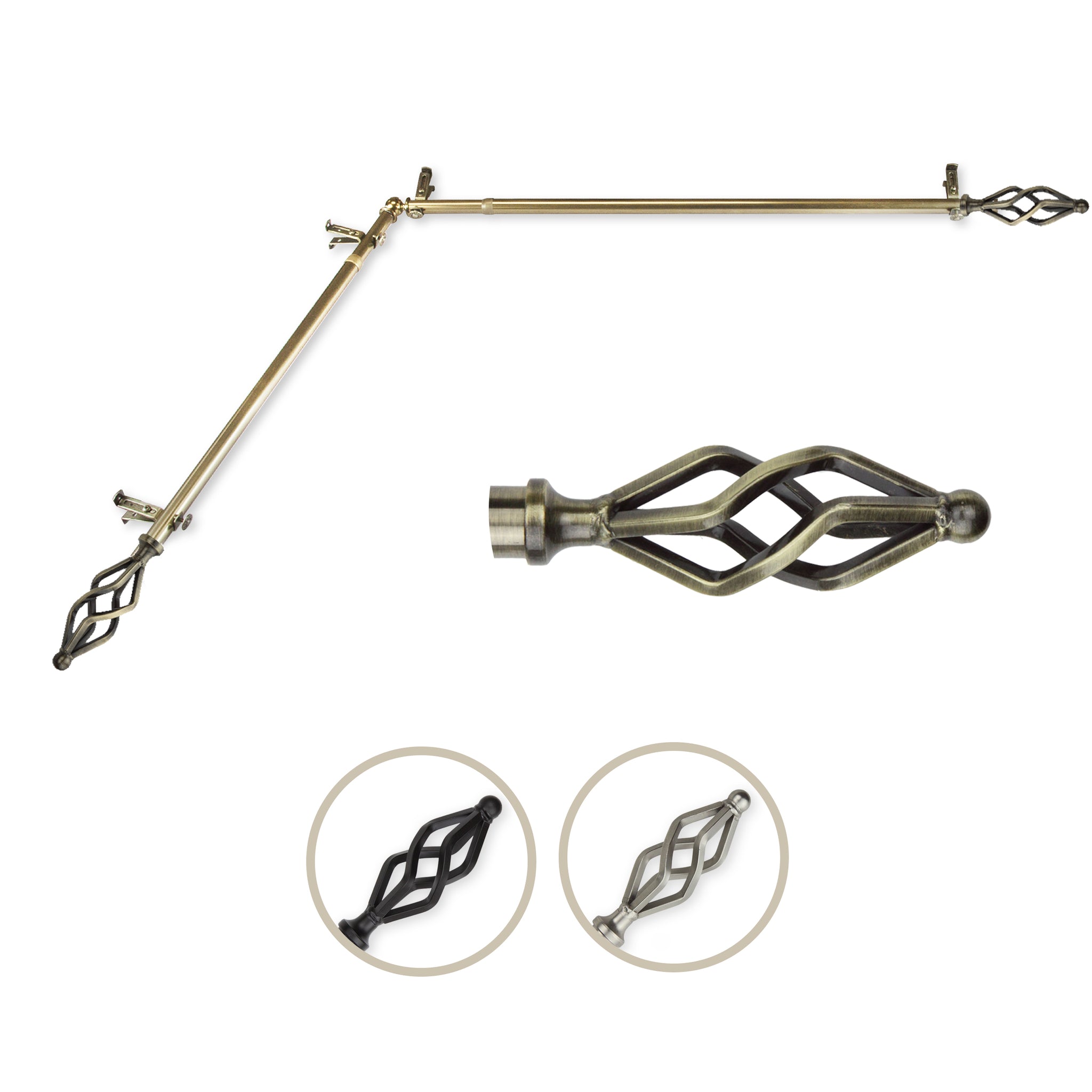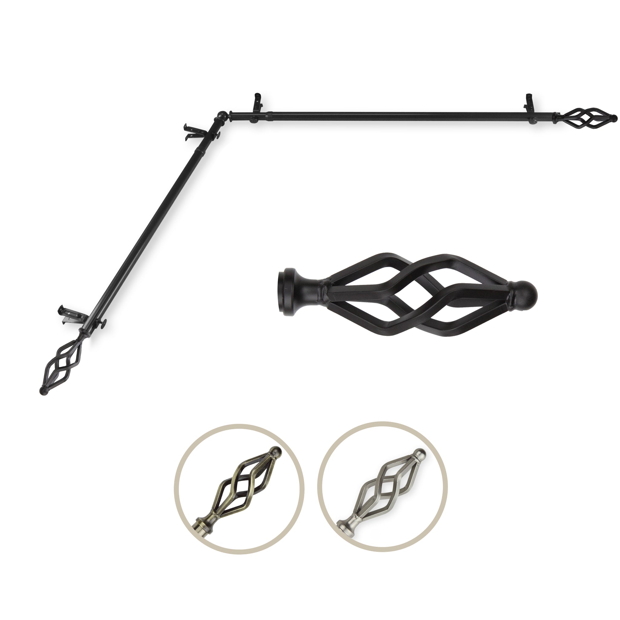 Includes two 13/16" diameter adjustable poles, one pair of decorative finials, one corner connector, brackets and mounting hardware