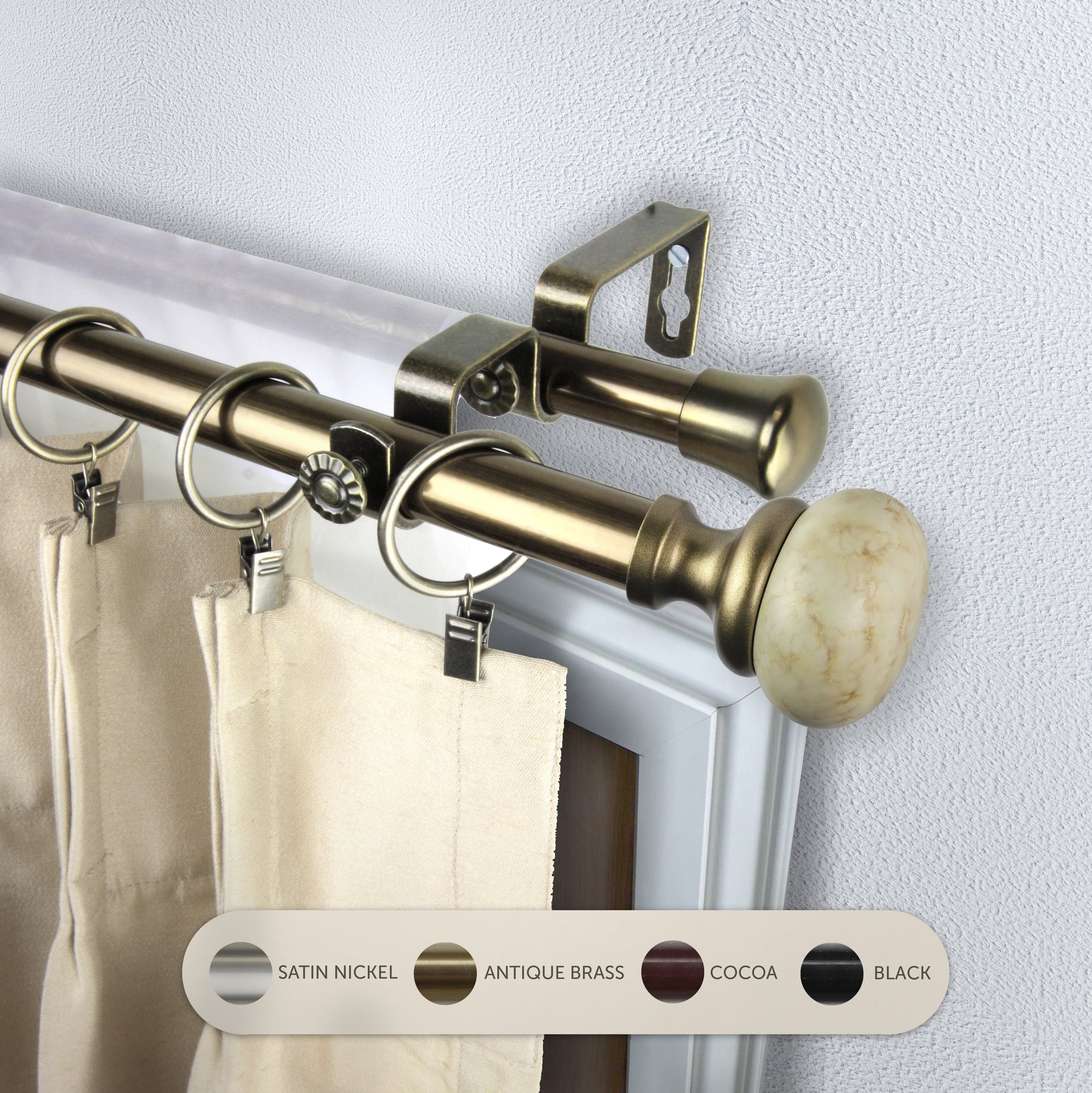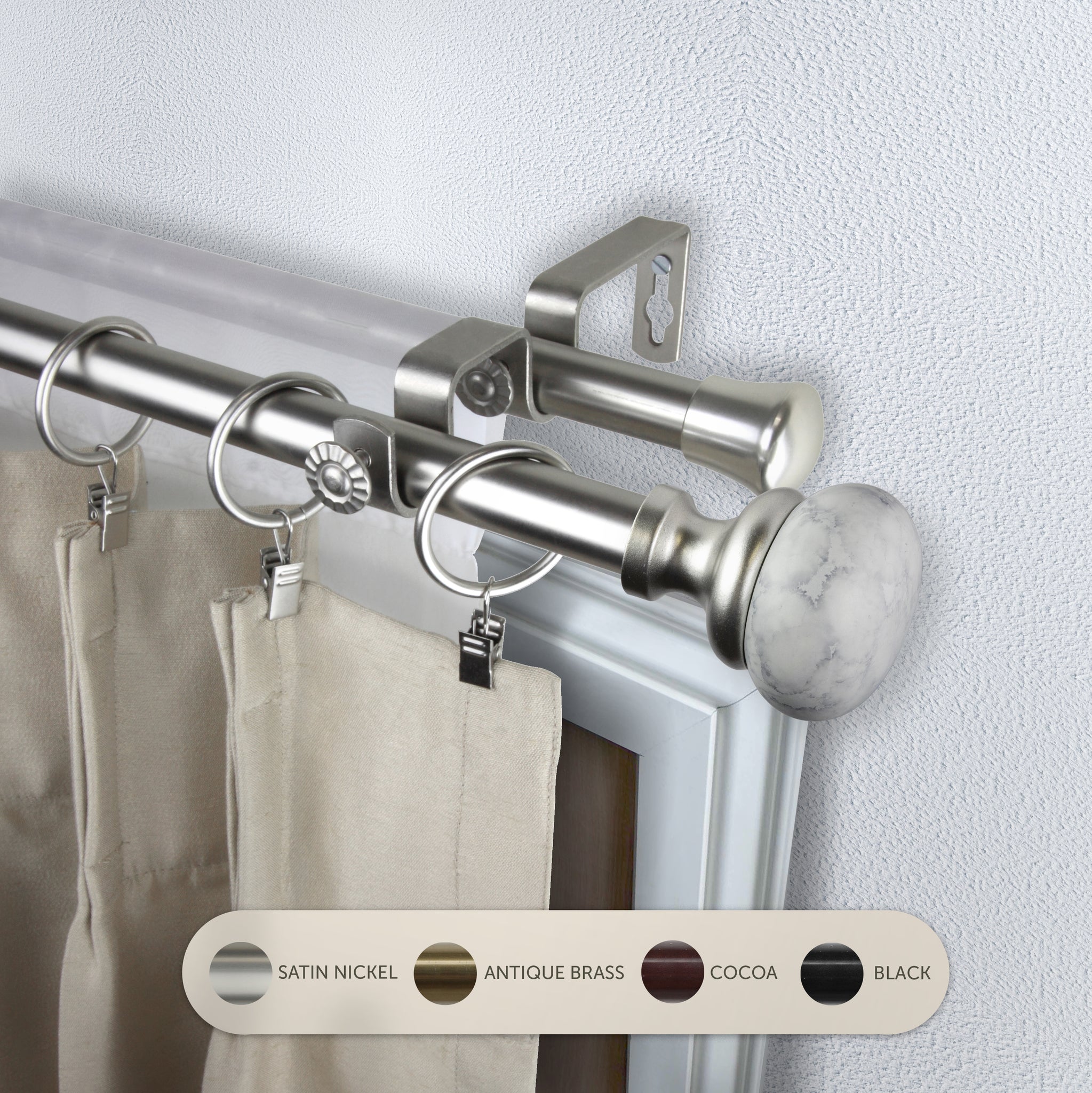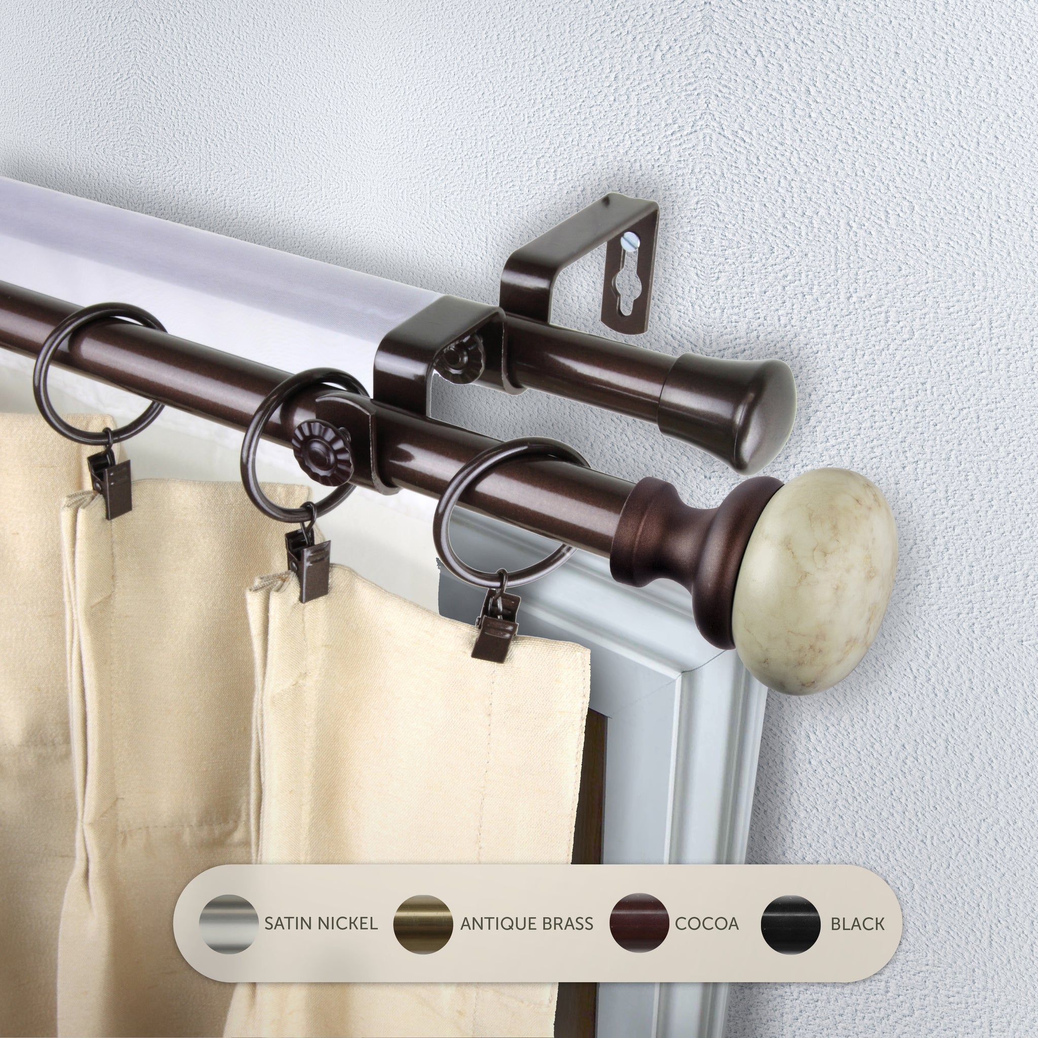 Includes two 13/16" adjustable high-quality steel telescoping poles, two finials, double brackets, and mounting hardware