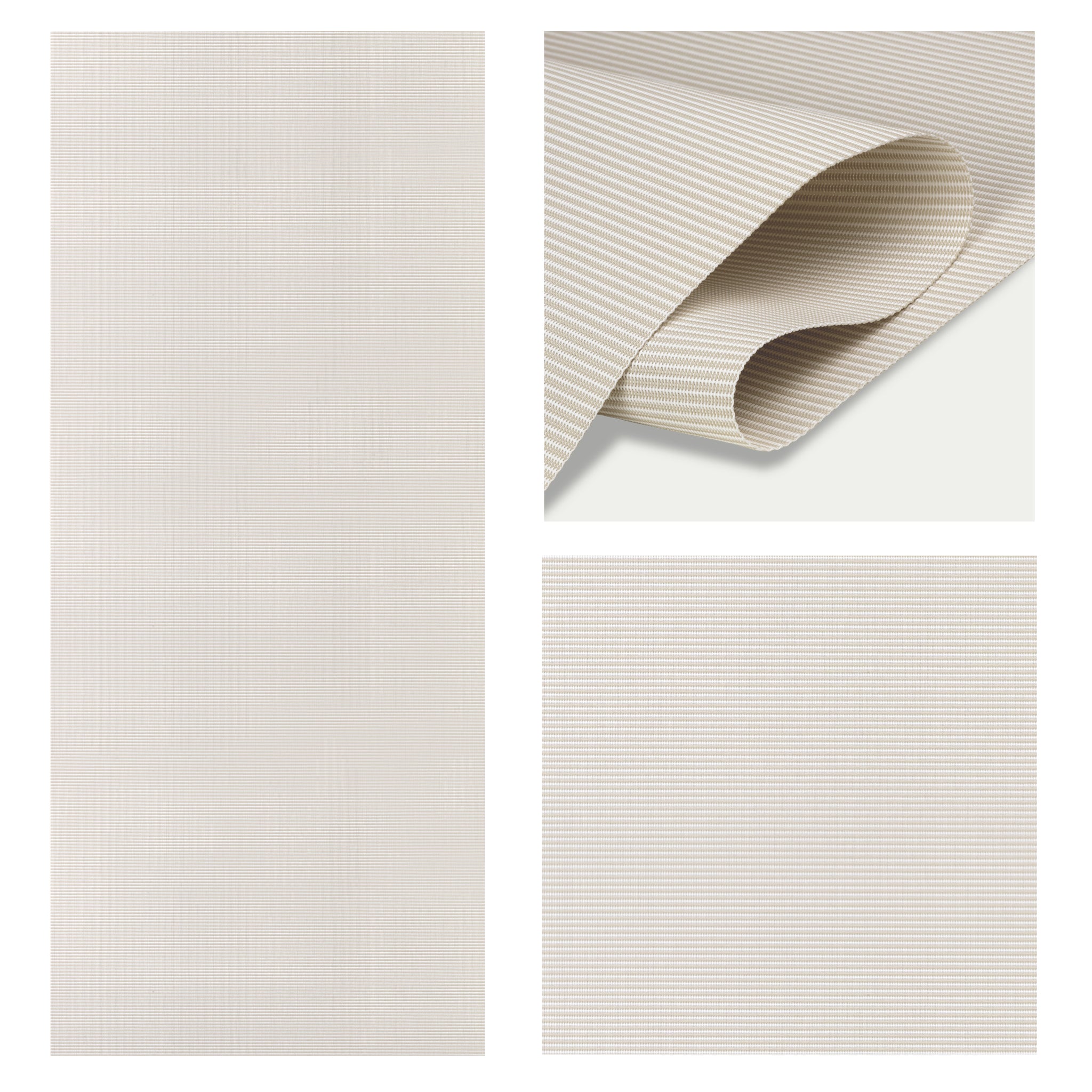 The panels are made from 85% Vinyl 15% Polyester; Light filtering shade, blocks the light by 60%; Fire resistant