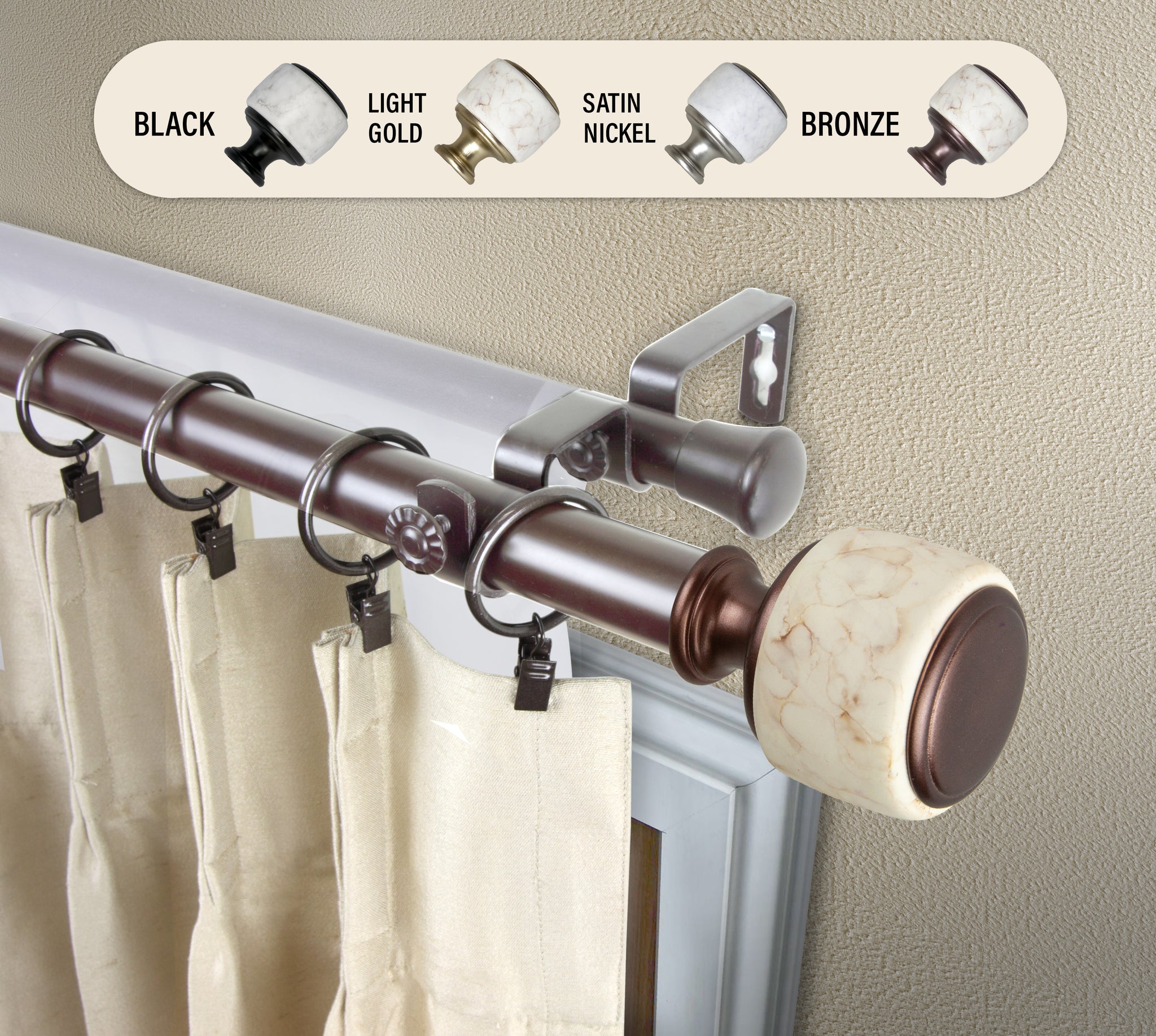 Includes one 1" high-quality steel telescoping pole and one 13/16" adjustable back rod, two finials, double brackets, and mounting hardware