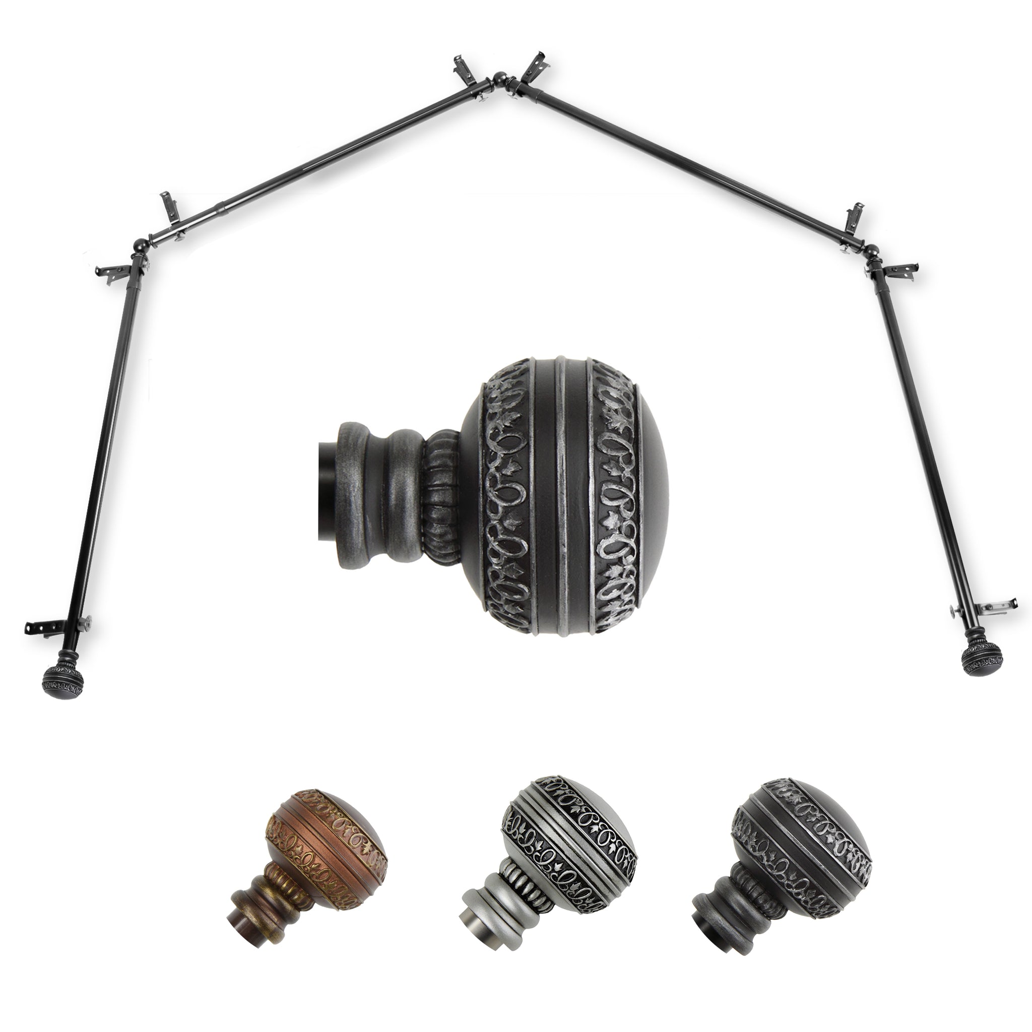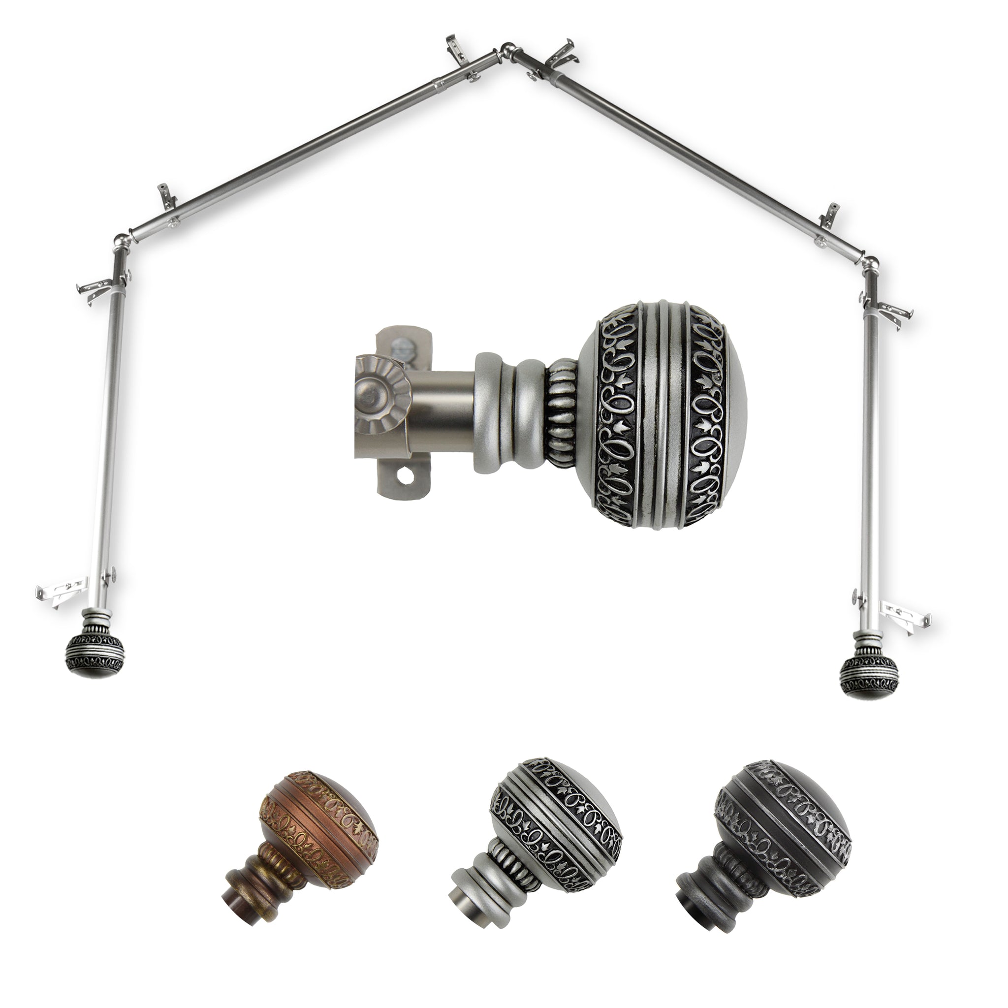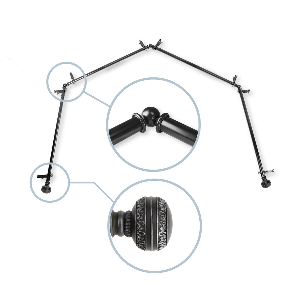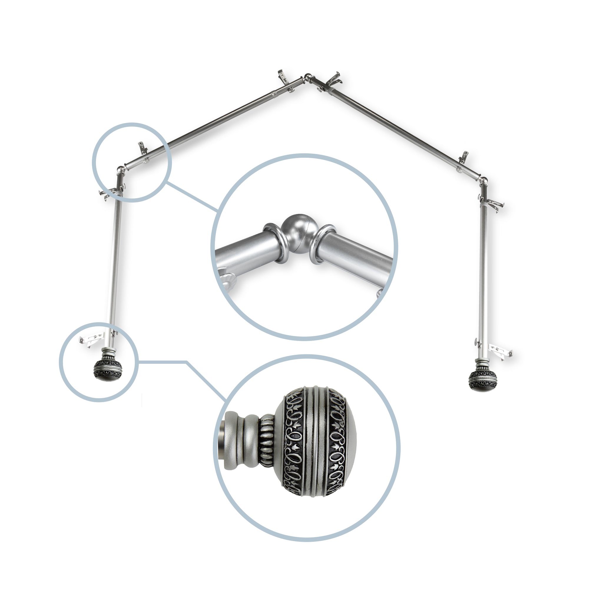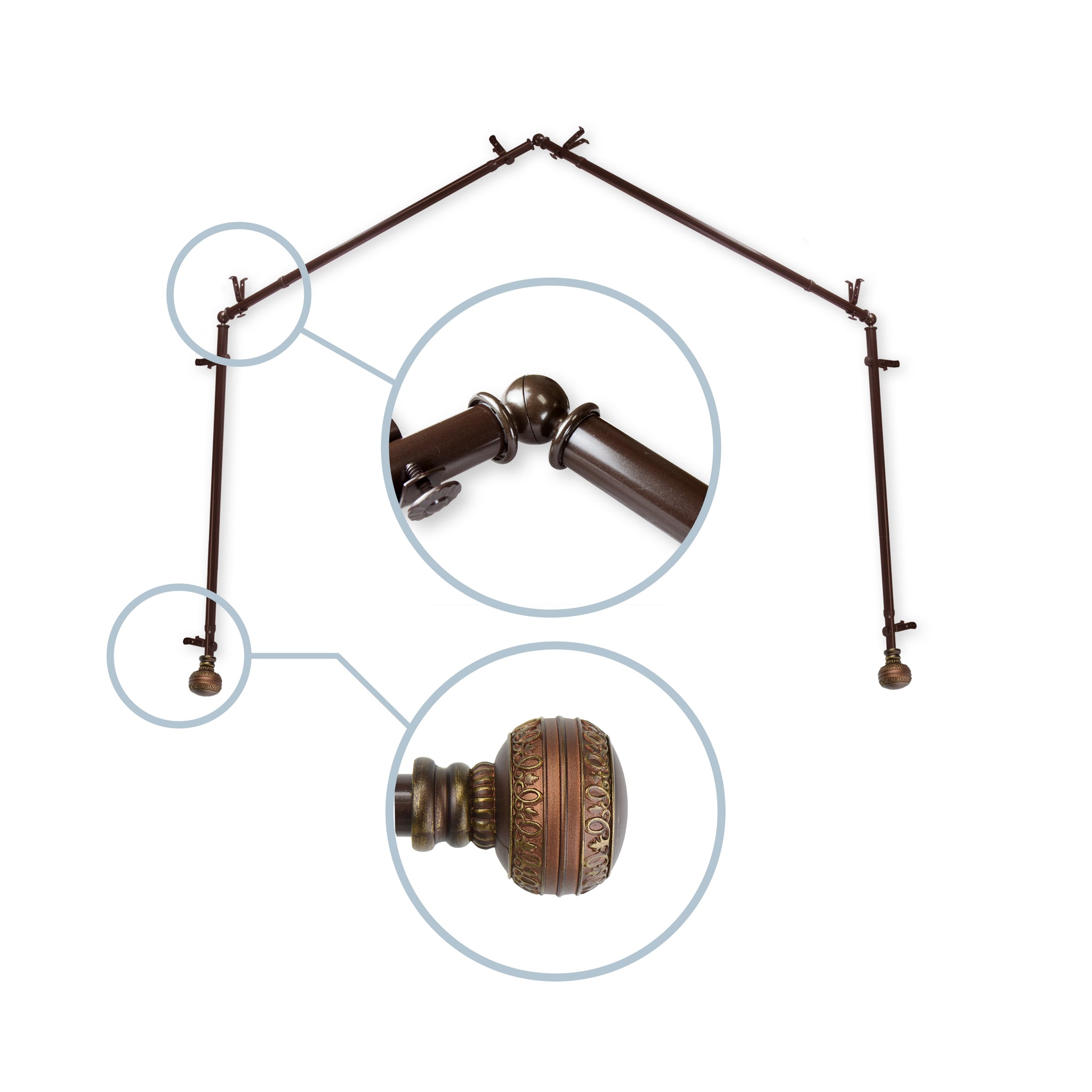 Includes four 13/16" diameter adjustable poles, one pair of decorative finials, 8 single brackets, 3 corner connectors, and mounting hardware