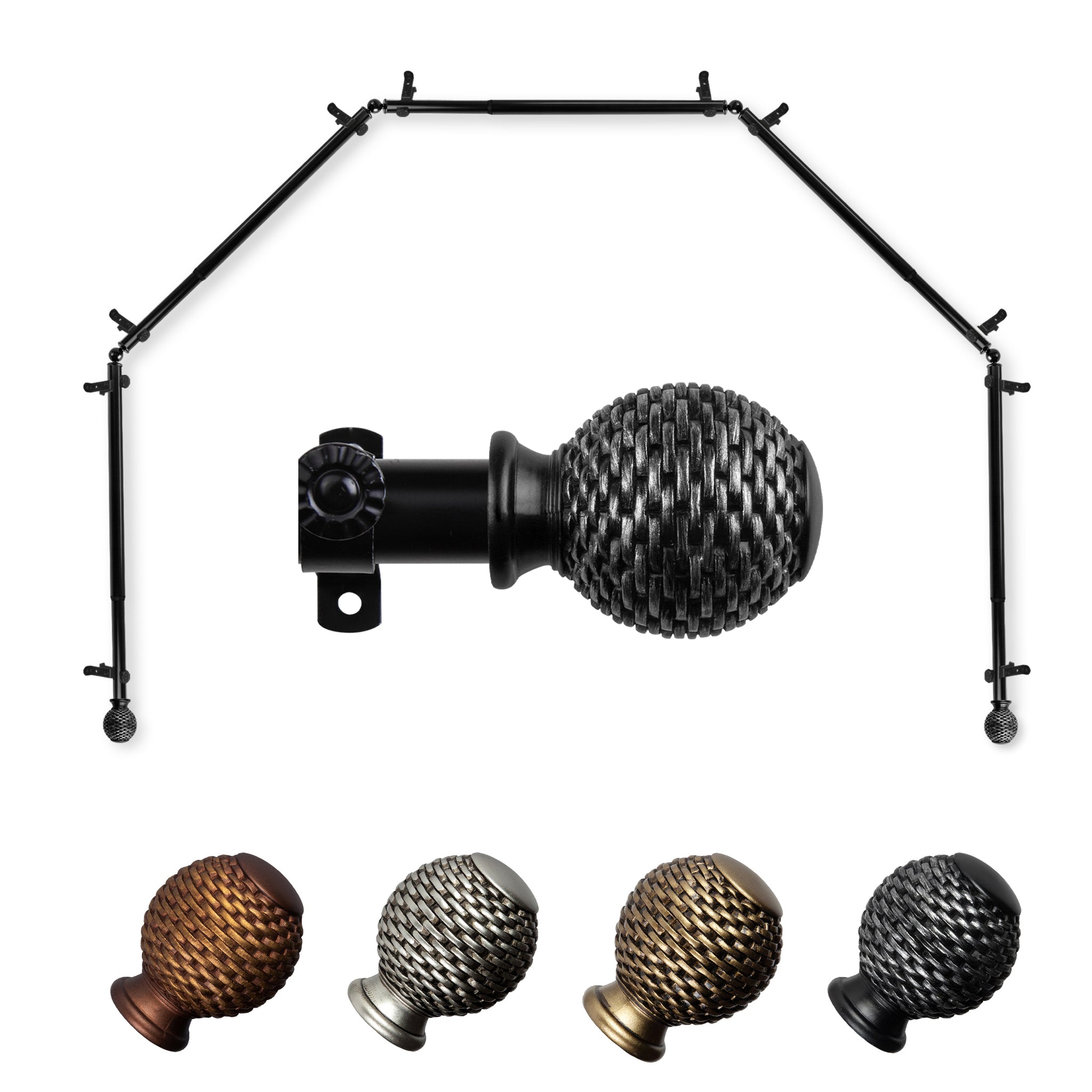 Includes five 13/16" diameter adjustable poles, one pair of decorative finials, 10 single brackets, 4 corner connectors, and mounting hardware