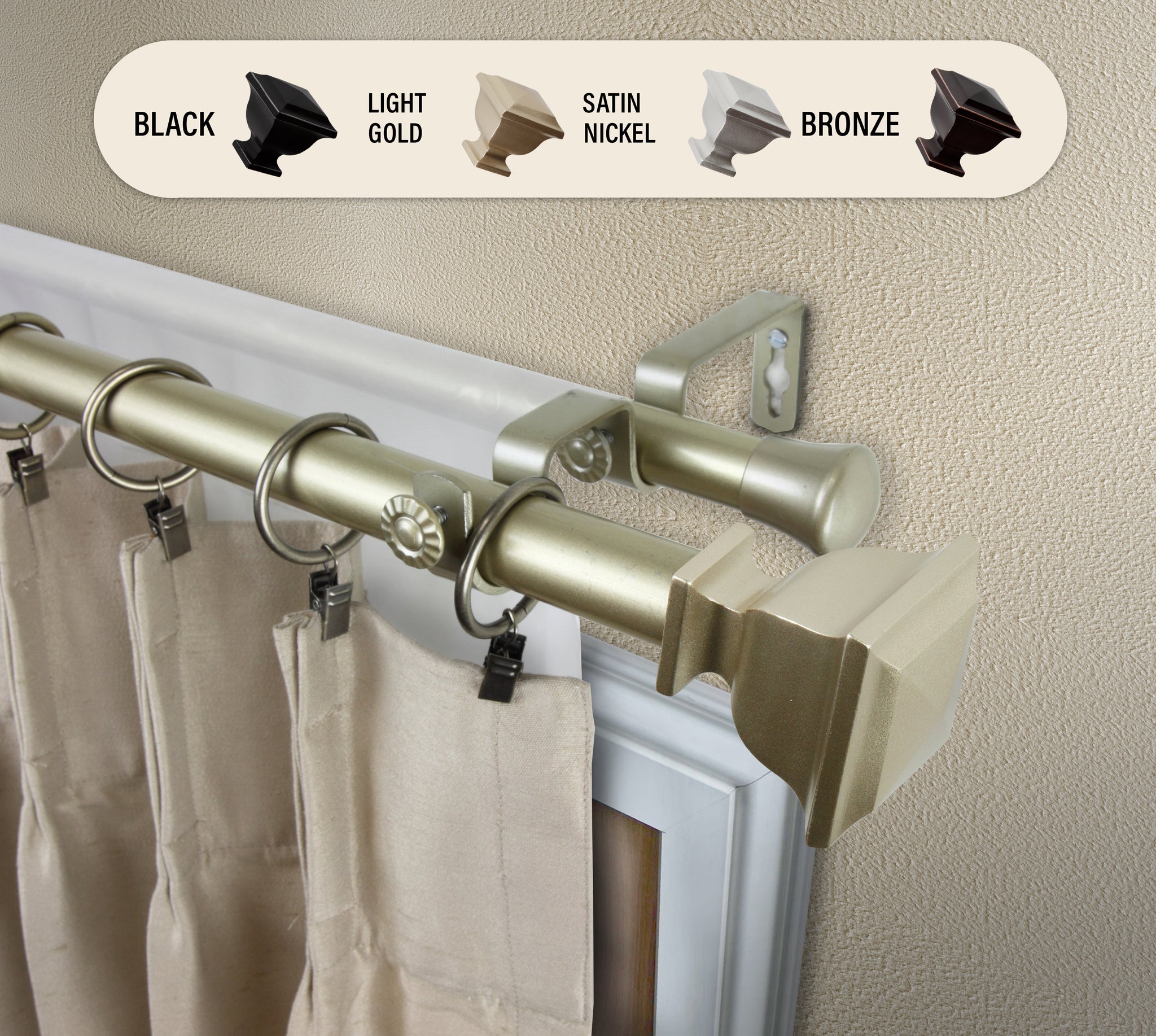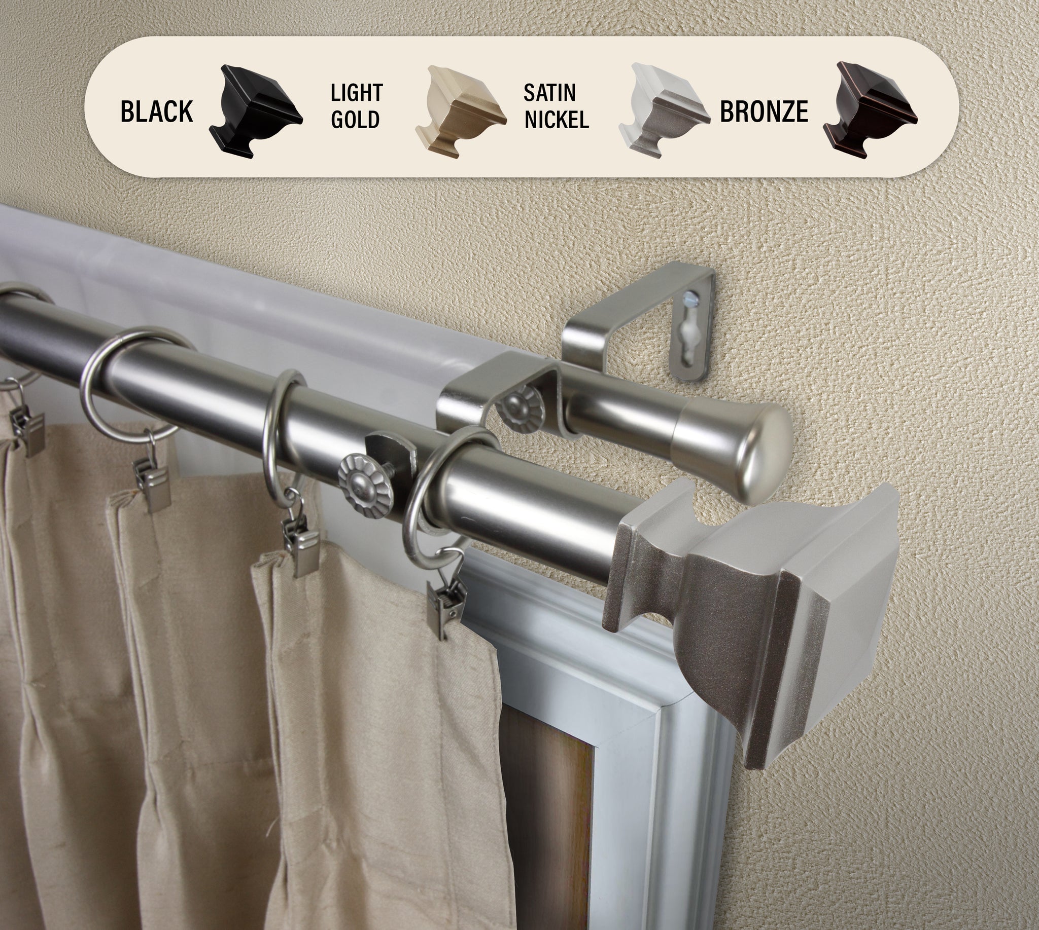 Includes one 1" high-quality steel telescoping pole and one 13/16" adjustable back rod, two finials, double brackets, and mounting hardware