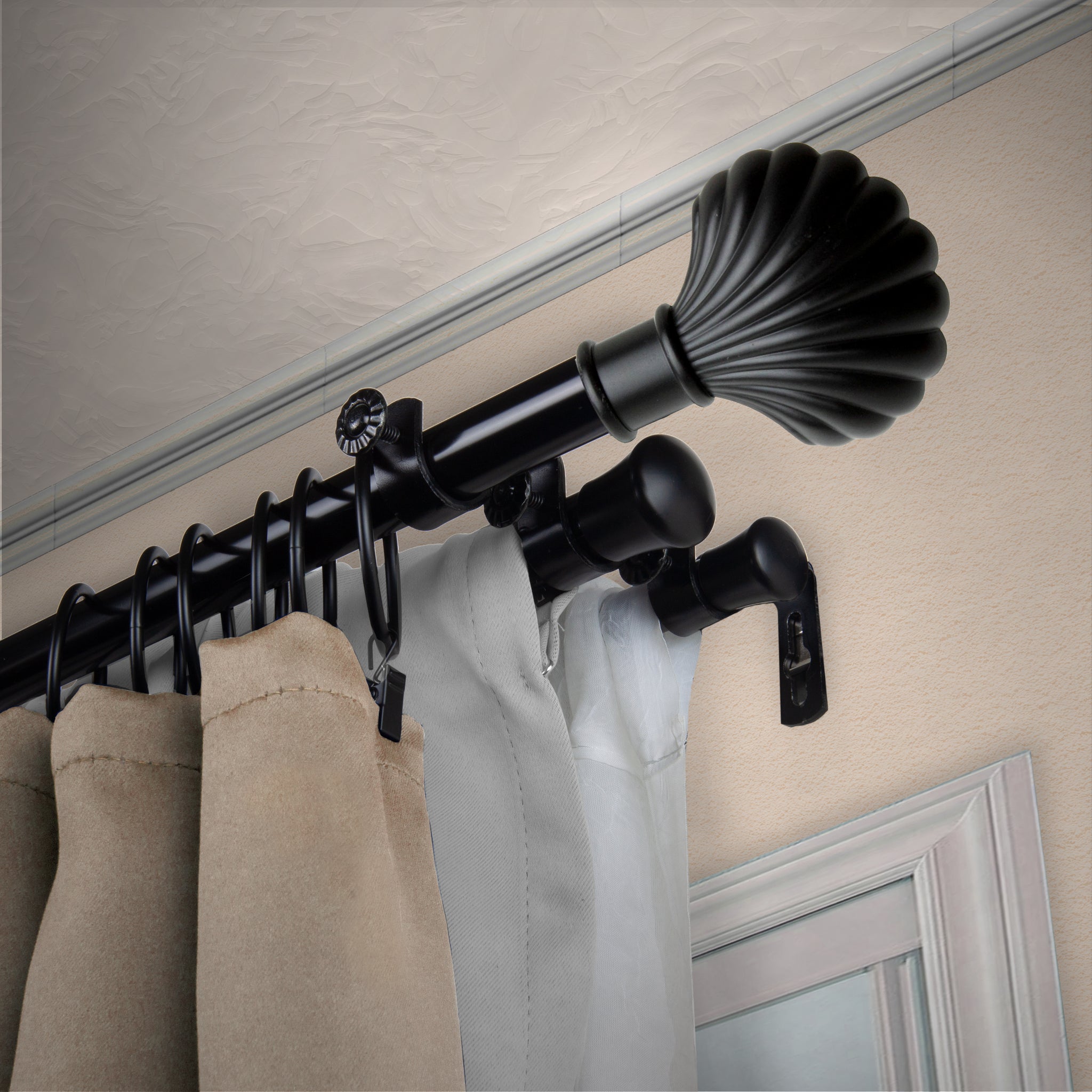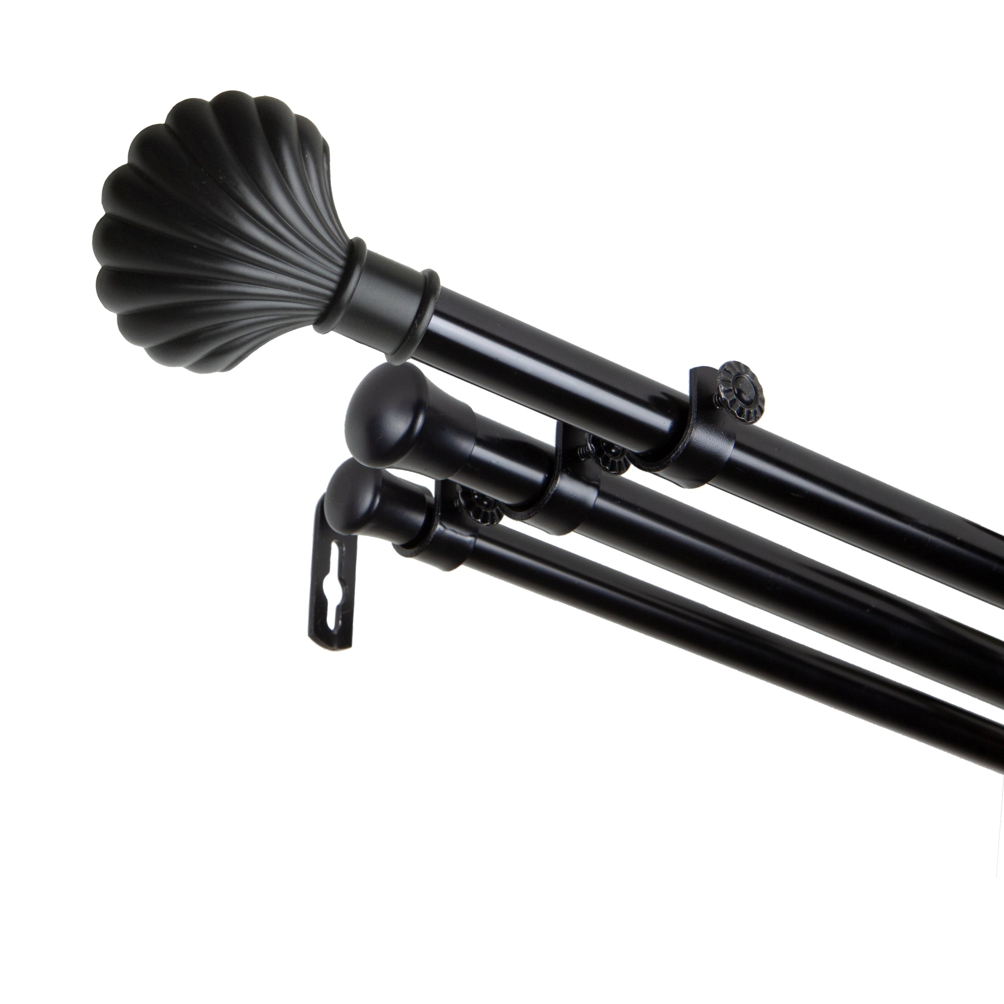 Includes two 13/16" adjustable curtain rods, one 5/8" adjustable back rod, two finials, brackets, and mounting hardware