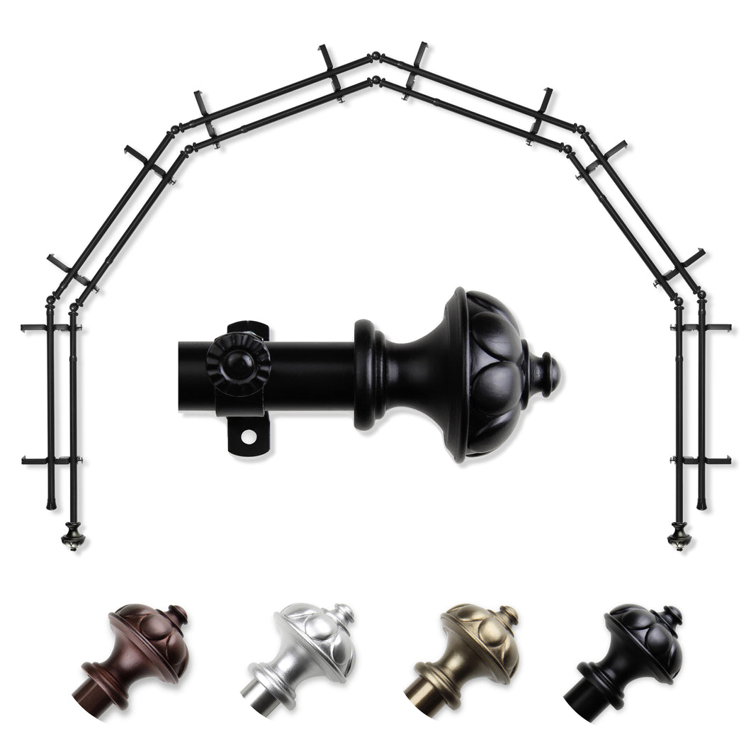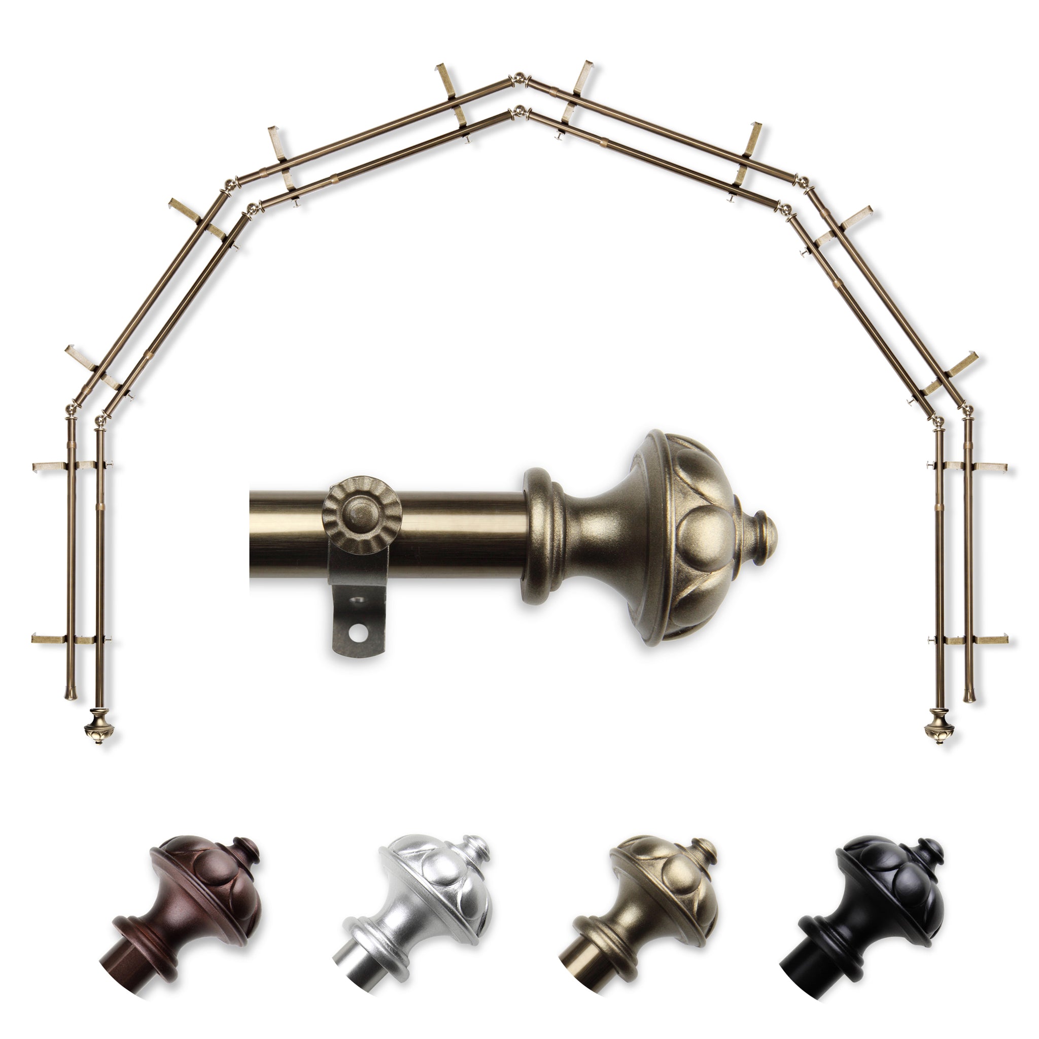 Includes twelve 13/16" diameter adjustable poles, one pair of decorative finials, 12 double brackets, 10 corner connectors, and mounting hardware