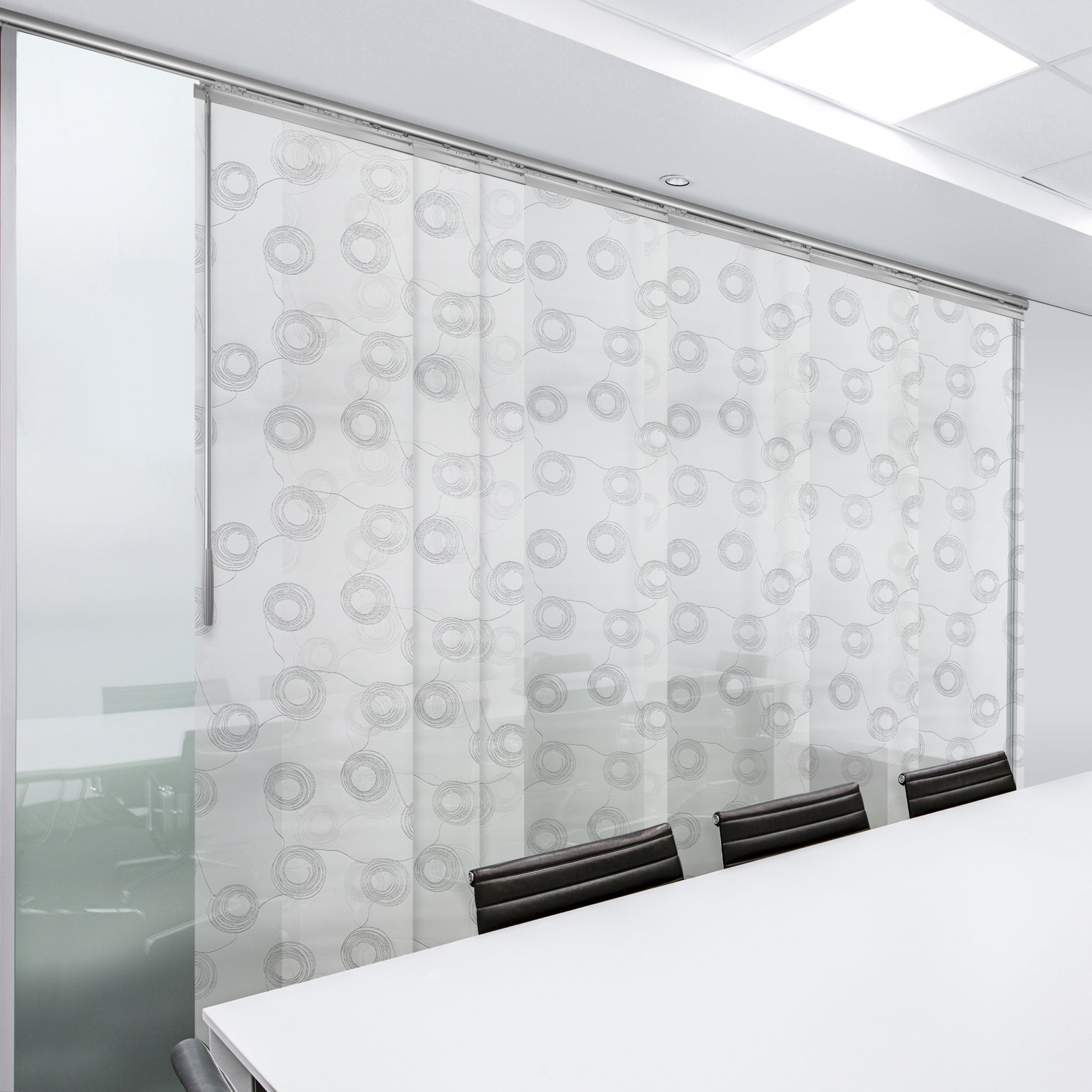 Sion White 7-Panel Single Rail Panel Track 110"-153"W, Panel width 23.5" - 50% LIGHT-FILTERING