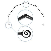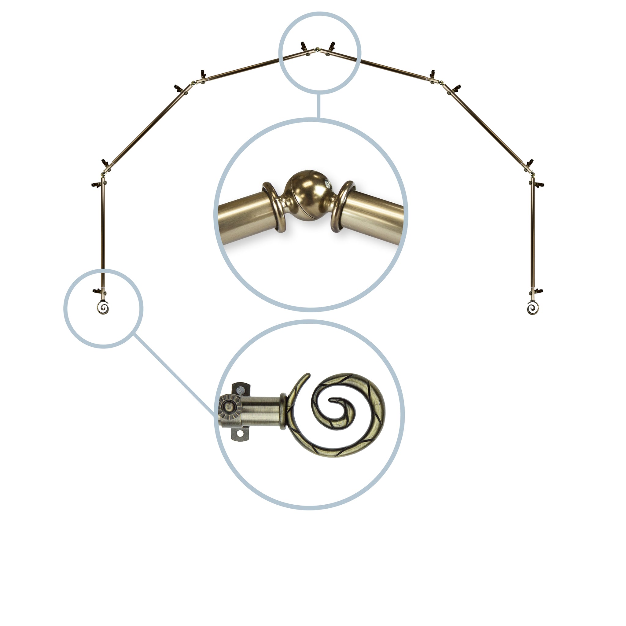 Includes six 13/16" diameter adjustable poles, one pair of decorative finials, 12 single brackets, 5 corner connectors, and mounting hardware
