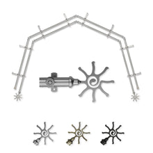 Includes eight 13/16" diameter adjustable poles, one pair of decorative finials, 8 double brackets, 6 corner connectors, and mounting hardware