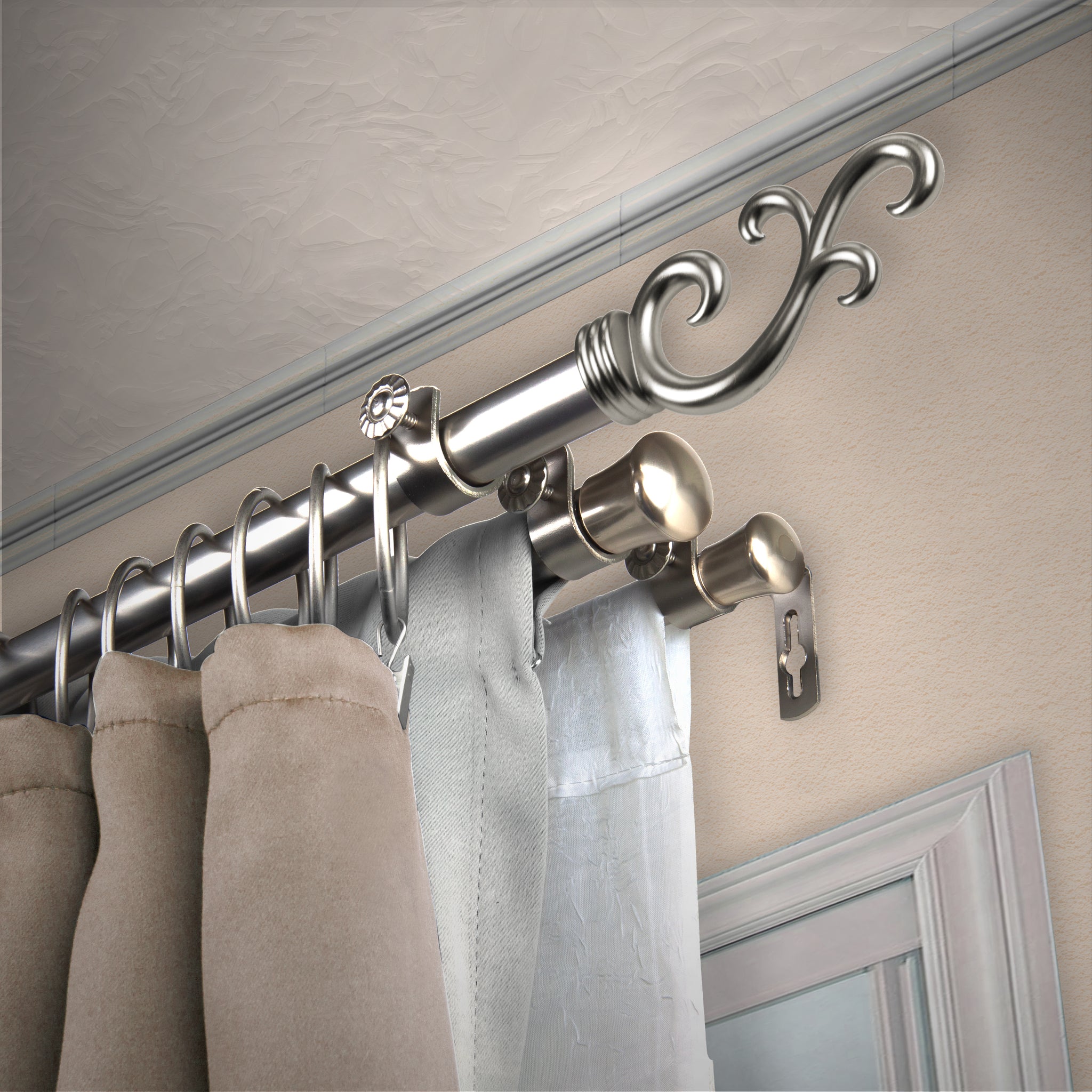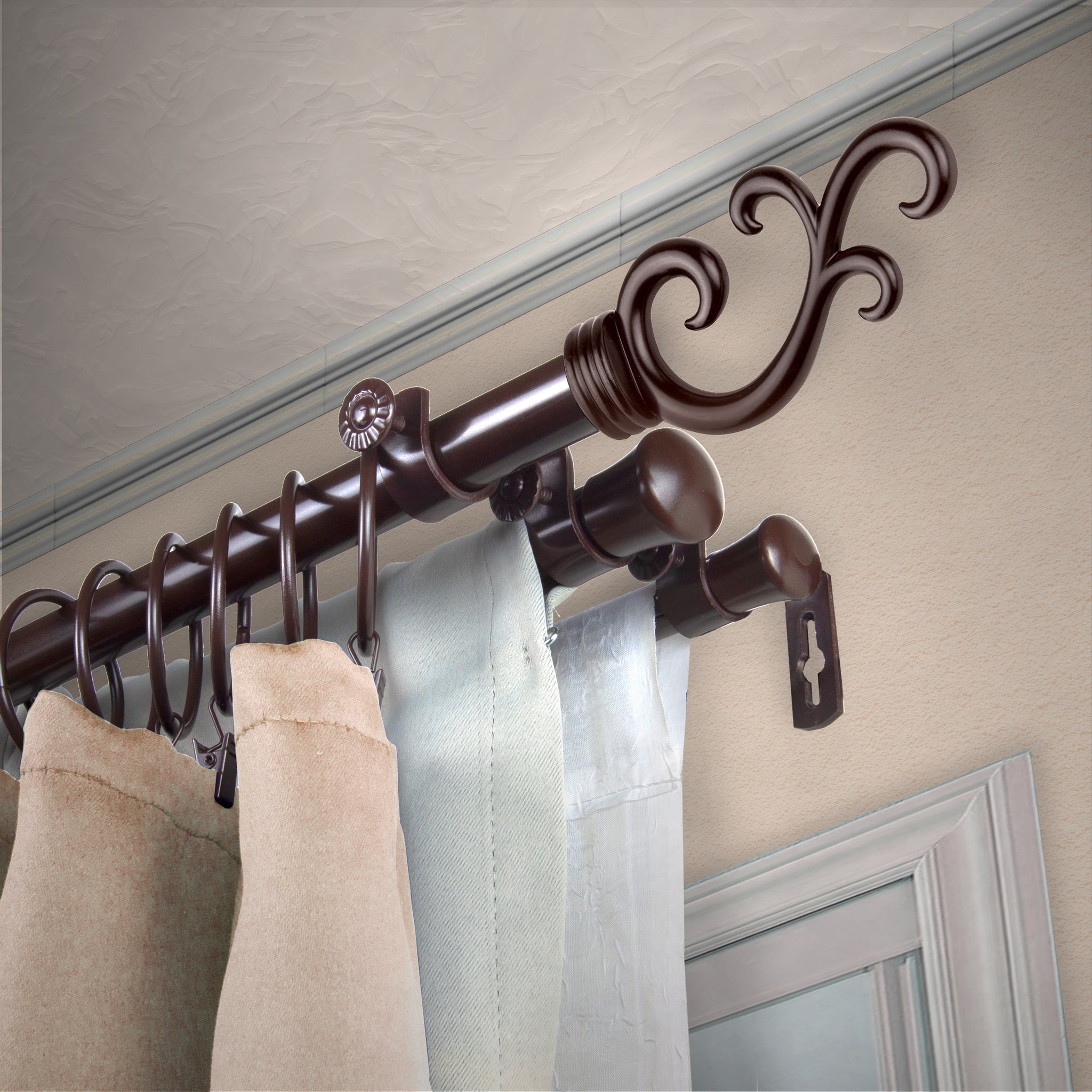 Desyne Store is pleased to introduce our new designer-looking Triple Curtain Rod. This triple curtain rod is designed to support three different layers of drapery of your style.