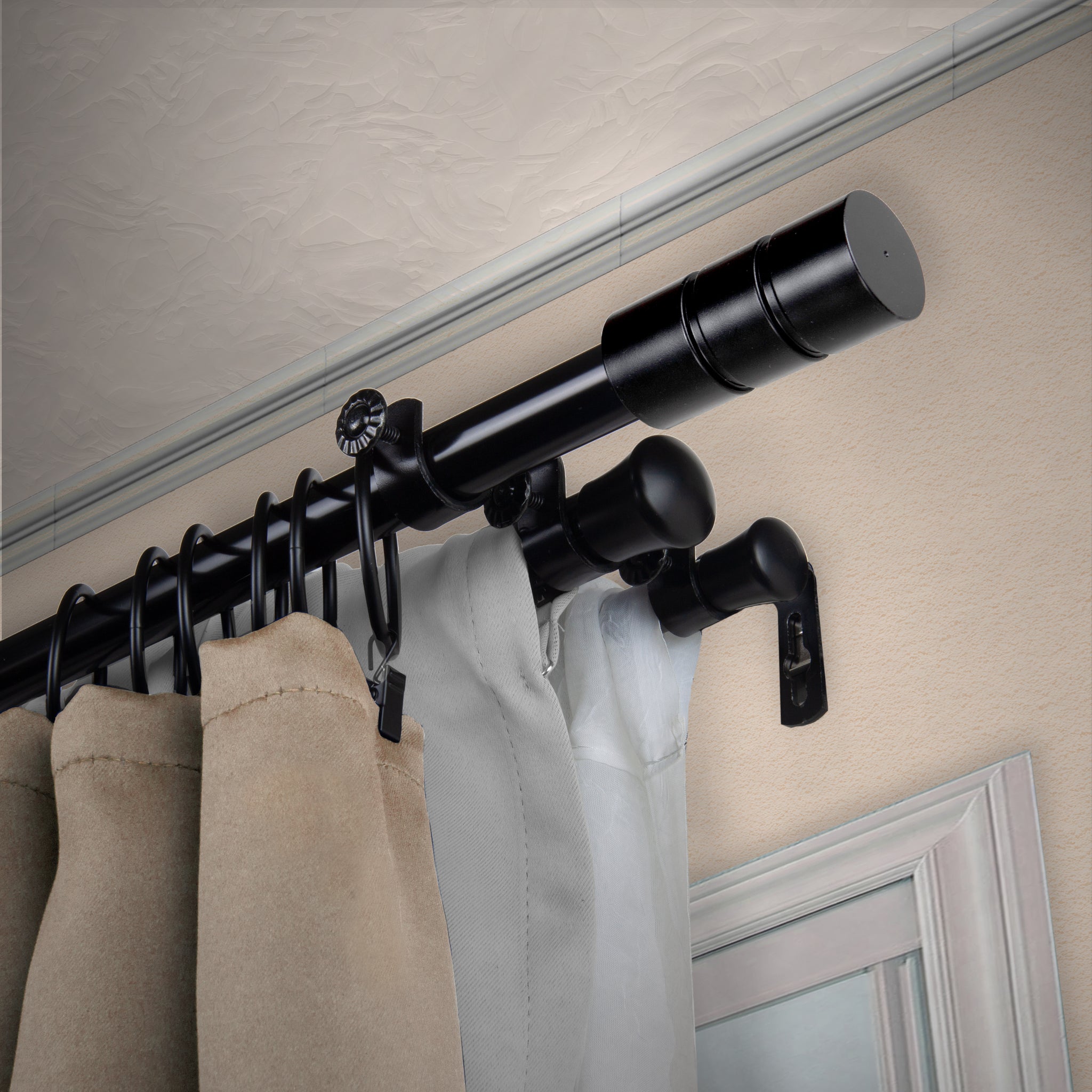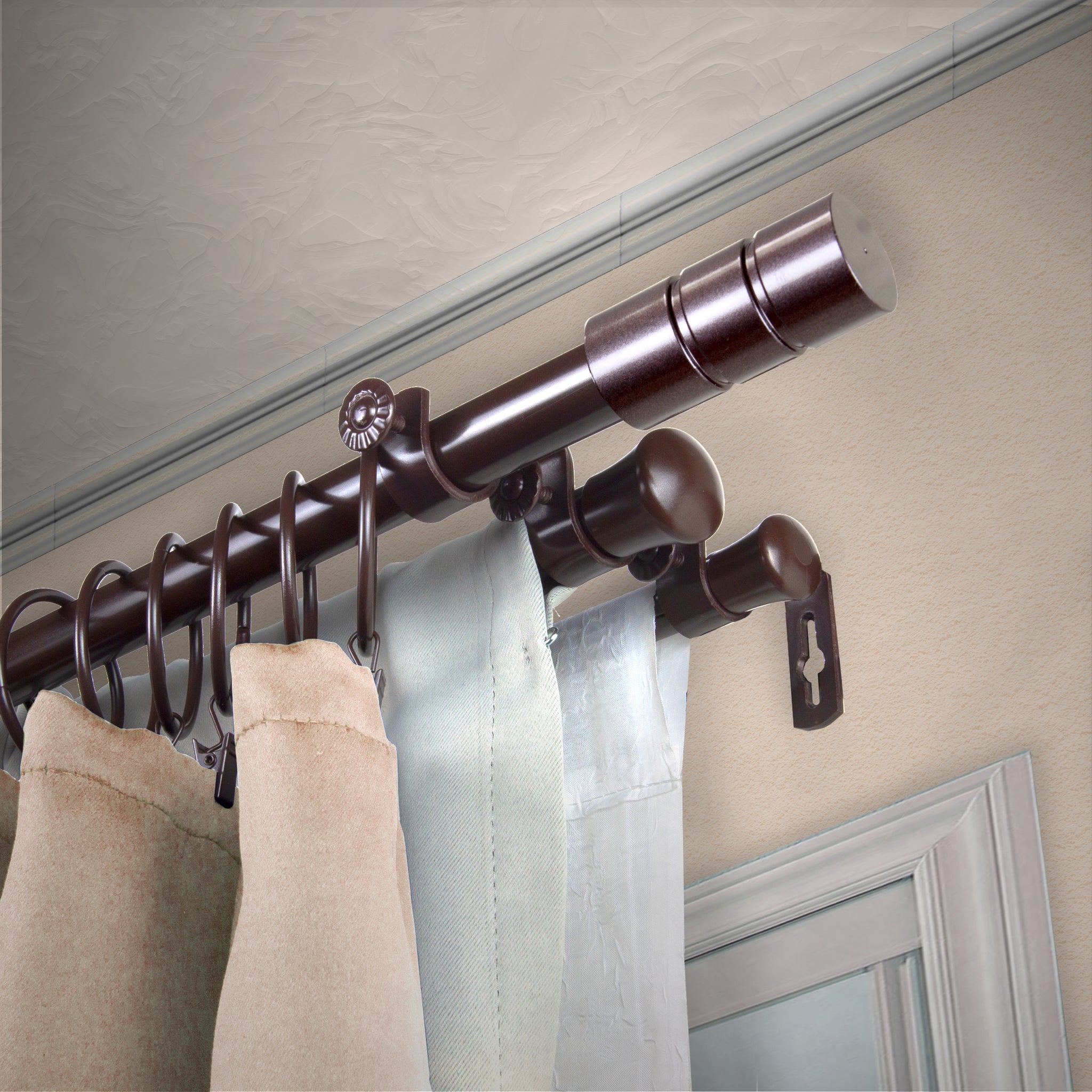 Desyne Store is pleased to introduce our new designer-looking Triple Curtain Rod. This triple curtain rod is designed to support three different layers of drapery of your style.