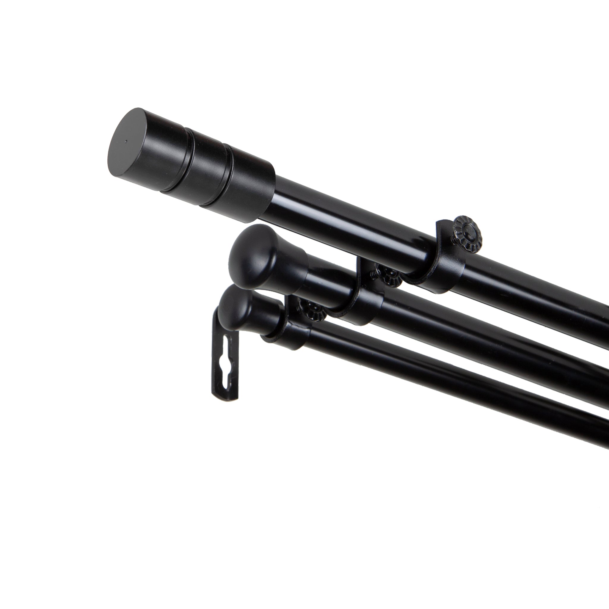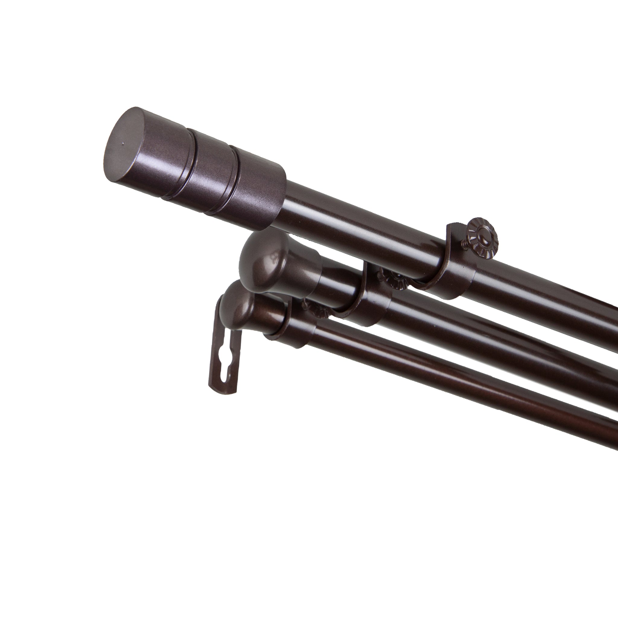 Includes two 13/16" adjustable curtain rods, one 5/8" adjustable back rod, two finials, brackets, and mounting hardware