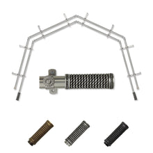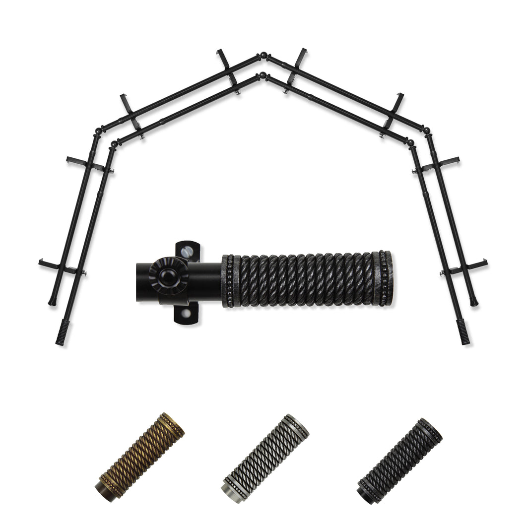 Includes eight 13/16" diameter adjustable poles, one pair of decorative finials, 8 double brackets, 6 corner connectors, and mounting hardware