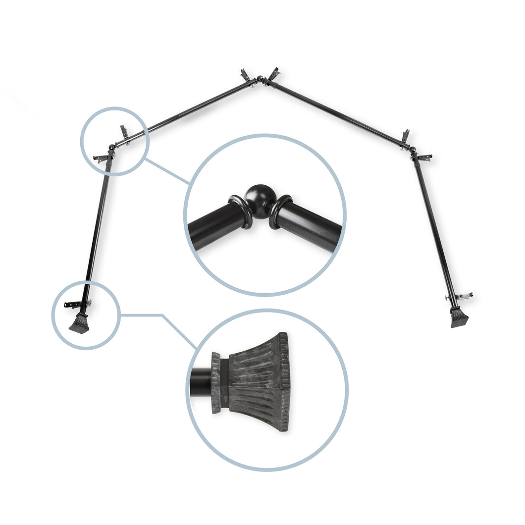 Includes four 13/16" diameter adjustable poles, one pair of decorative finials, 8 single brackets, 3 corner connectors, and mounting hardware