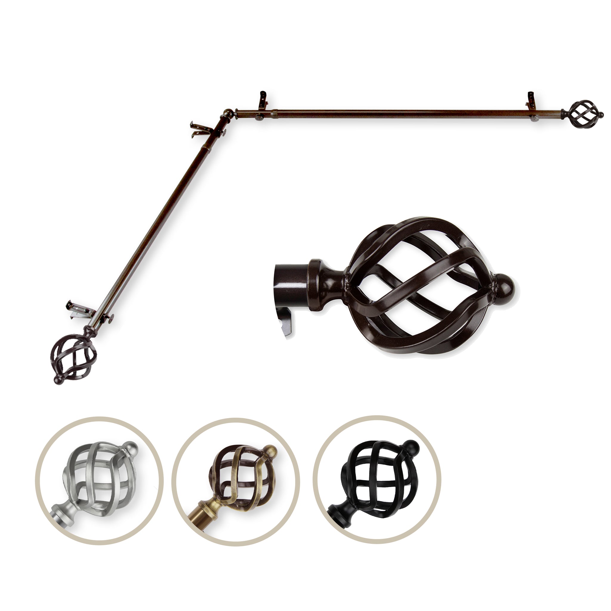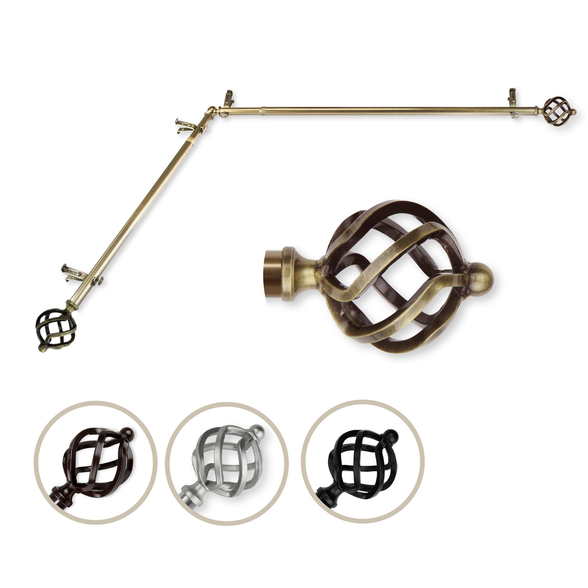 Includes two 13/16" diameter adjustable poles, one pair of decorative finials, one corner connector, brackets and mounting hardware