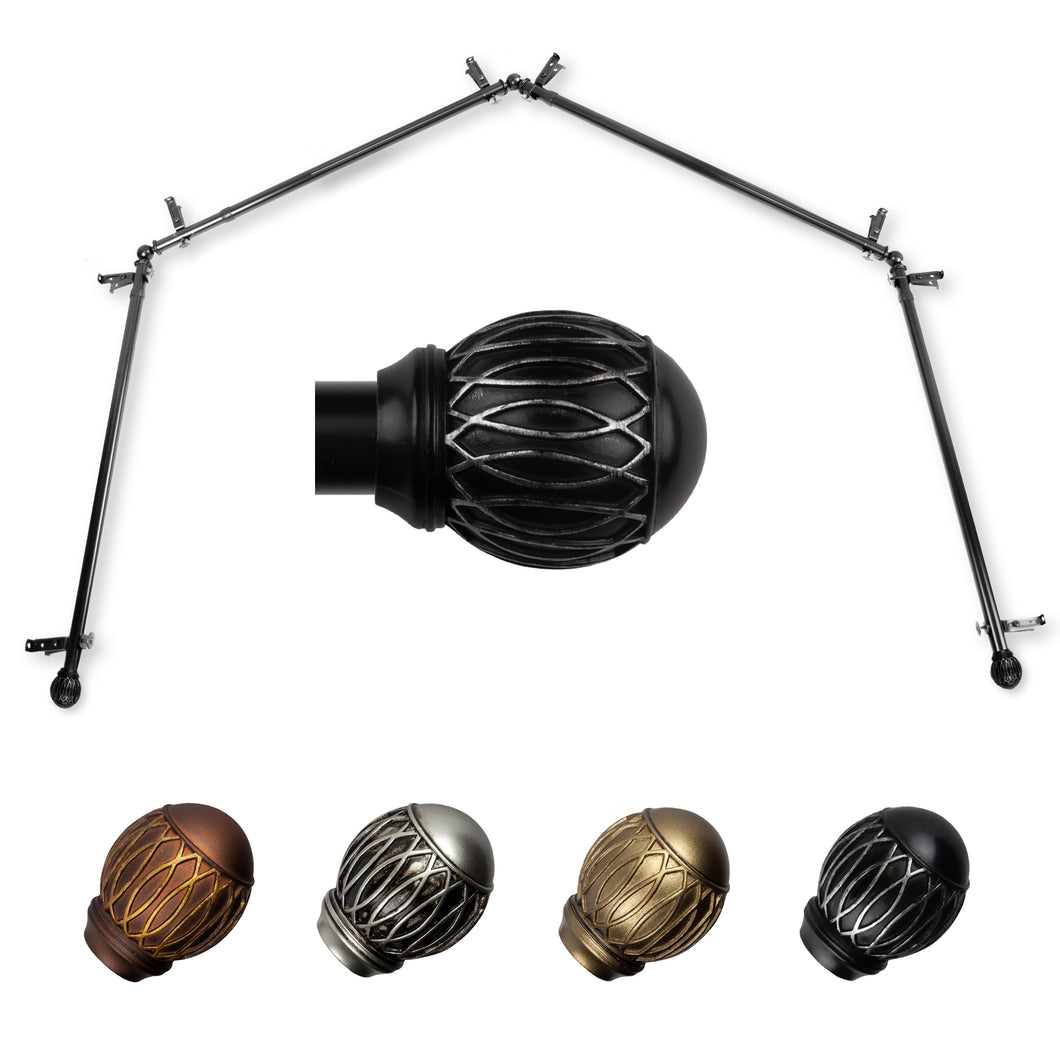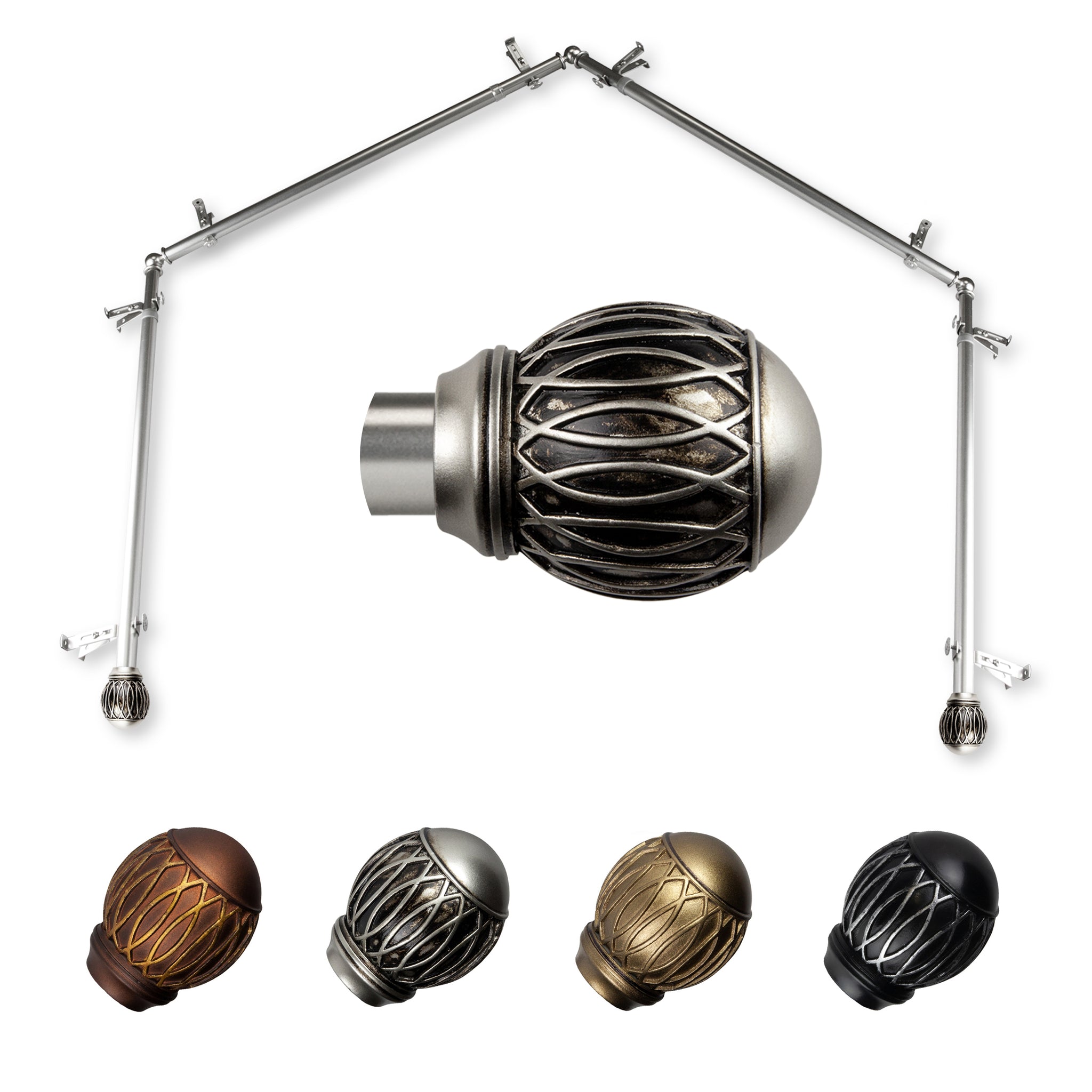 Includes four 13/16" diameter adjustable poles, one pair of decorative finials, 8 single brackets, 3 corner connectors, and mounting hardware