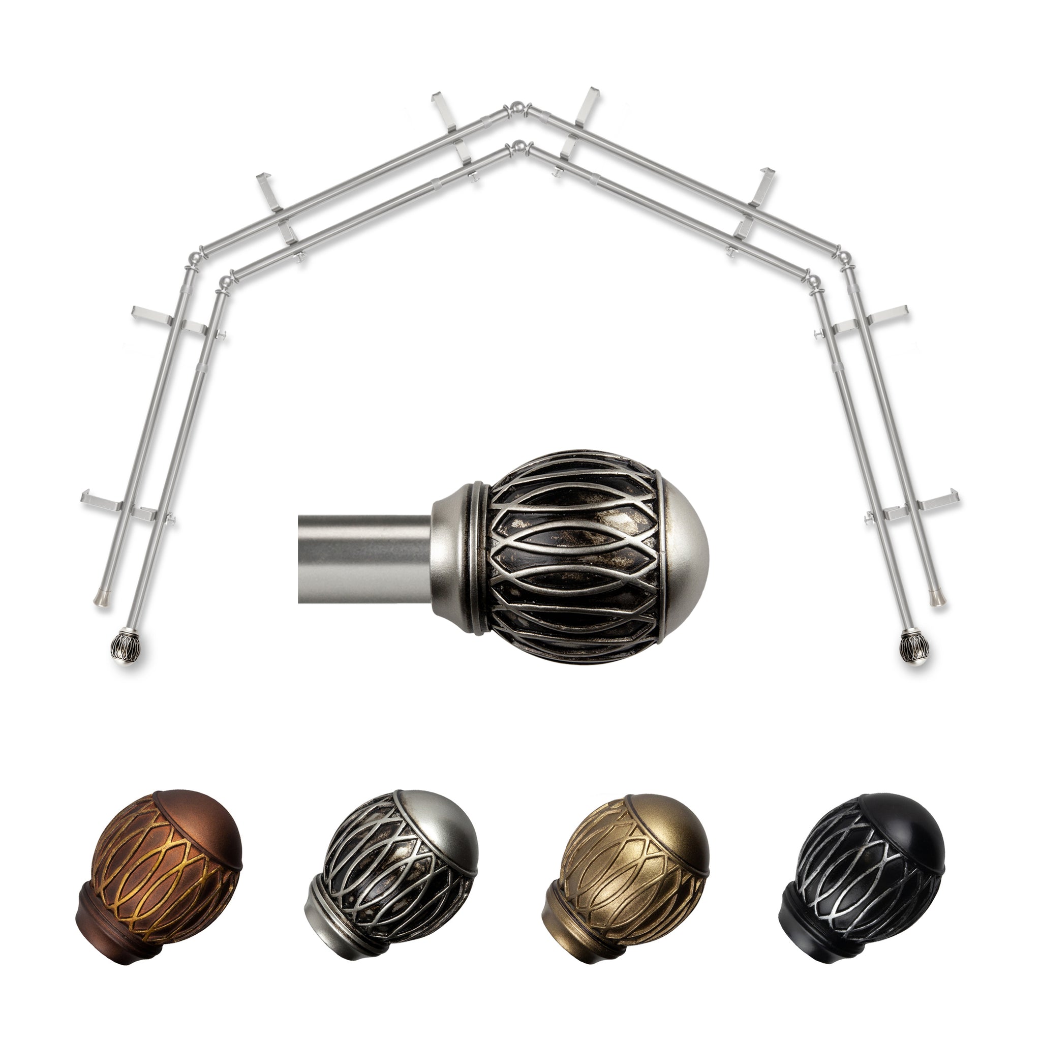 Includes eight 13/16" diameter adjustable poles, one pair of decorative finials, 8 double brackets, 6 corner connectors, and mounting hardware