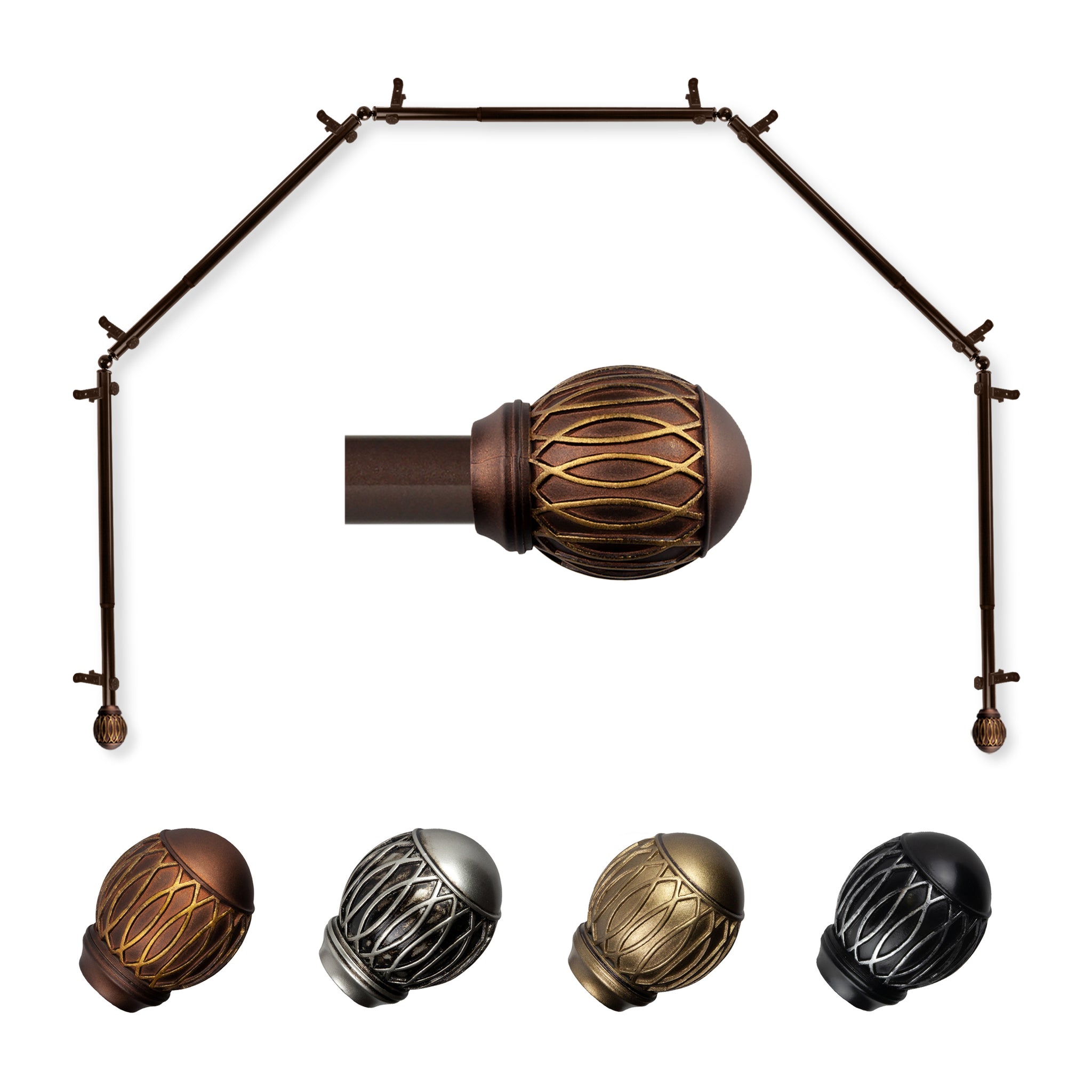 Includes five 13/16" diameter adjustable poles, one pair of decorative finials, 10 single brackets, 4 corner connectors, and mounting hardware