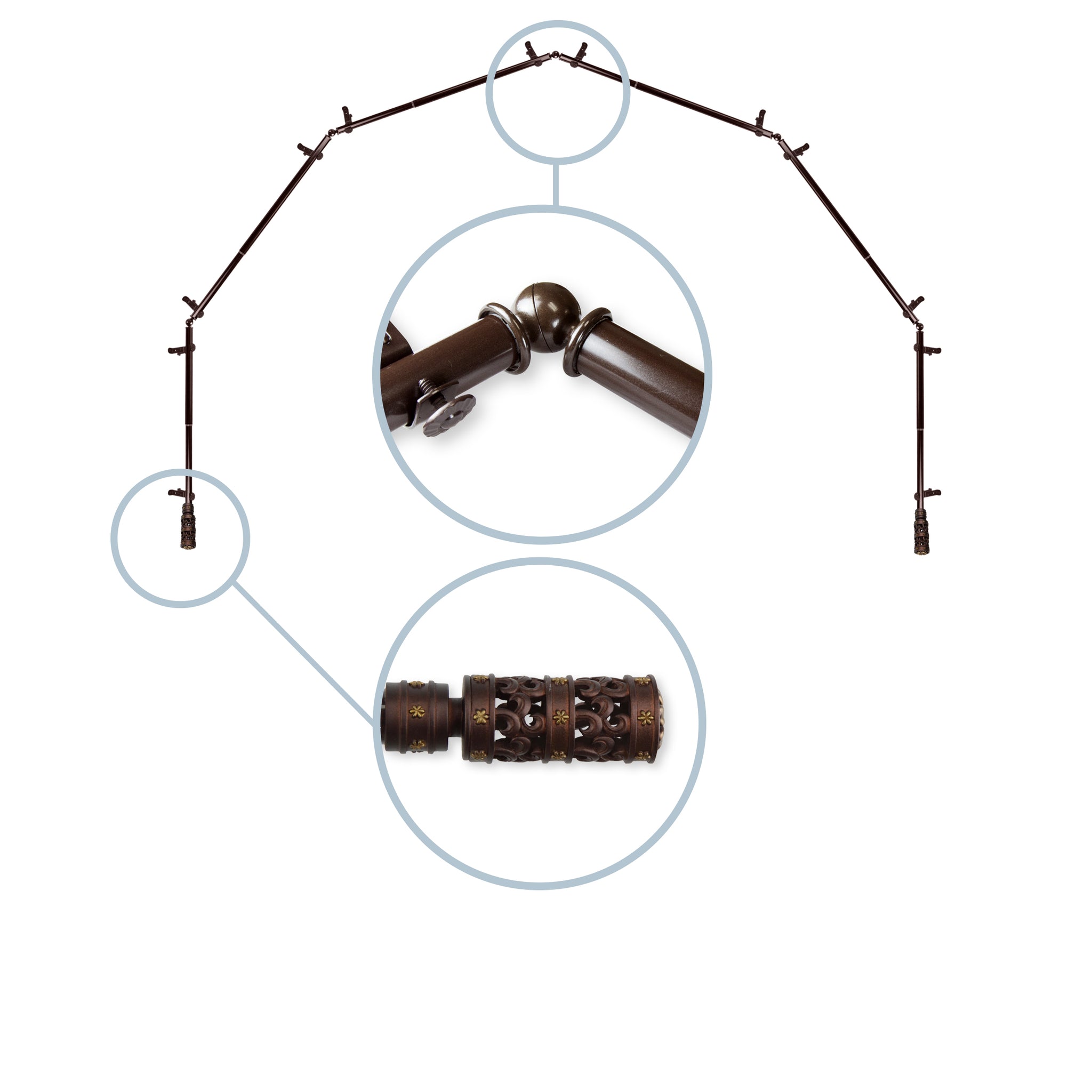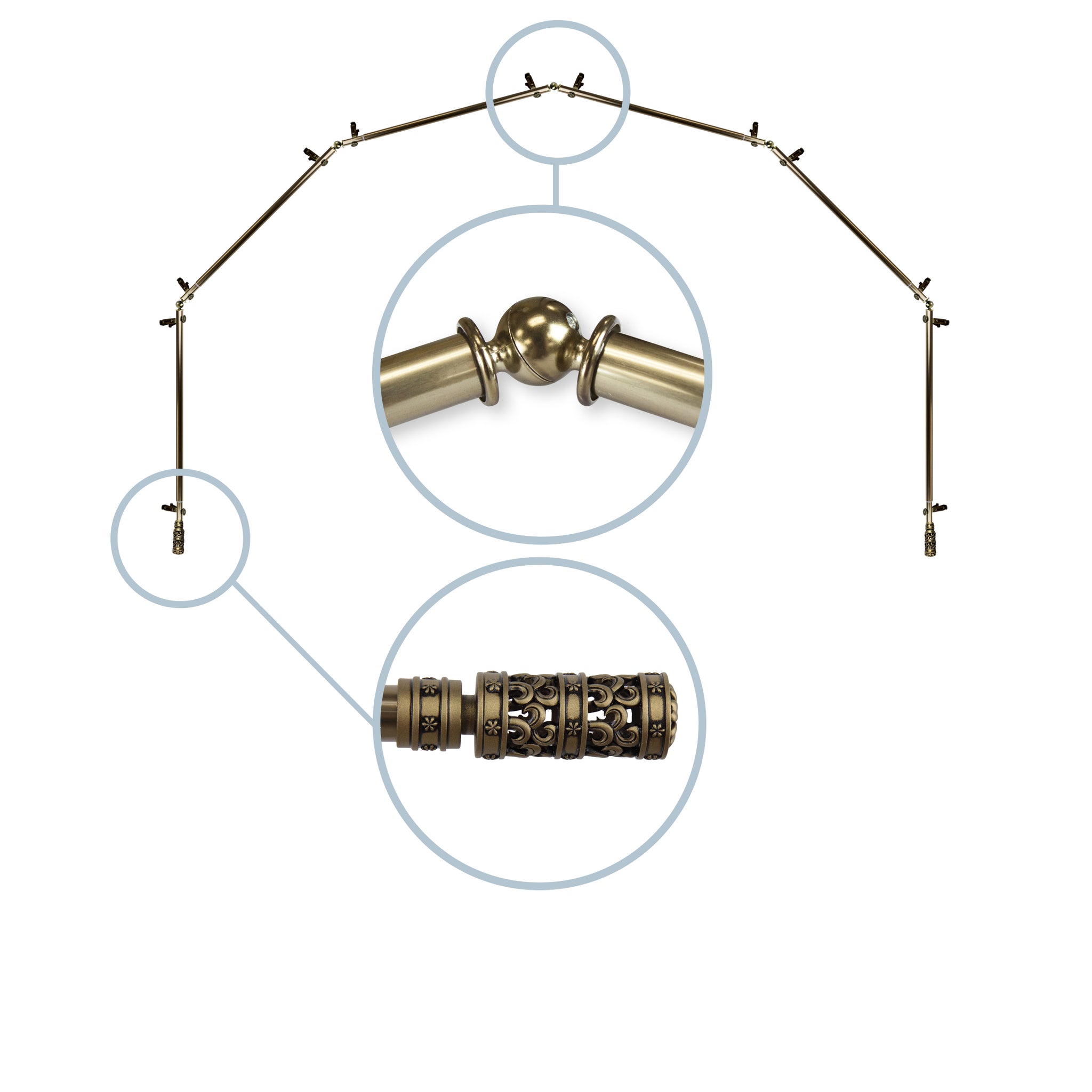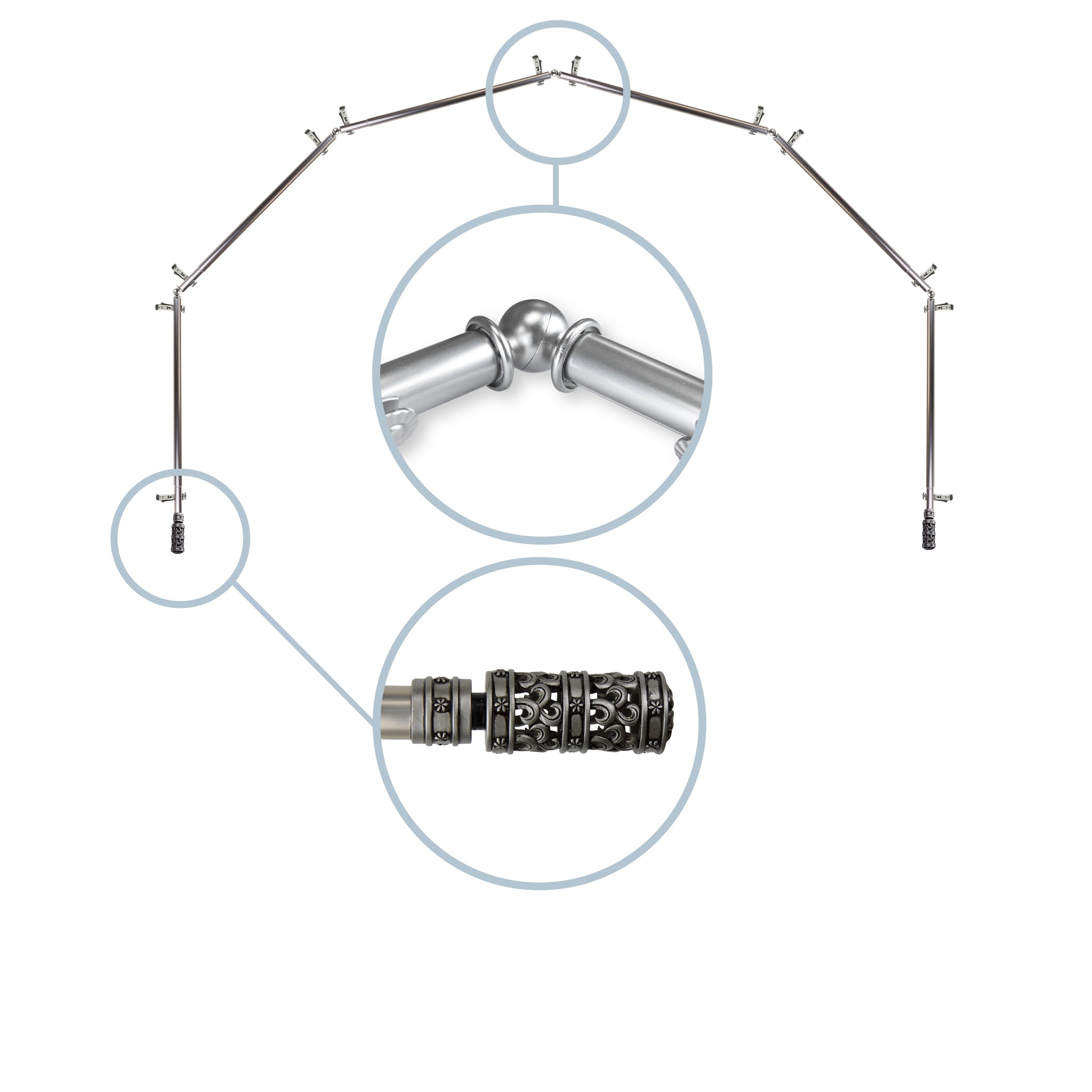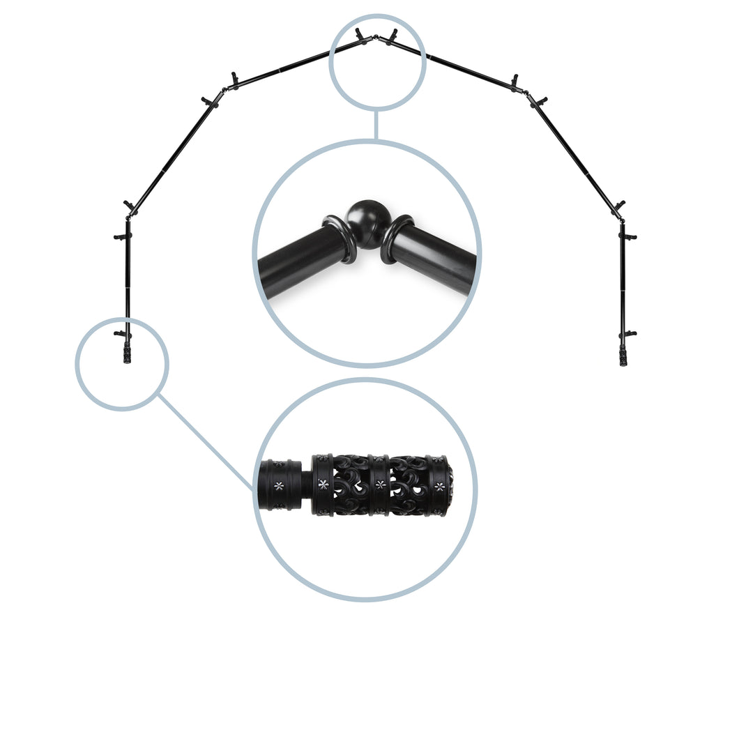Includes six 13/16" diameter adjustable poles, one pair of decorative finials, 12 single brackets, 5 corner connectors, and mounting hardware