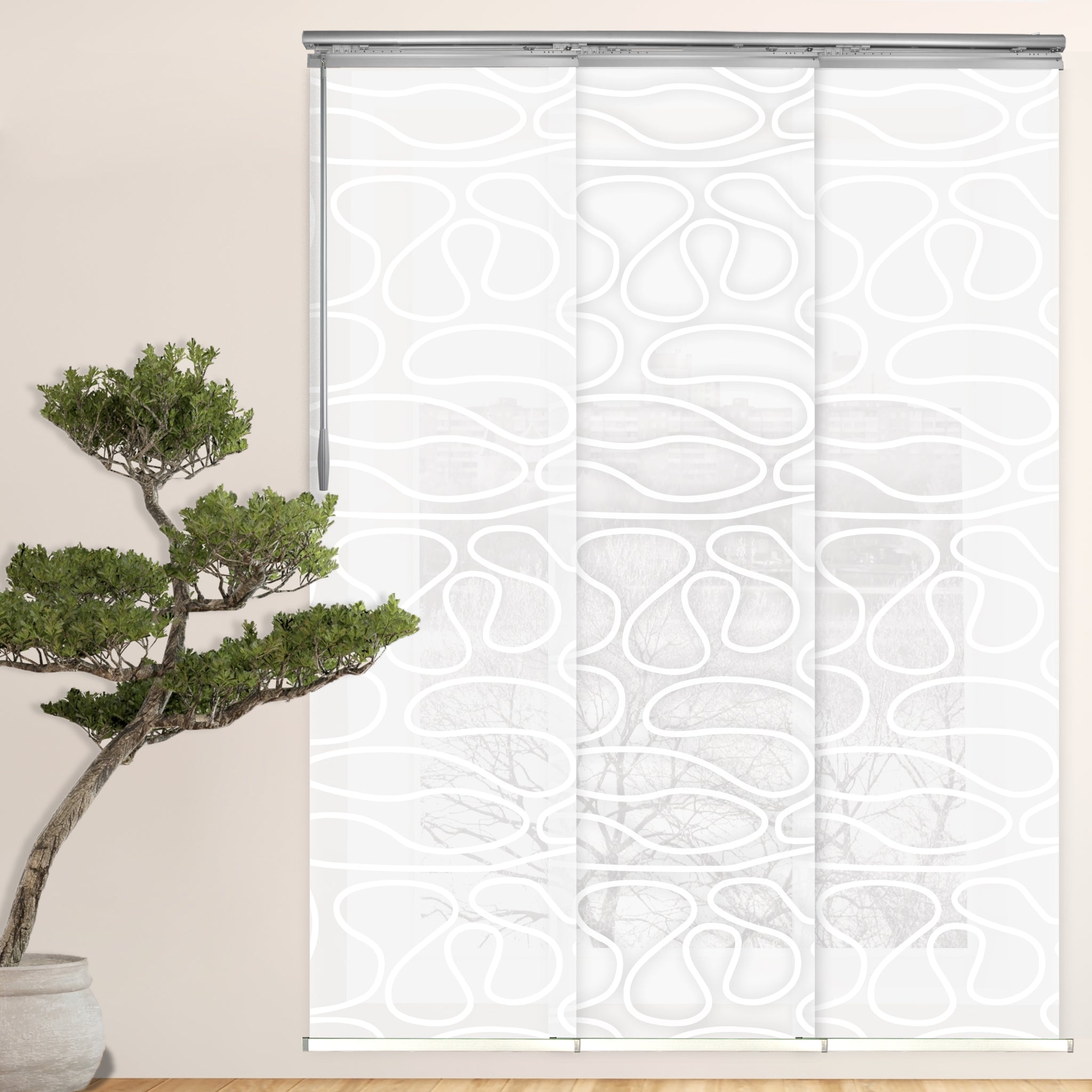 Patented Sliders Design: Durable and smooth operation, the patented sliders are made with aluminum and fitted with bearings that allow the sliders to glide across the rail. The sliders are also stacked closer together than conventional panel tracks, which reduces light bleed coming from the gaps between panels.