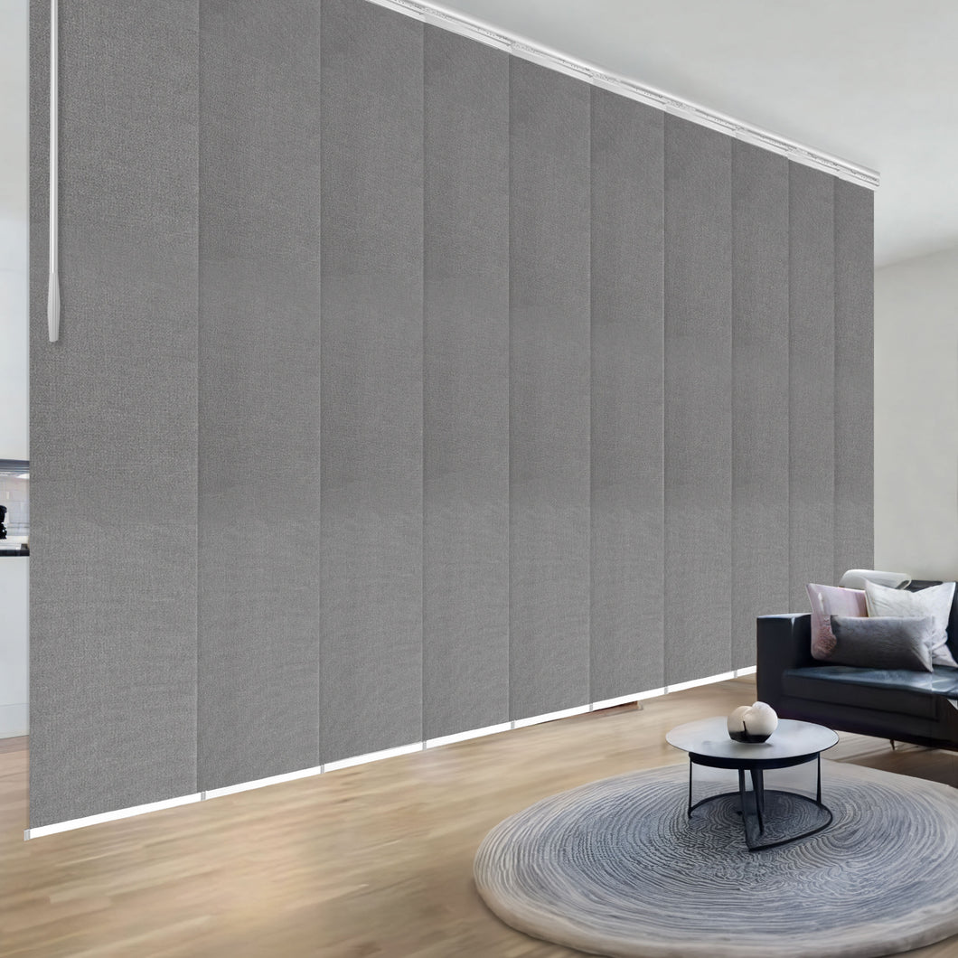 Woven Gray 10-Panel Panel Track 120"-218"W x 91.4"H, Panel width 23.5" - 70% LIGHT-FILTERING